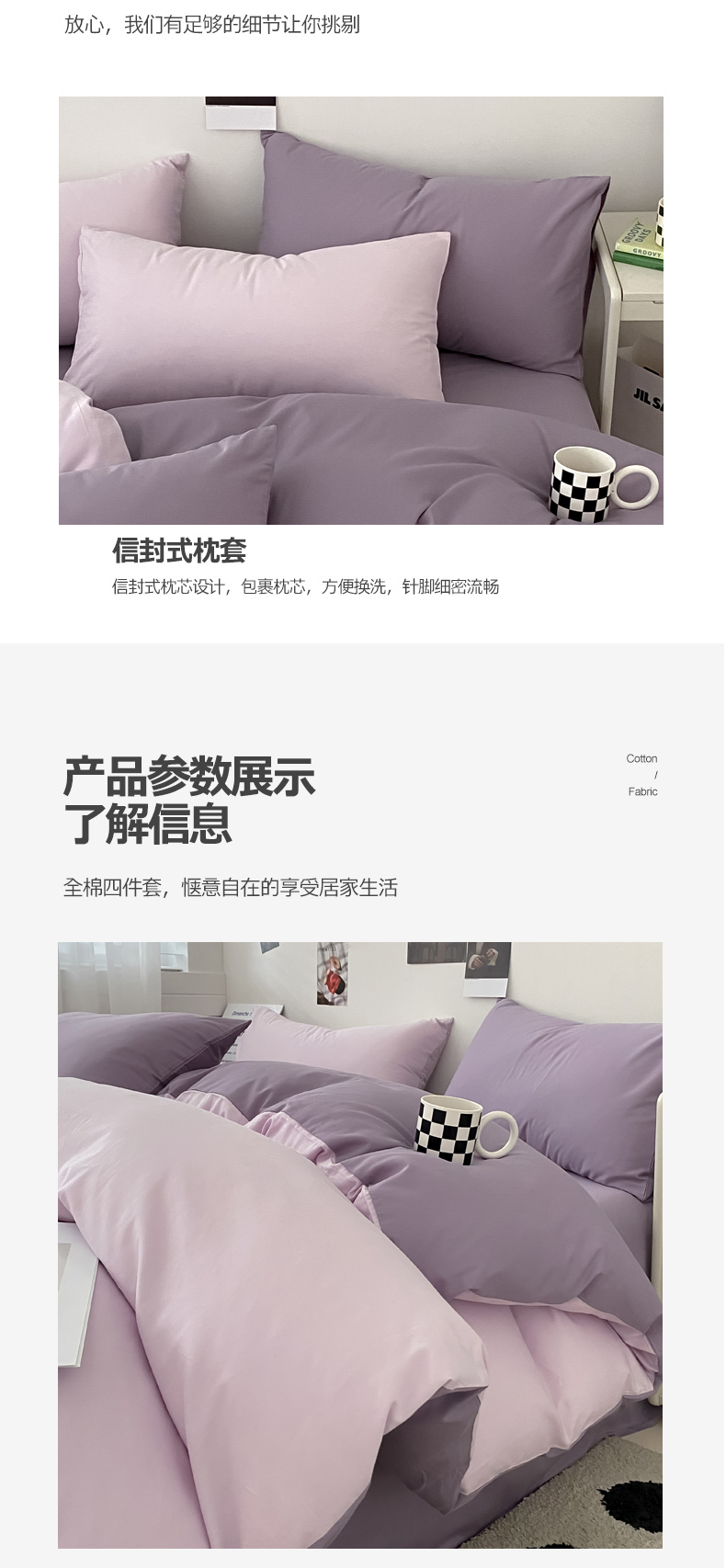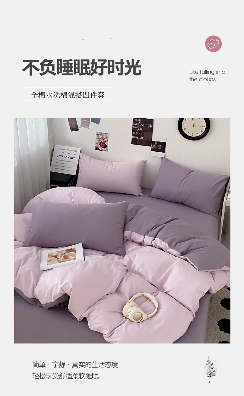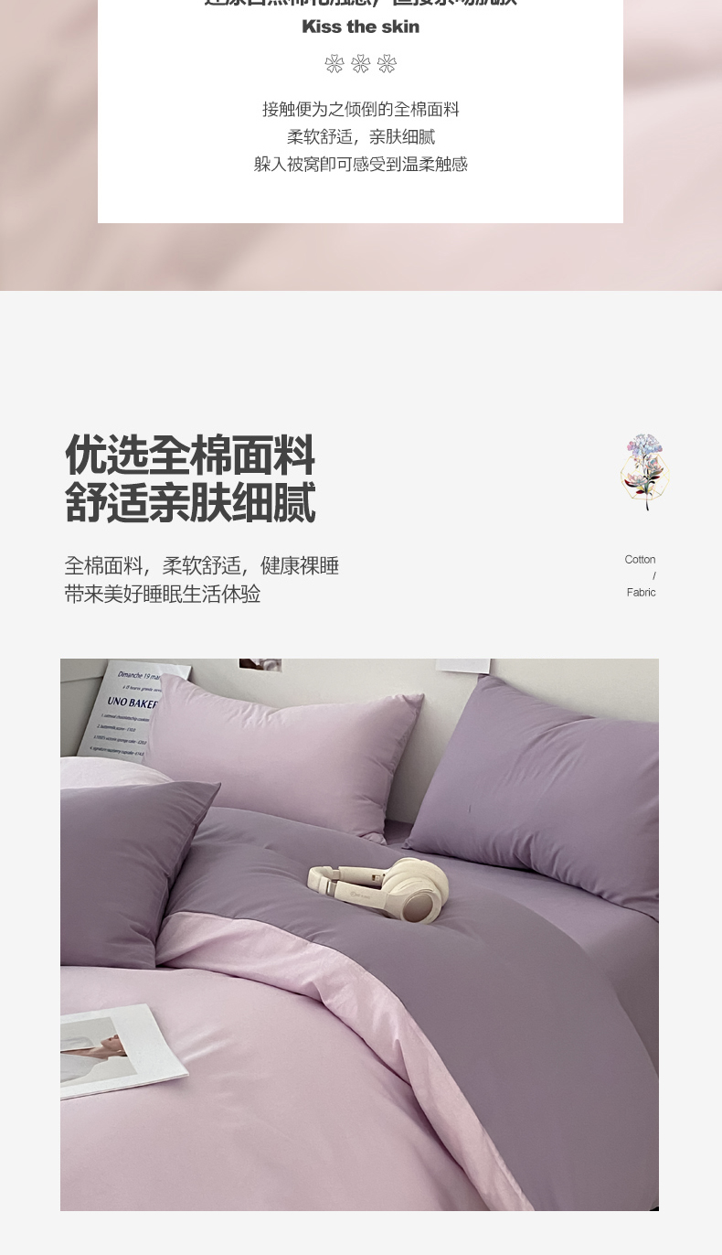 当前位置: 91家纺网 > 商品网购 > 床品套件 > 四件套 > 全棉普通四件套 > 三朵家纺 2024新款春夏13372全棉精梳棉混搭四件套 香芋紫