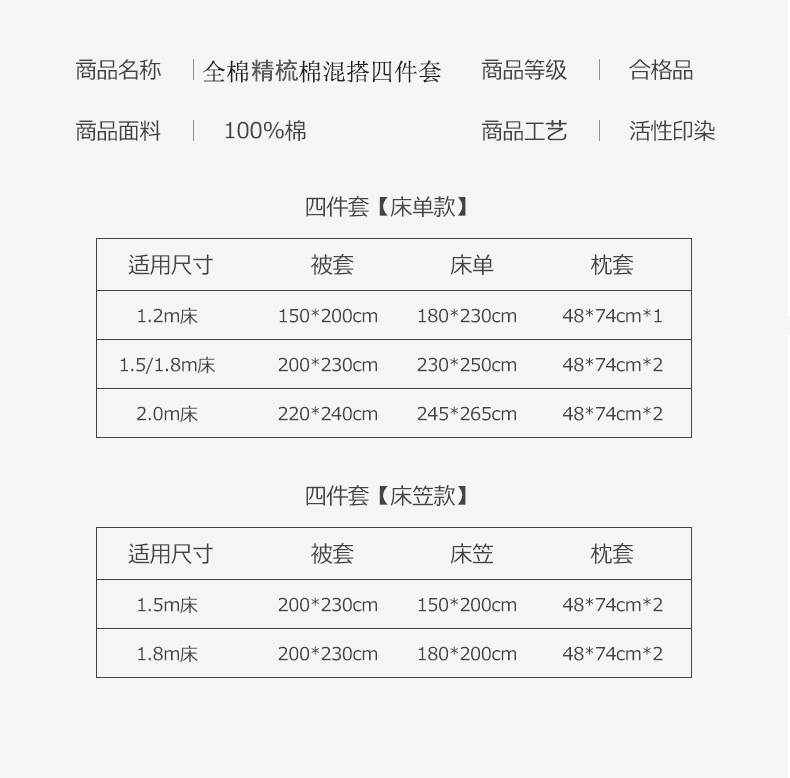 1.5m床笠款四件套 | ¥120.00 |