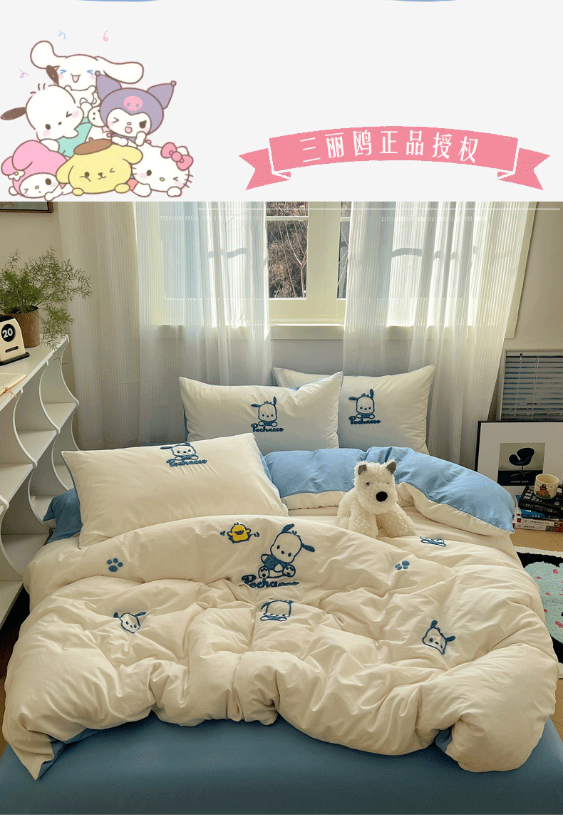 (总)三朵家纺 2024新款全消光三丽鸥印花牛奶绒系列四件套,爱心凯蒂,街舞库洛米,凯蒂公主,乐园KT,漫画帕恰,美好帕恰,美乐蒂格格,淘气帕恰,甜蜜公主KT,童心帕恰,艺术家库洛米,运动帕恰,字母帕恰