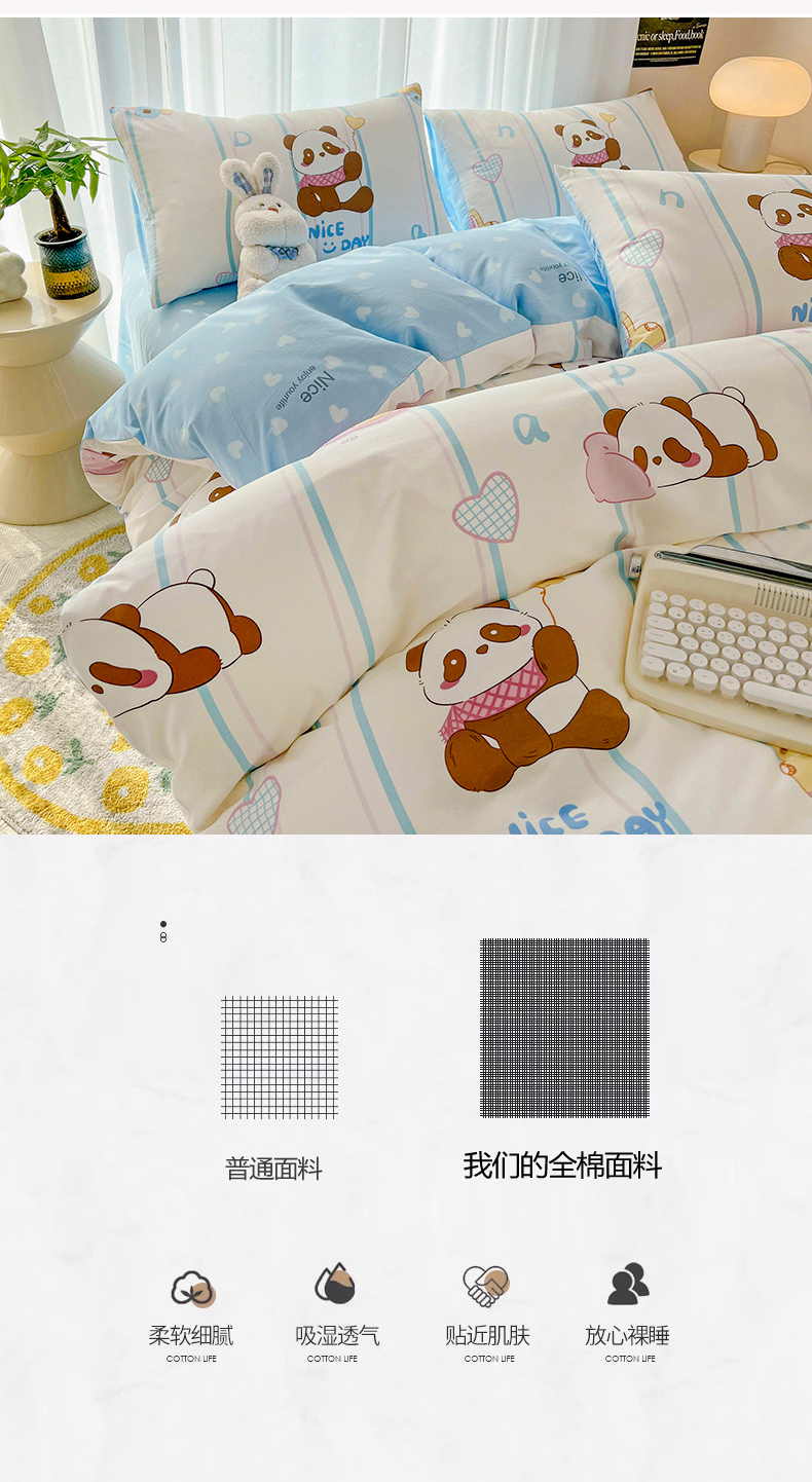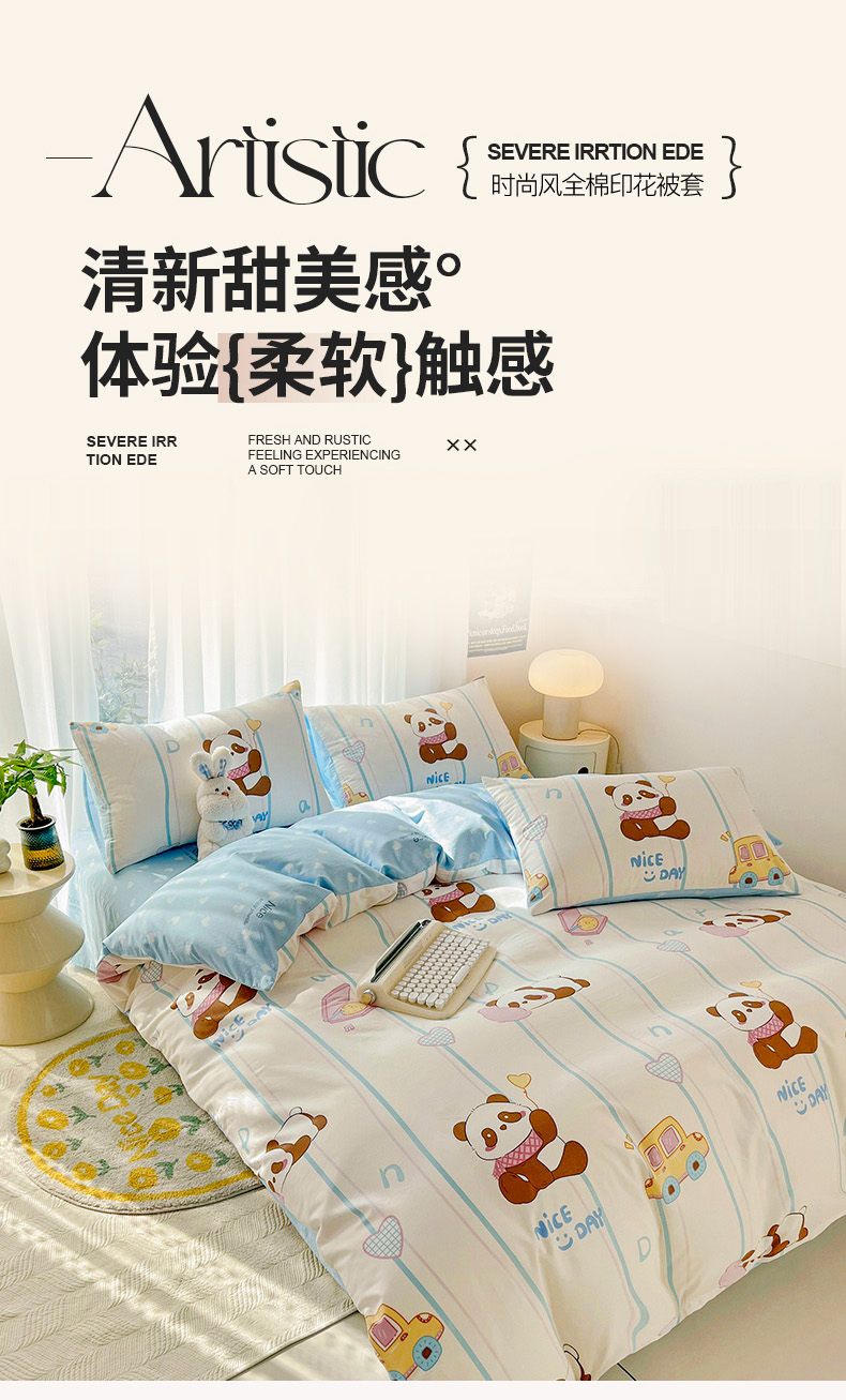 倾慕家纺 2024新款时尚风全棉13070亲肤印花系列单被套 蛋仔萌猫
