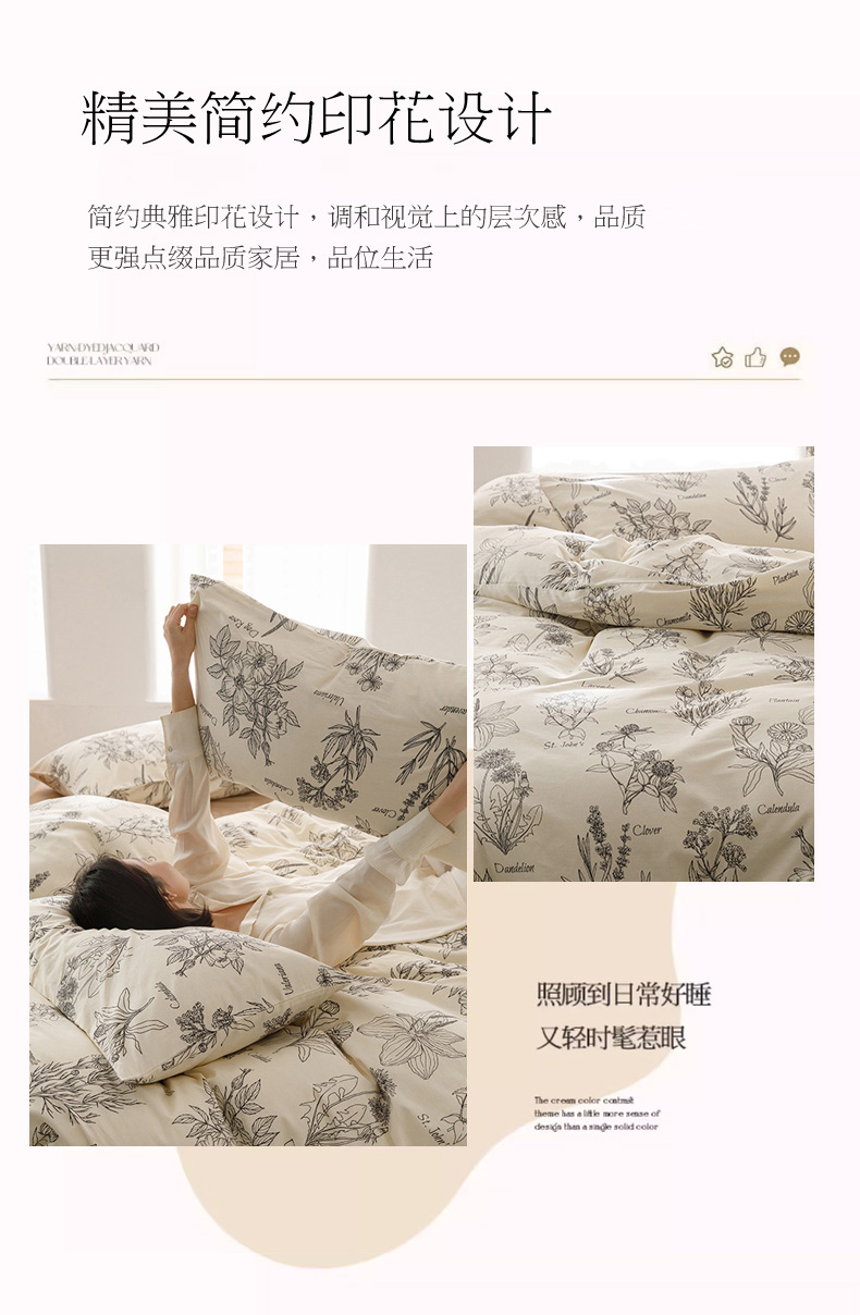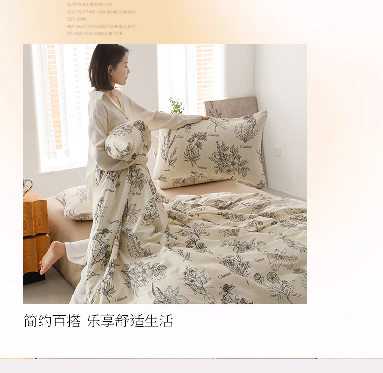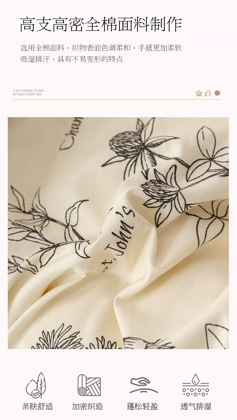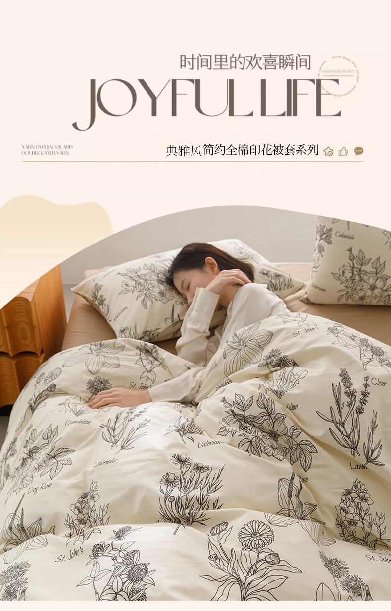 商品名称:倾慕家纺 2024新款典雅风全棉13370简约印花系列单被套 暮秋