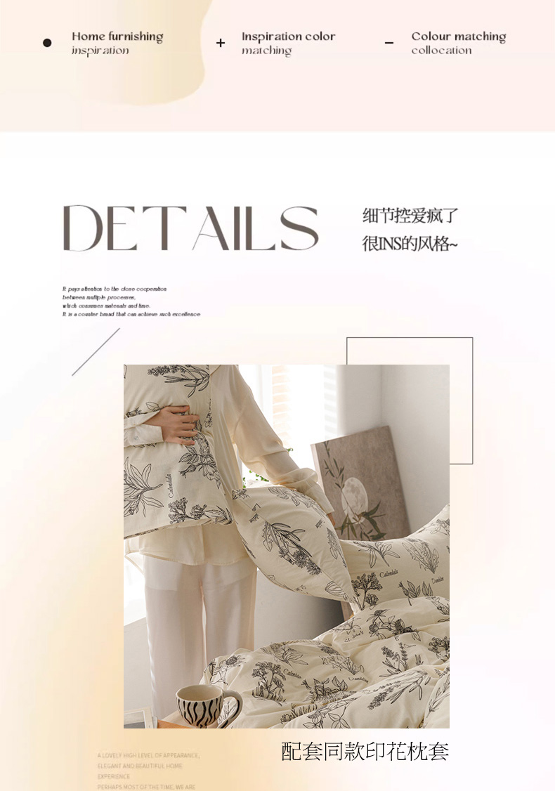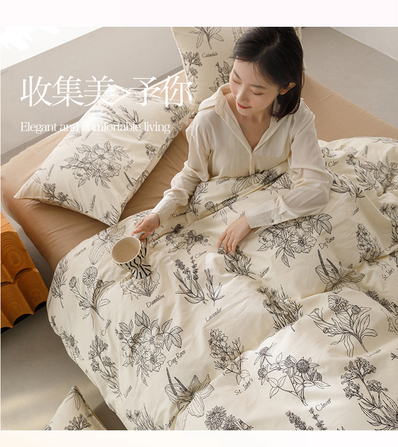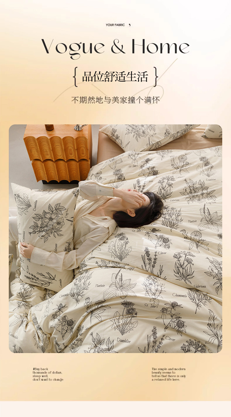 商品名称:倾慕家纺 2024新款典雅风全棉13370简约印花系列单被套 暮秋