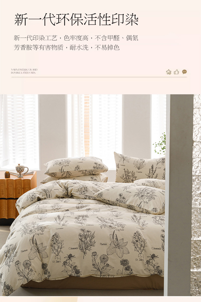 (总)倾慕 2025新款数码纯棉加厚磨毛产品系列四件套,蝶舞粉,蕾丝花粉,丽思黄,丽思兰,绿茵,梦幻屋紫,清风来咖,晚笙粉,云嘉粉,芷兰粉