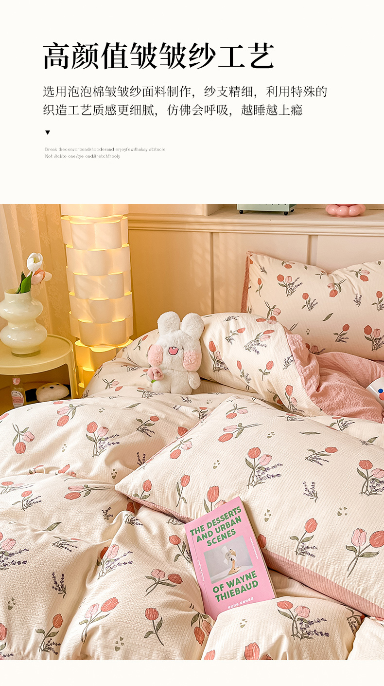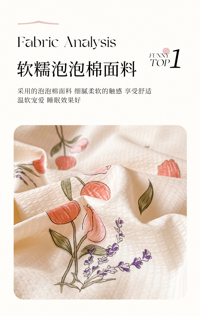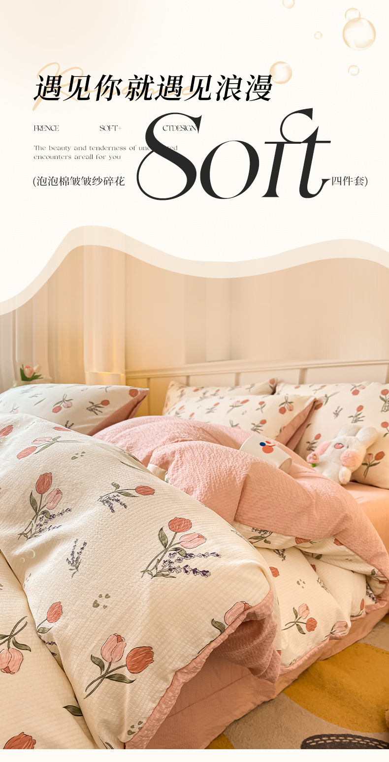 当前位置: 91家纺网 > 商品网购 > 床品套件 > 四件套 > 全棉普通四件套 > 梦之岛 2024新款A类母婴级泡泡棉皱皱纱碎花四件套 莉娅