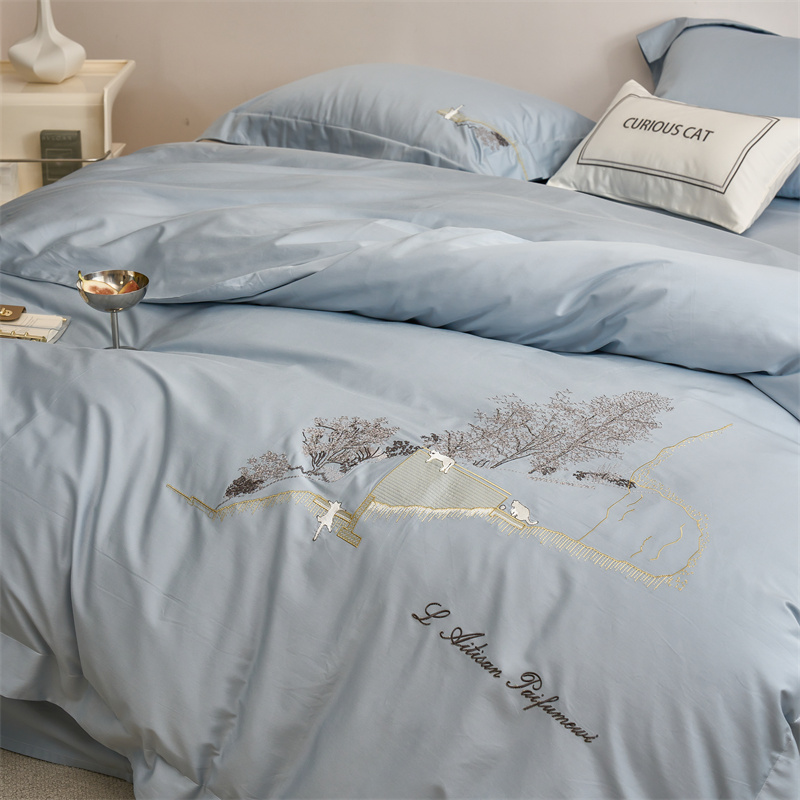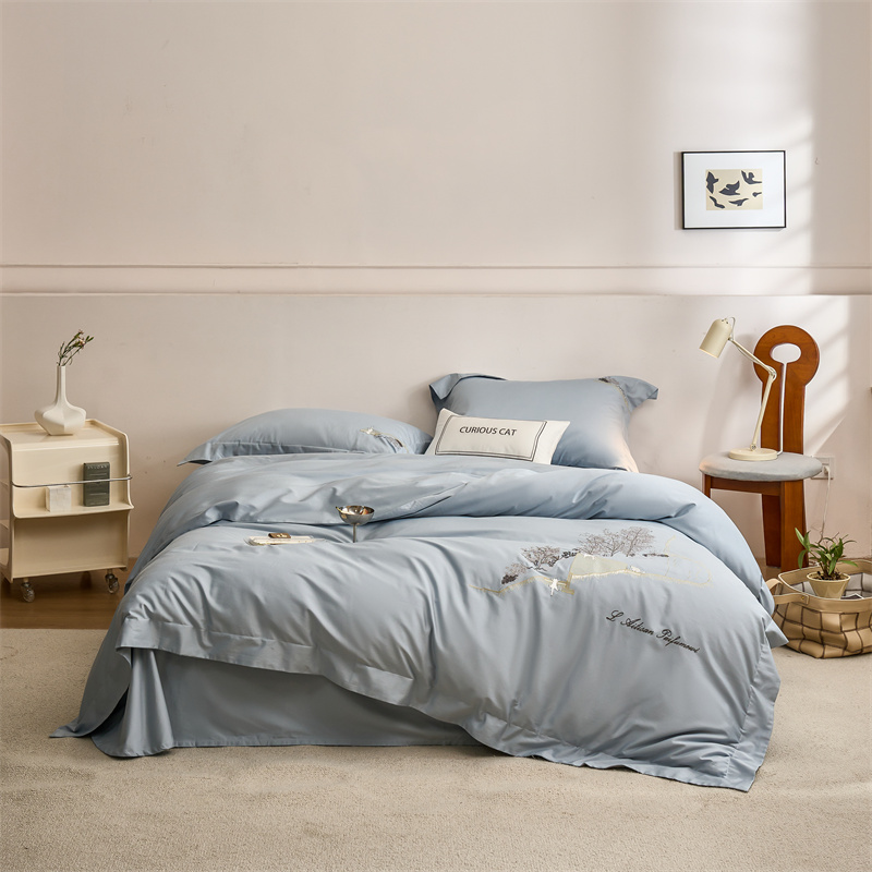 (总)云胡 2025新款A类水洗工艺纯棉四件套-若曦-浅云蓝,若曦-浅云蓝