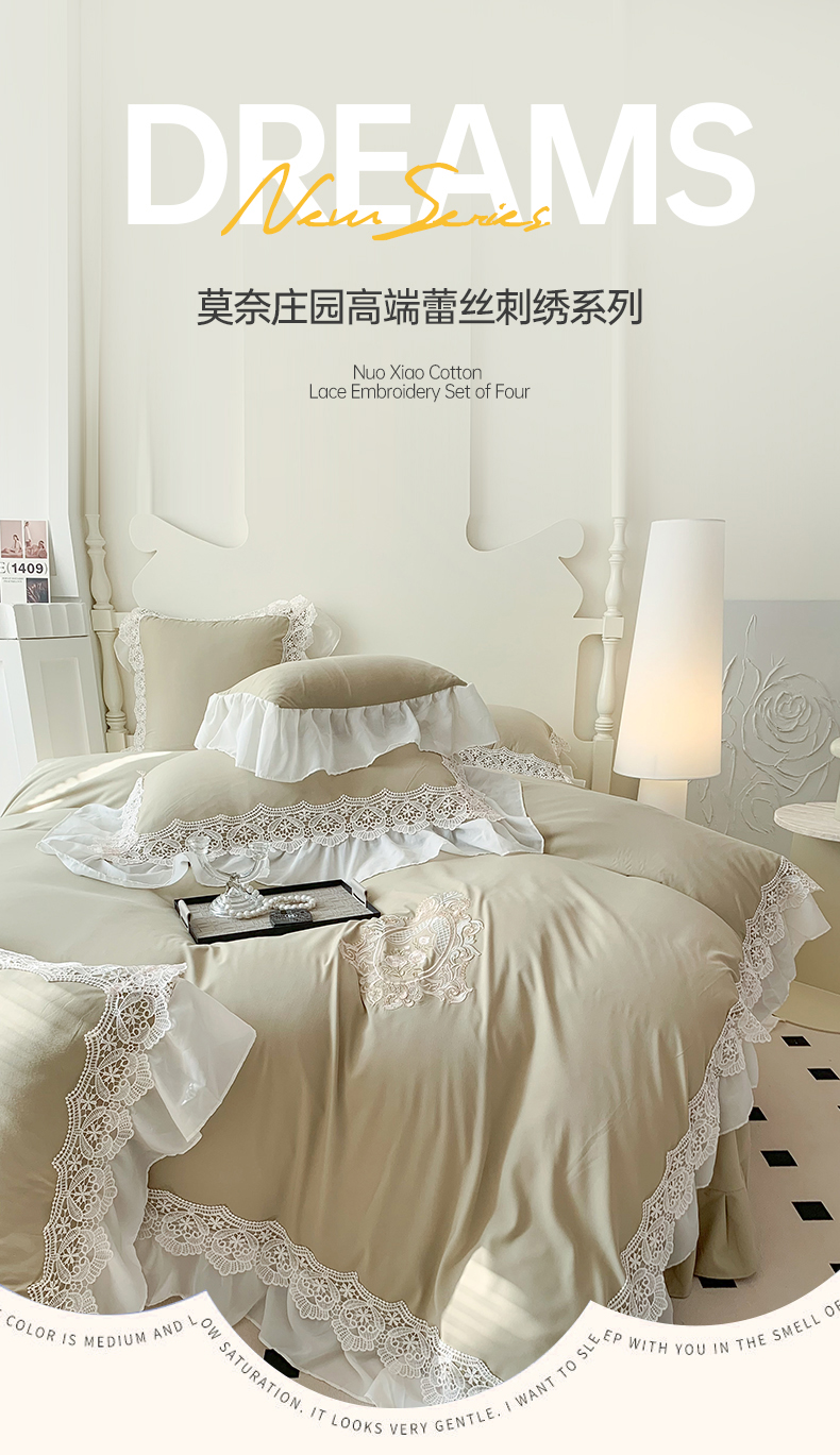 商品名称:(总)吾欢心 2025新款莫奈庄园高端蕾丝刺绣四件套