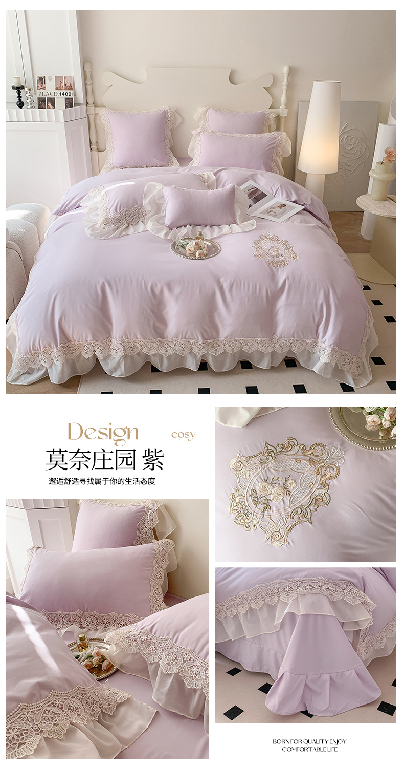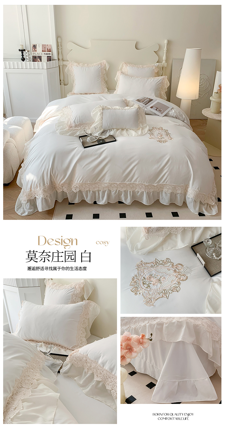 (总)吾欢心 2025新款莫奈庄园高端蕾丝刺绣四件套