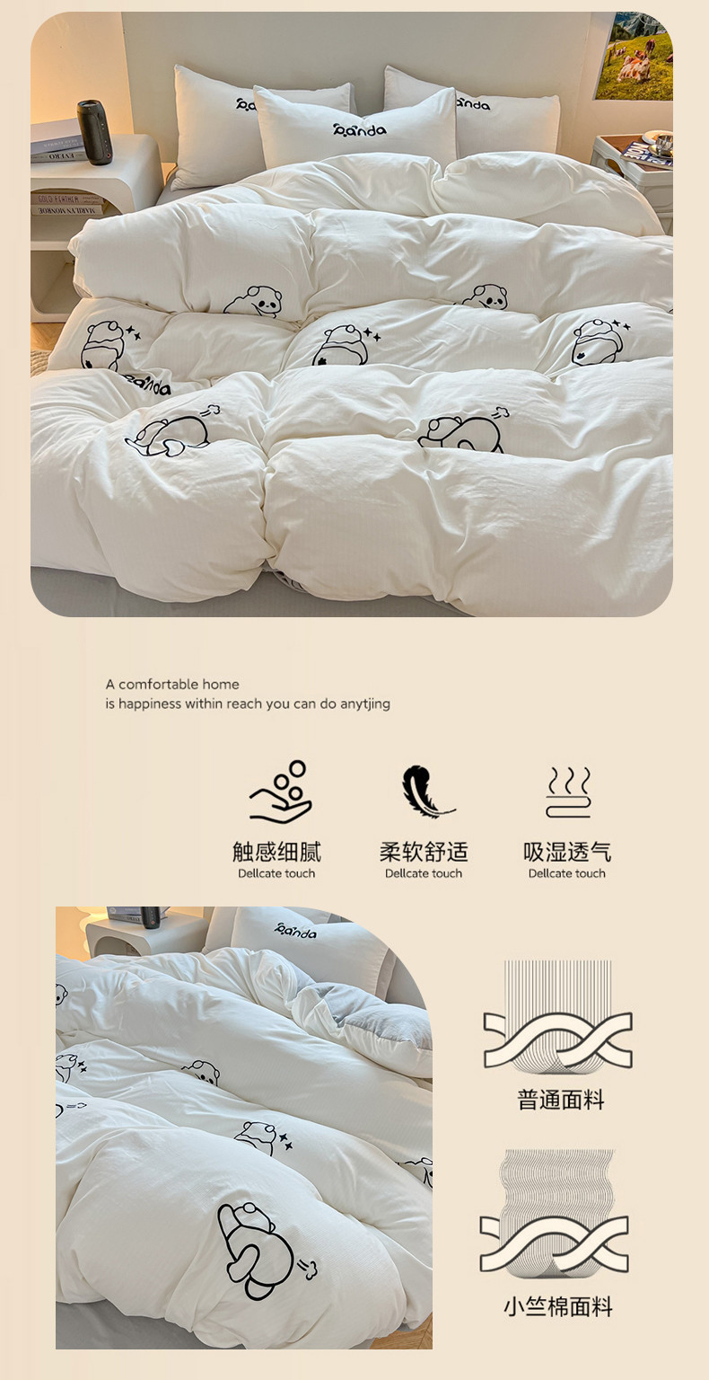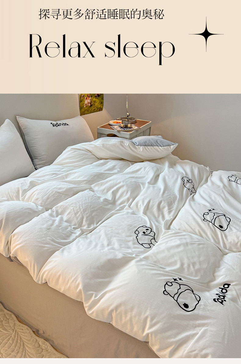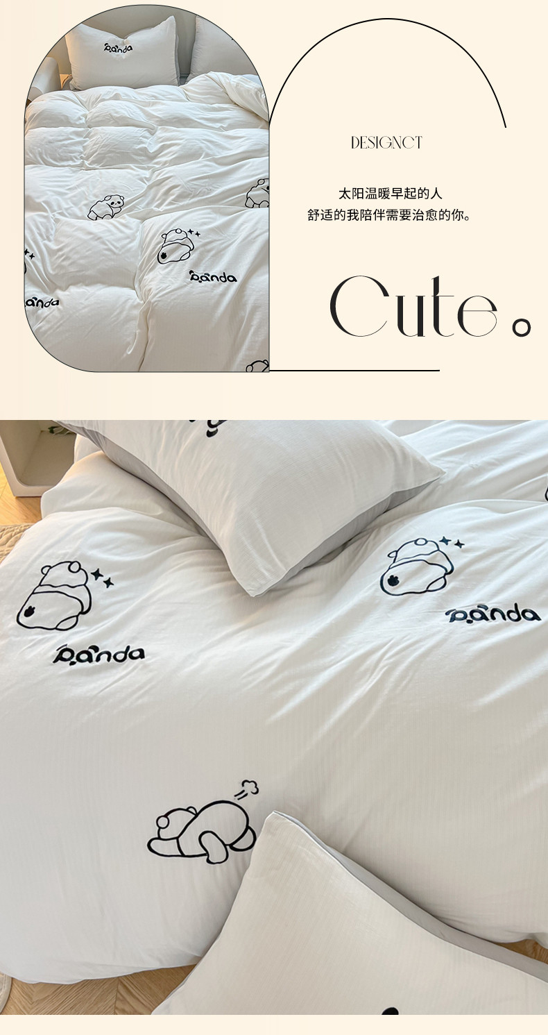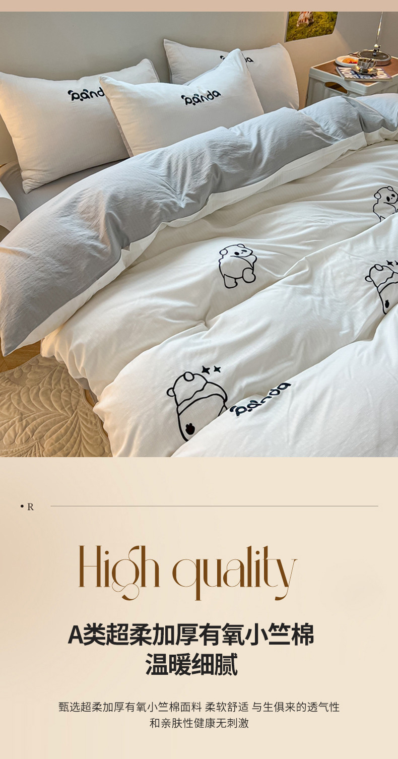当前位置: 91家纺网 > 商品网购 > 床品套件 > 四件套 > 小竺棉四件套 > 2024新款A类超柔加厚有氧提花小竺棉绣花四件套 Panda-奶白浅灰