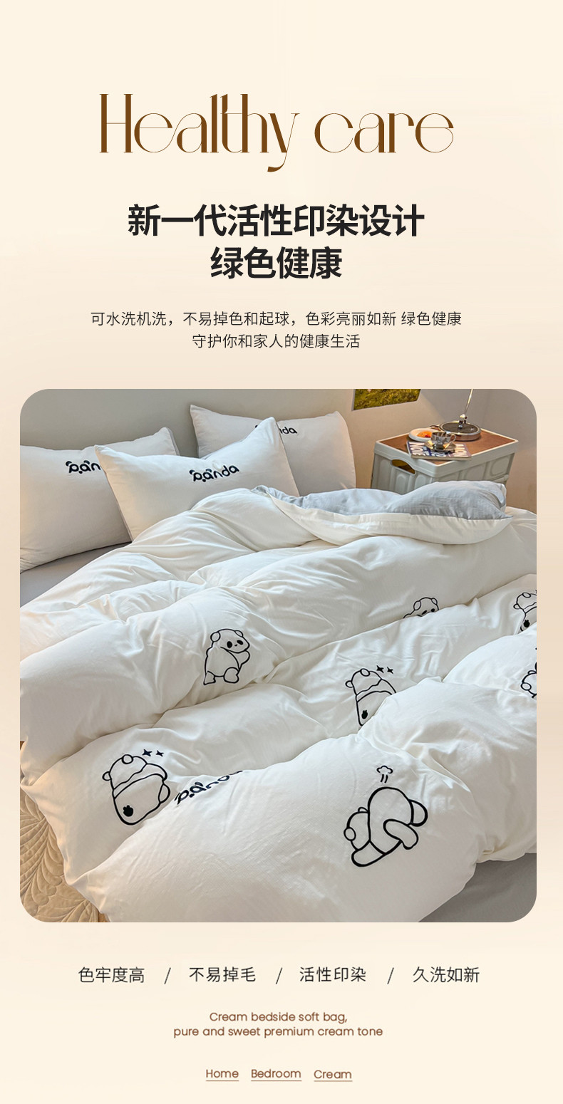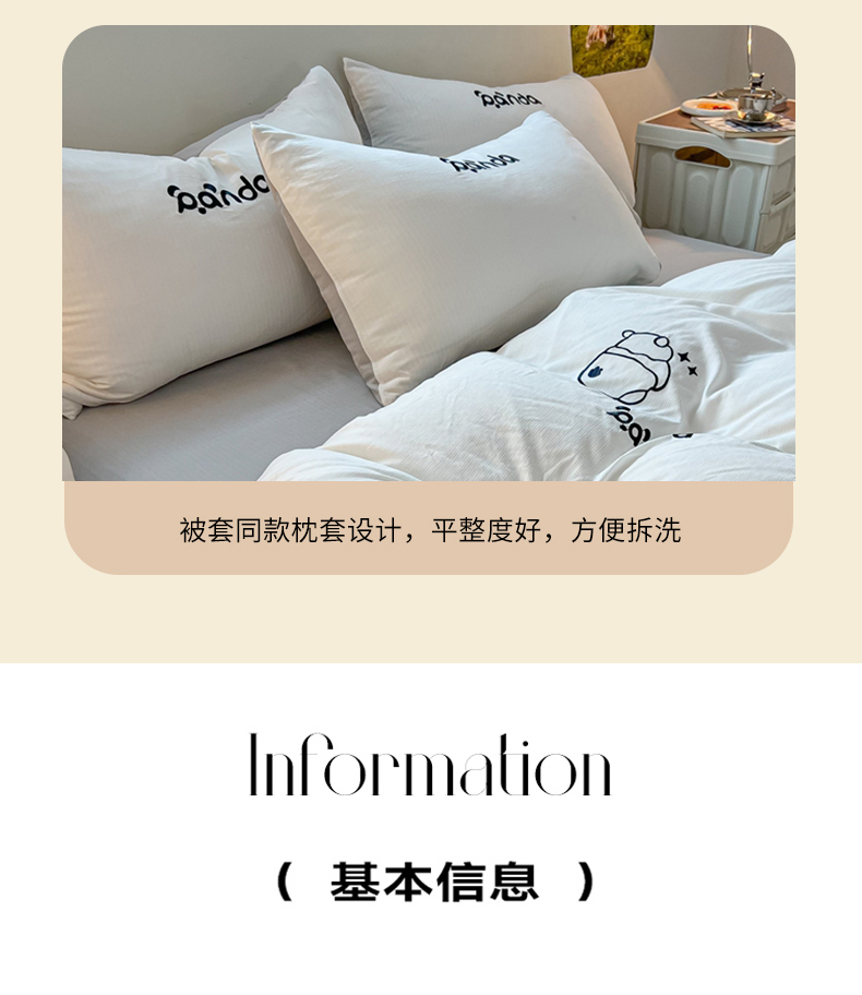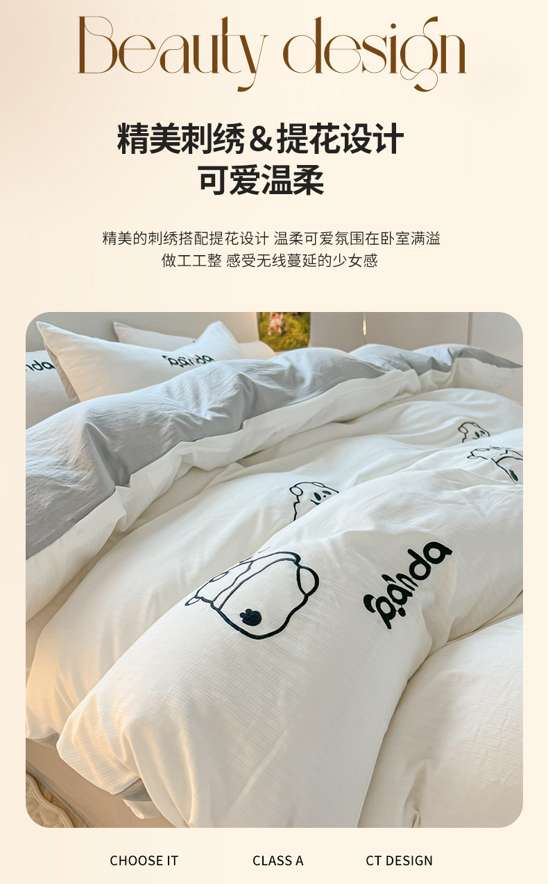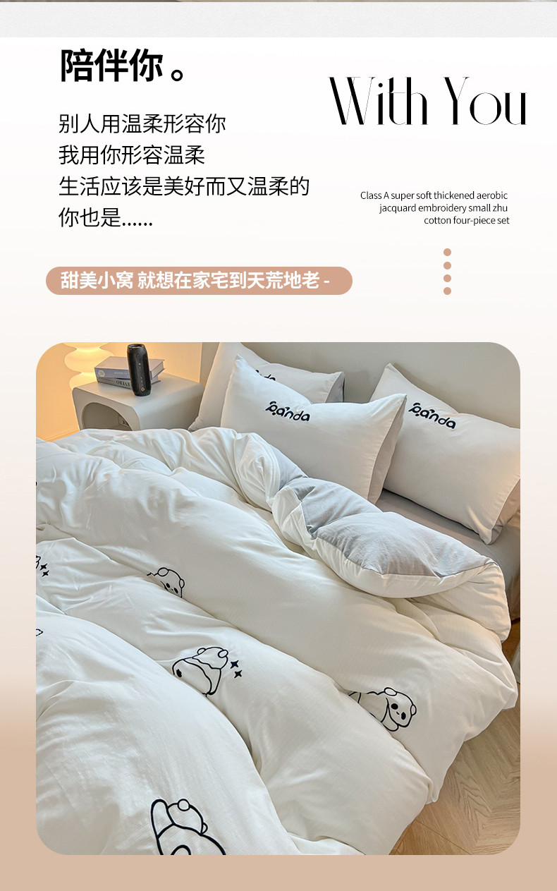 当前位置: 91家纺网 > 商品网购 > 床品套件 > 四件套 > 小竺棉四件套 > 2024新款A类超柔加厚有氧提花小竺棉绣花四件套 Panda-奶白浅灰