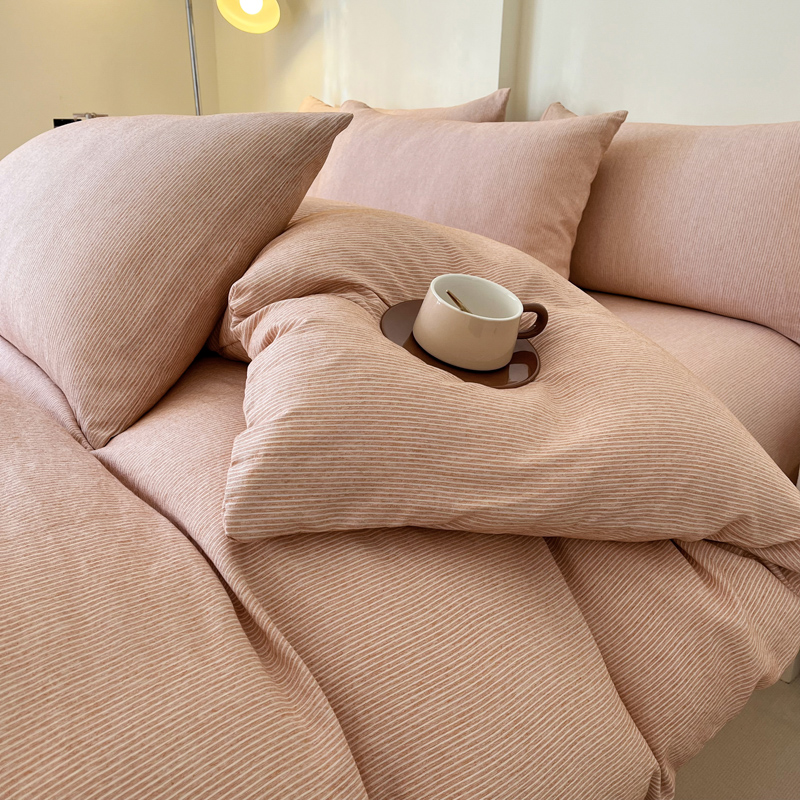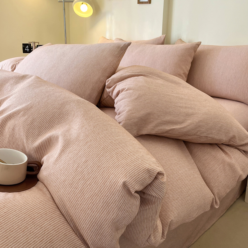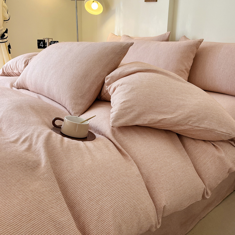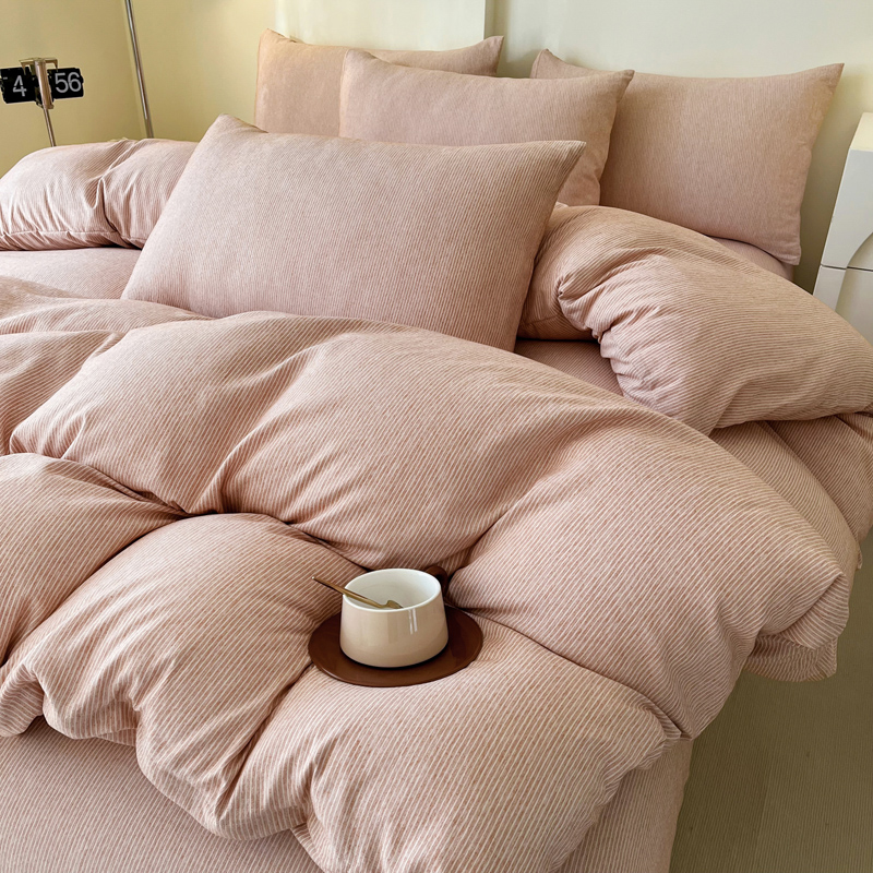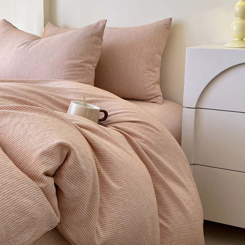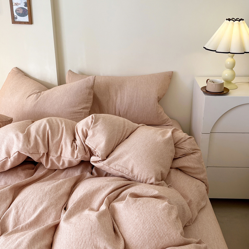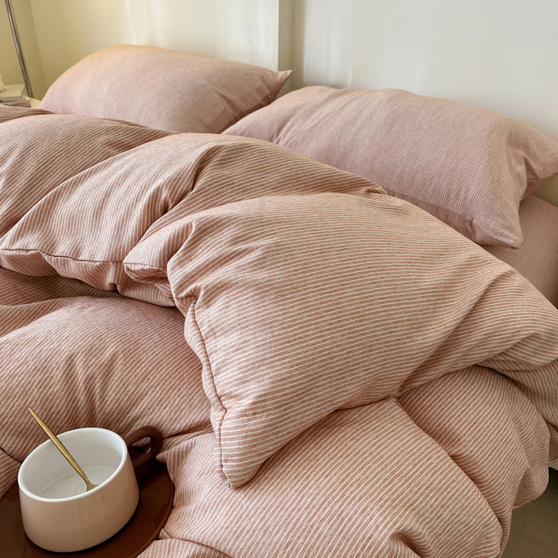 仟网汇 2024新款亲肤舒适无印风色织系列四件套 细条白桔