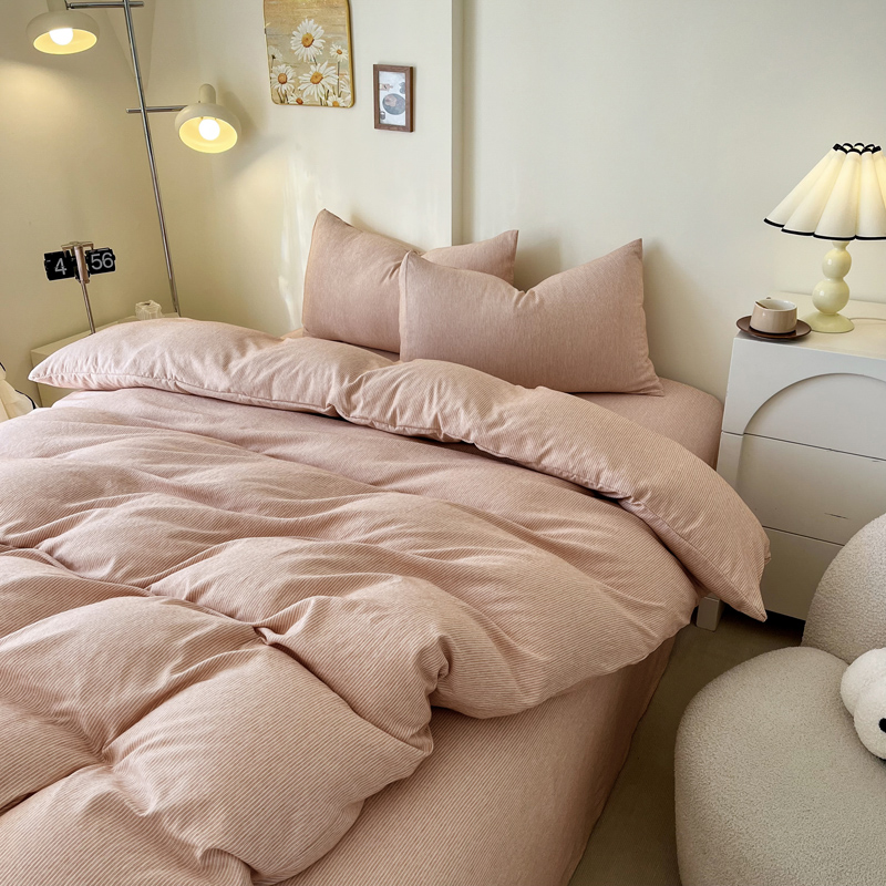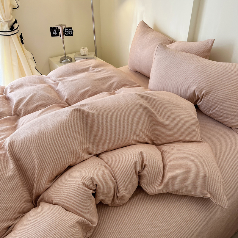 商品名称:仟网汇 2024新款亲肤舒适无印风色织系列四件套 细条白桔