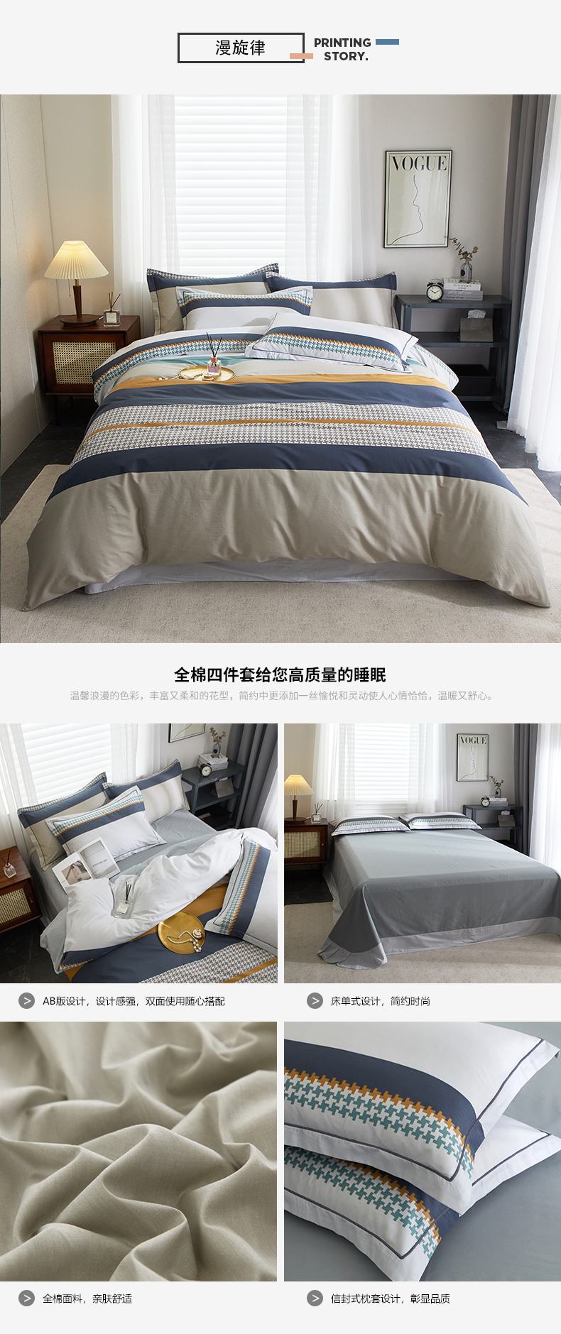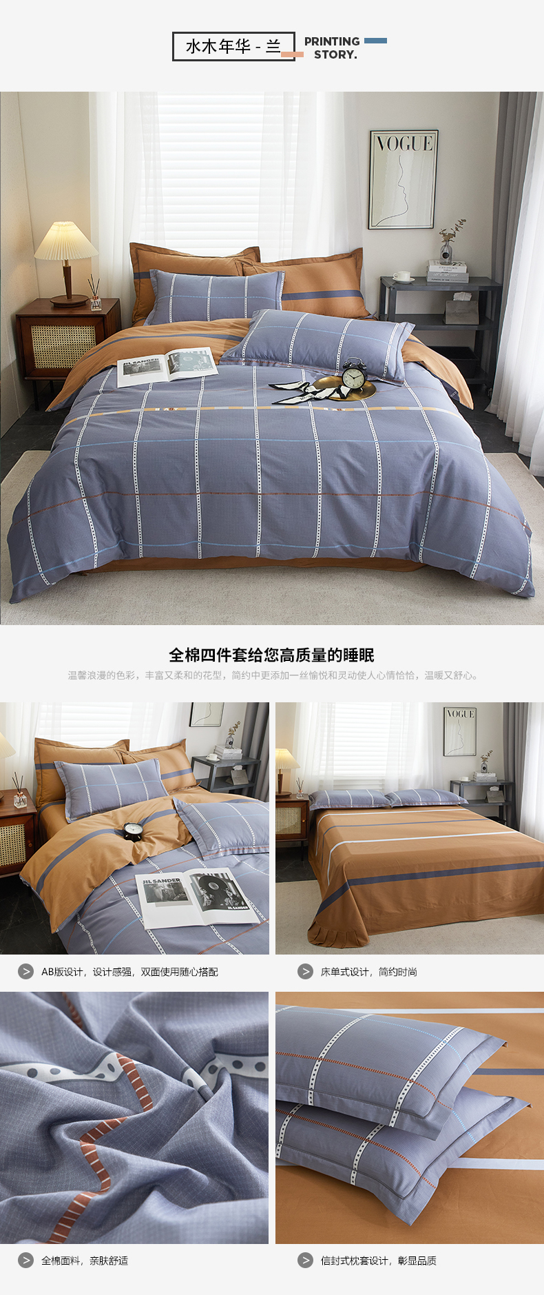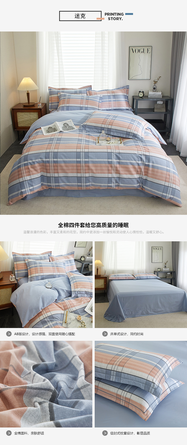 (总)沐白家居 2025新款全棉印花四件套,彩虹心,格雷尔,嘉宇格-咖,嘉宇格-蓝,绿植,落花,漫生活,米洛-灰,南枝-粉