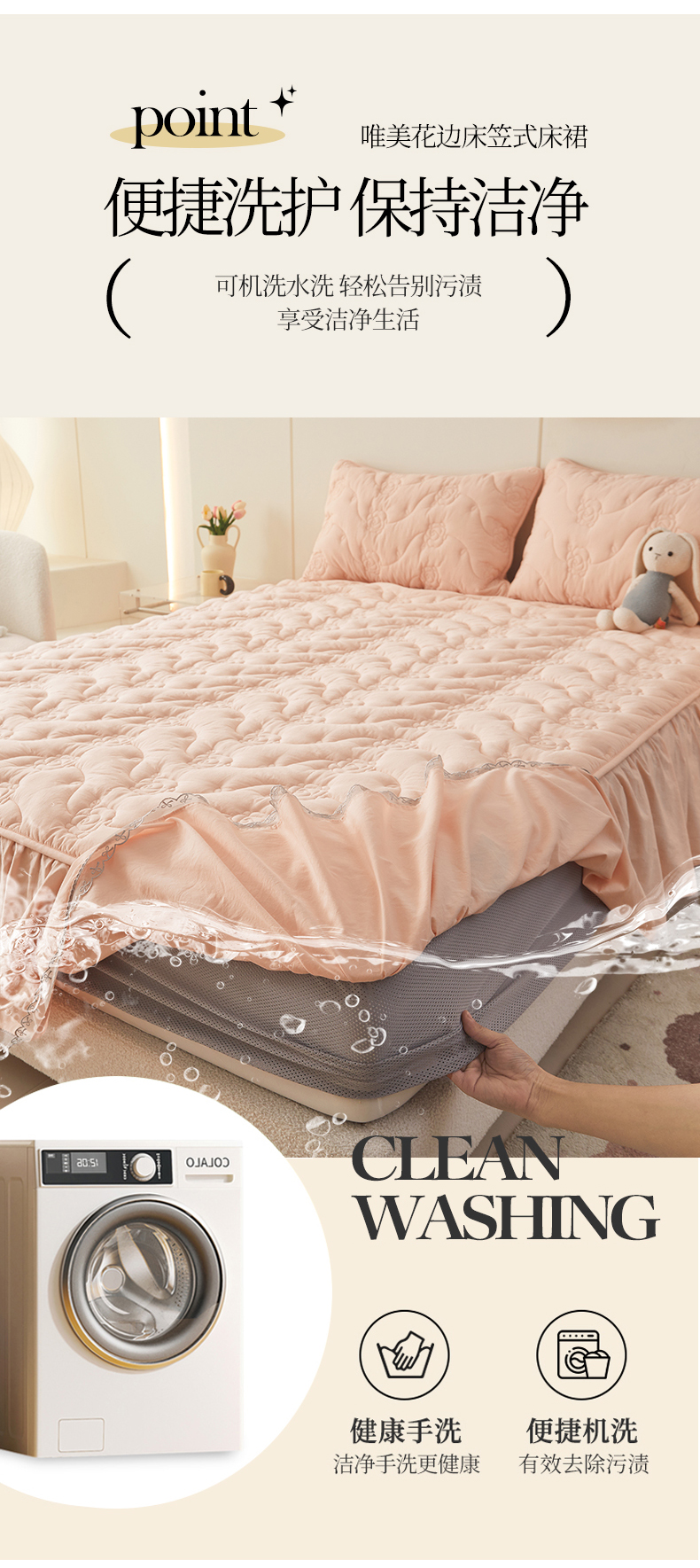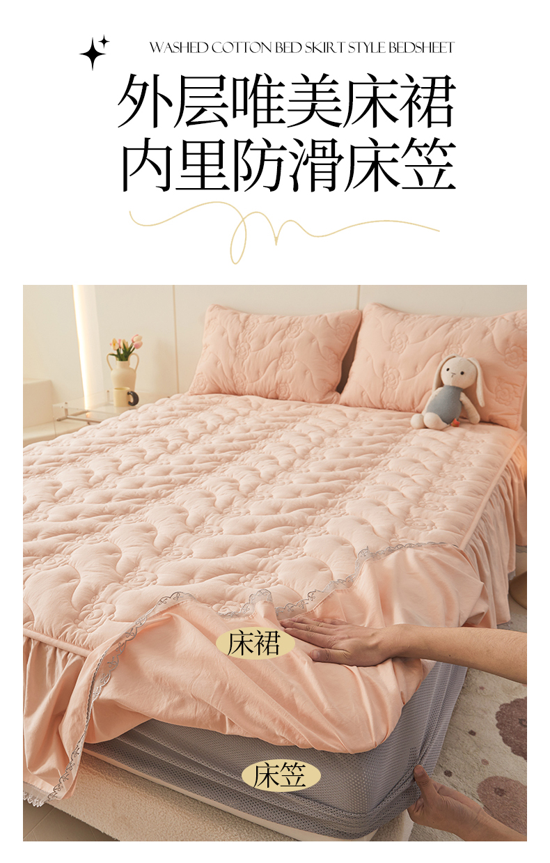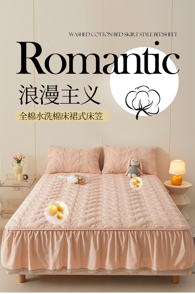 3C 2024新款玫瑰水洗棉床裙式床笠 典雅玉