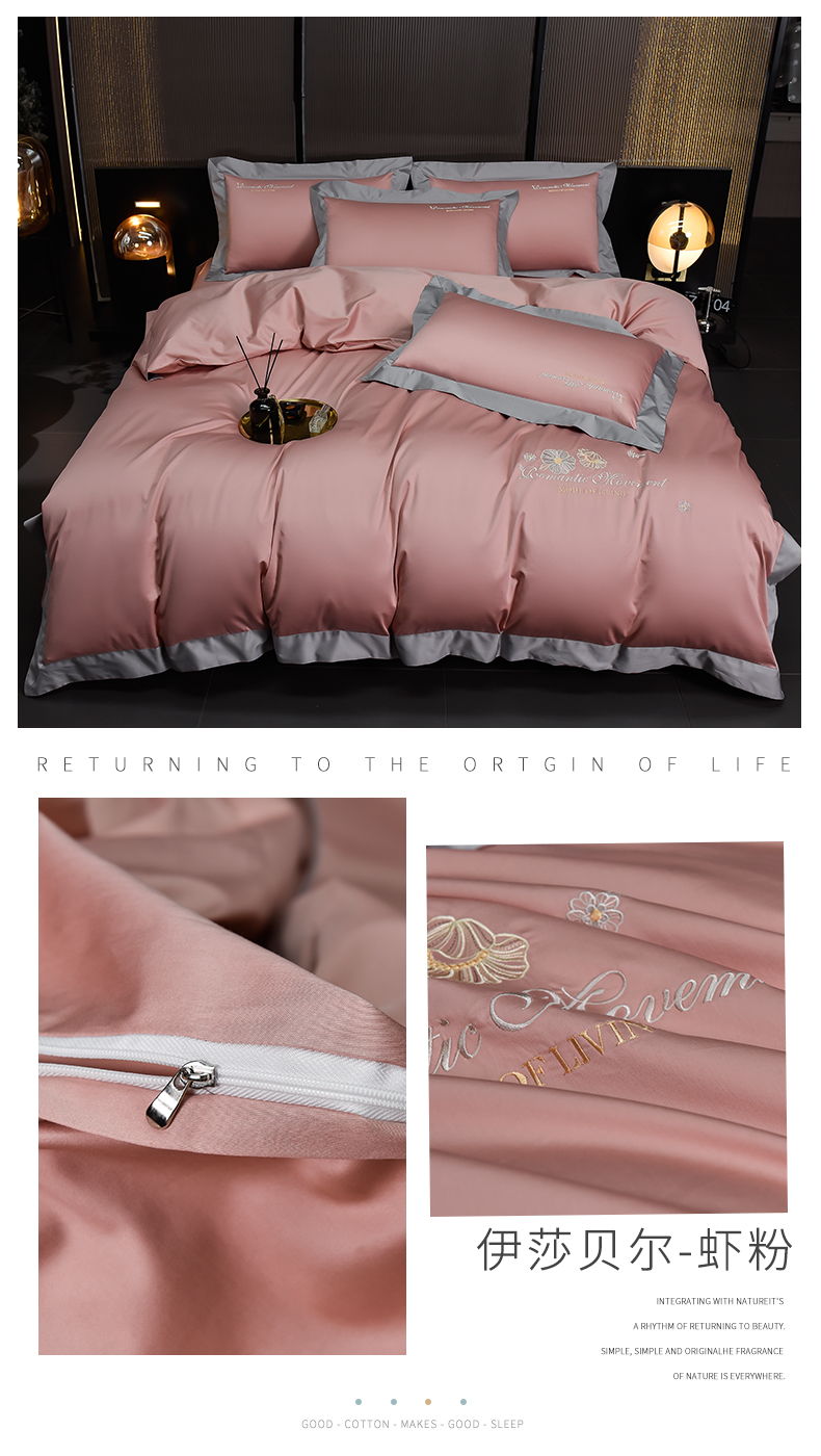 (总)瑞驰家纺 2022新款100S长绒棉绣花-爱德拉系列,豆沙红+优雅紫,摩登灰+深海蓝,柠檬黄+摩登灰,清水绿+摩登灰,时尚桔+摩登灰,水粉+摩登灰,象牙白+摩登灰,优雅紫+豆沙红