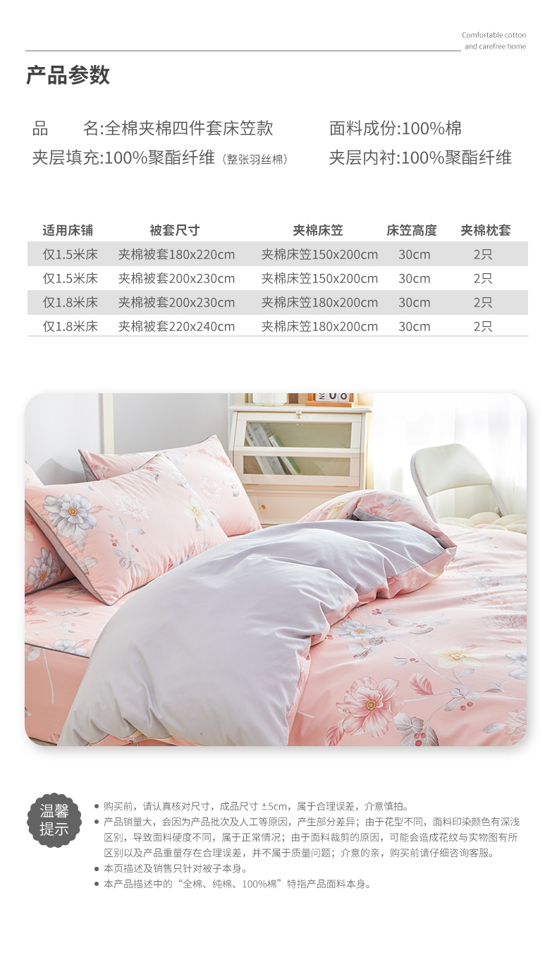 夹棉被套2.0夹棉床笠1.5枕套四件 | ¥195.00 |