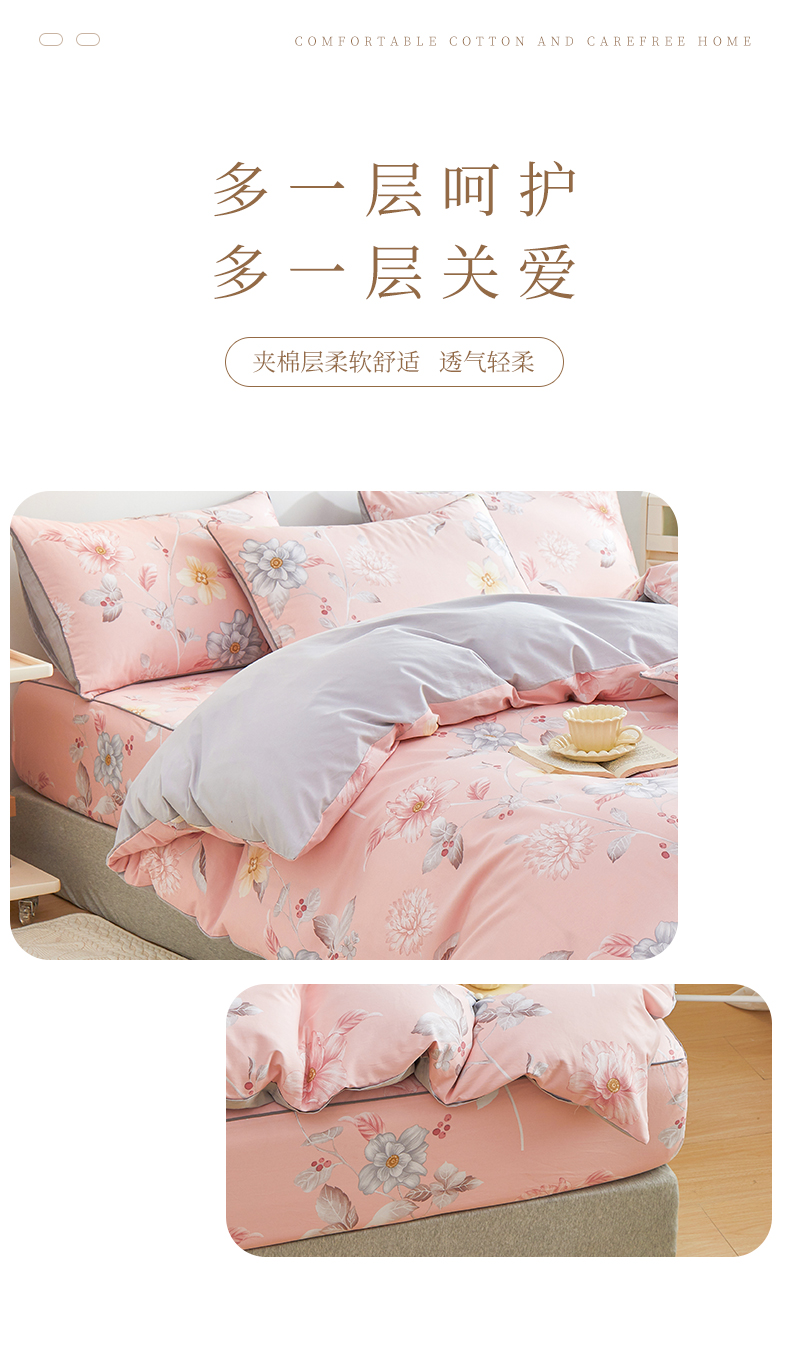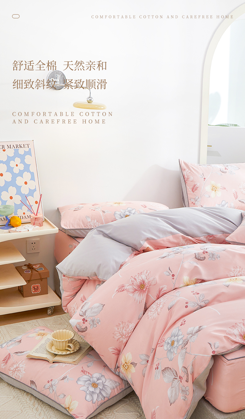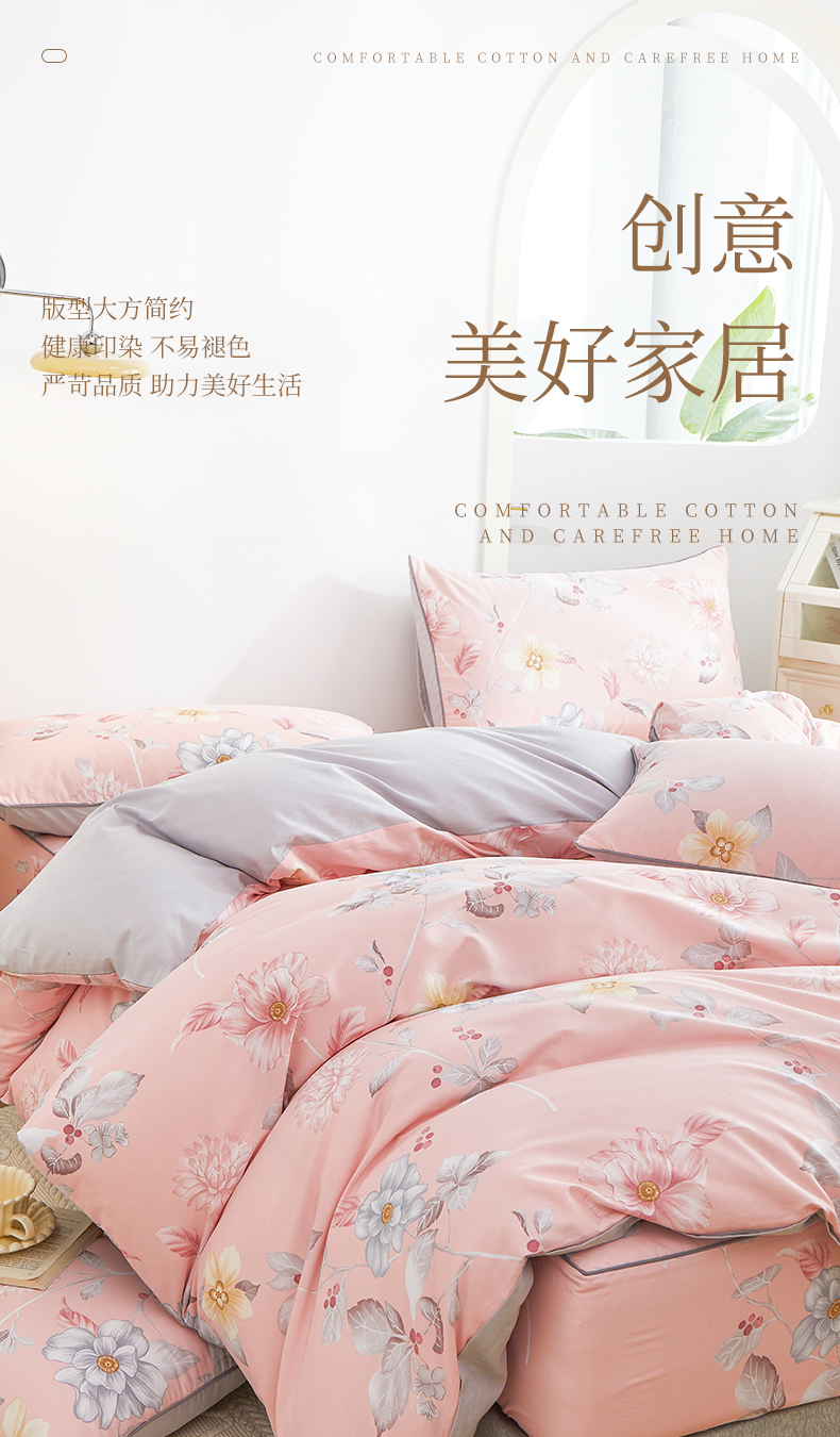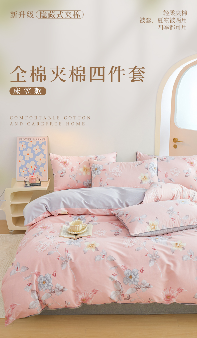 当前位置: 91家纺网 > 商品网购 > 床品套件 > 四件套 > 全棉普通四件套 > 元元被业 2024新款小清新隐藏式全棉夹棉四件套床笠款 花之绚烂-粉