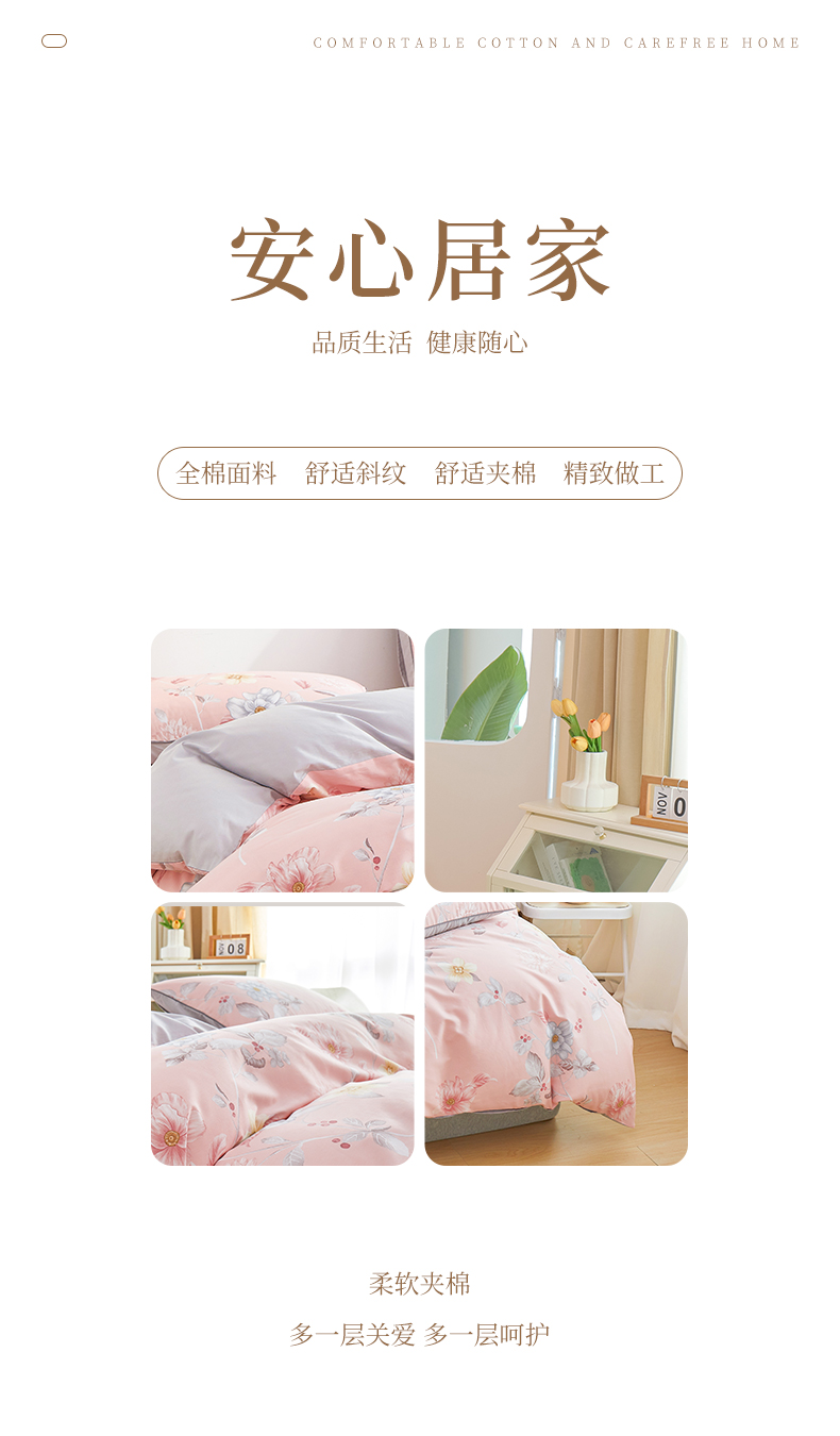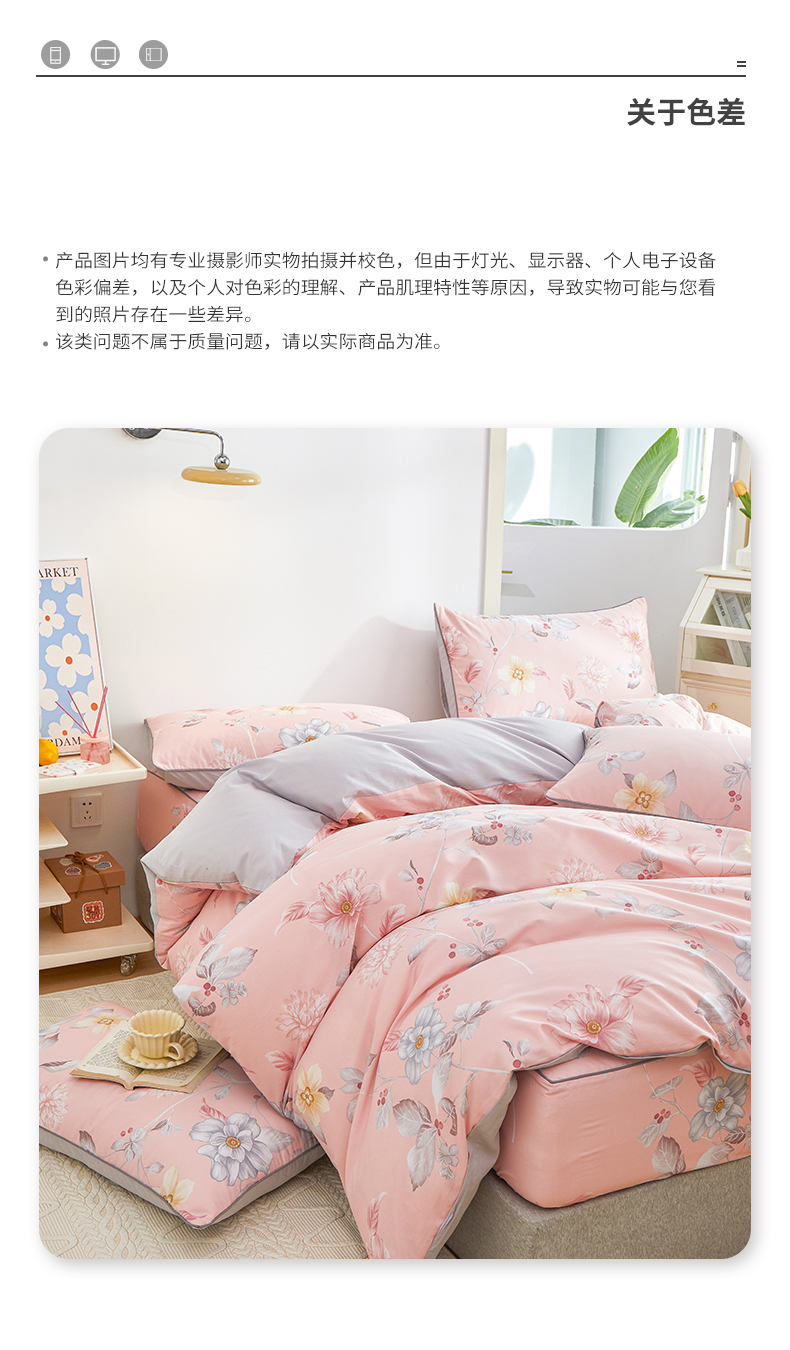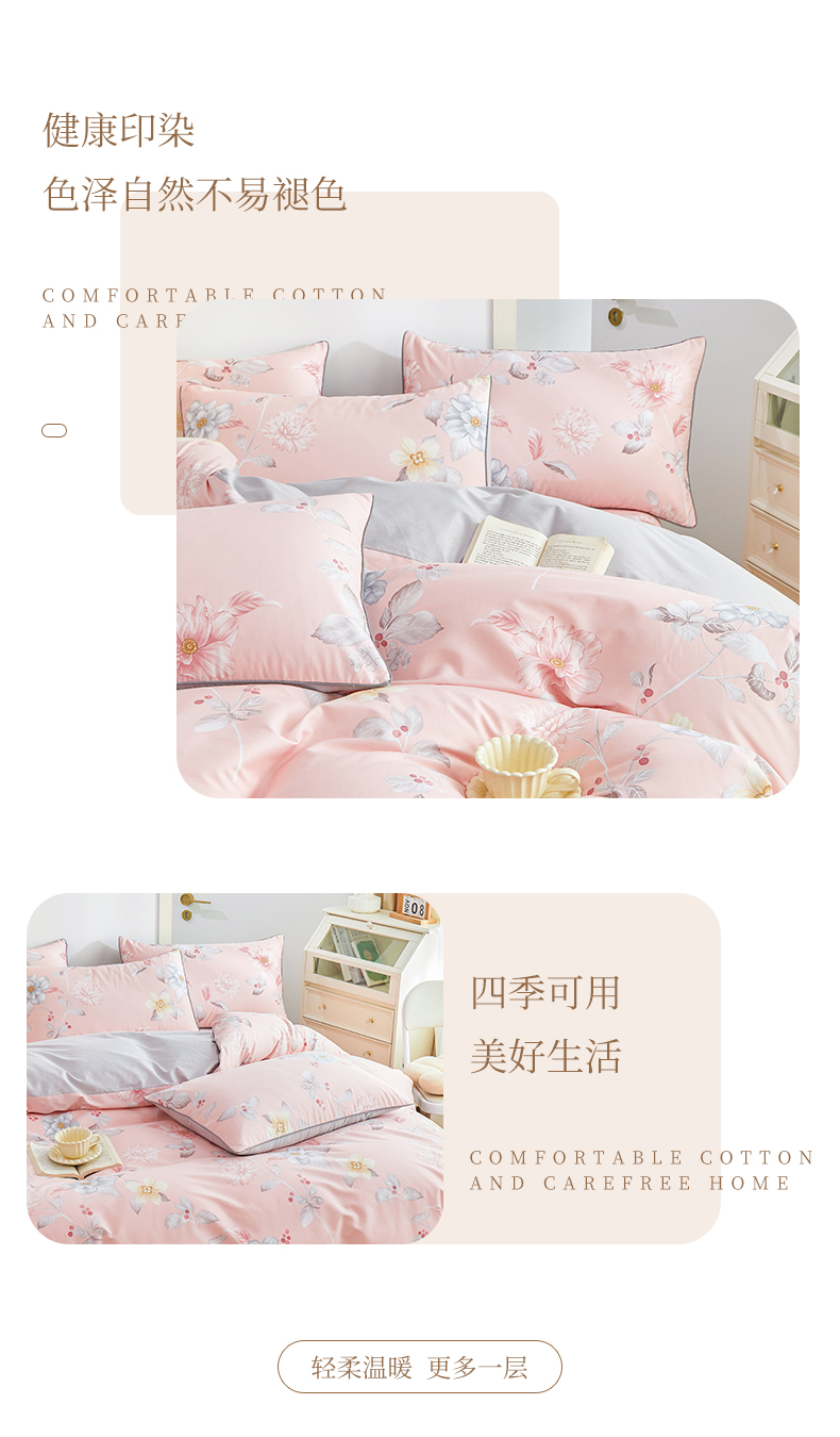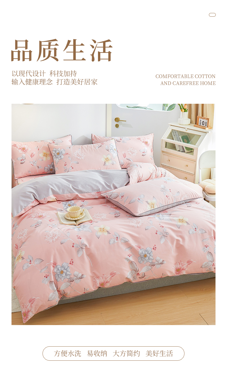 当前位置: 91家纺网 > 商品网购 > 床品套件 > 四件套 > 全棉普通四件套 > 元元被业 2024新款小清新隐藏式全棉夹棉四件套床笠款 花之绚烂-粉