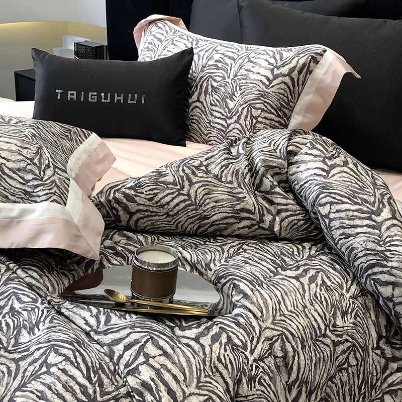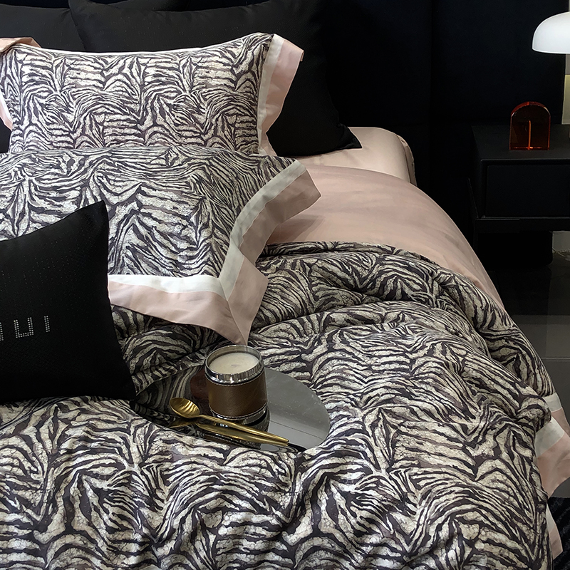 太古汇 2024新款长绒棉专版数码印花双拼四件套--豹纹 戴安娜-粉