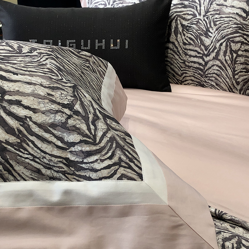 商品名称:太古汇 2024新款长绒棉专版数码印花双拼四件套--豹纹 戴安娜-粉