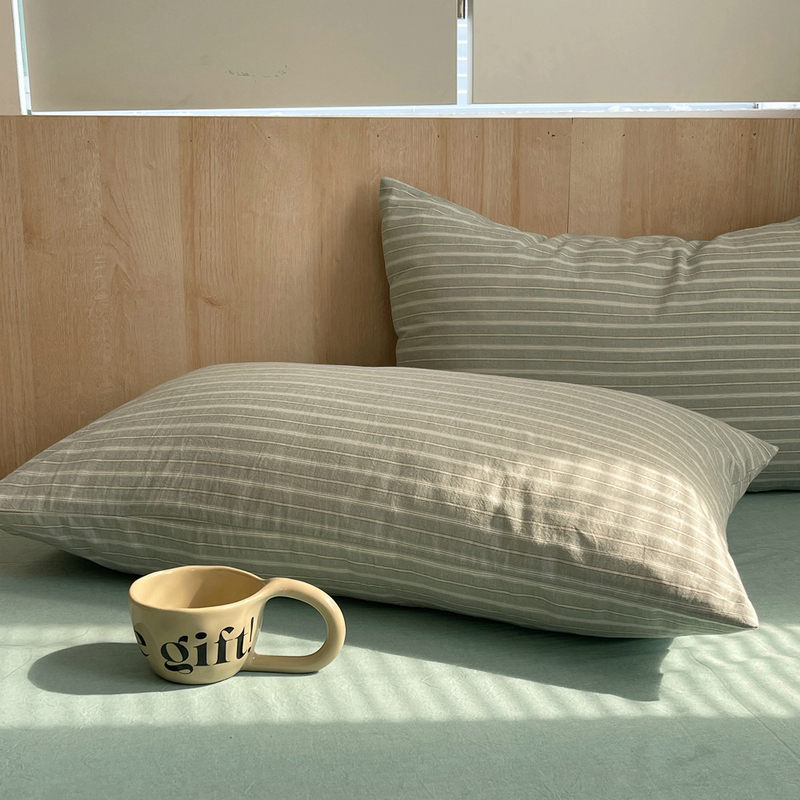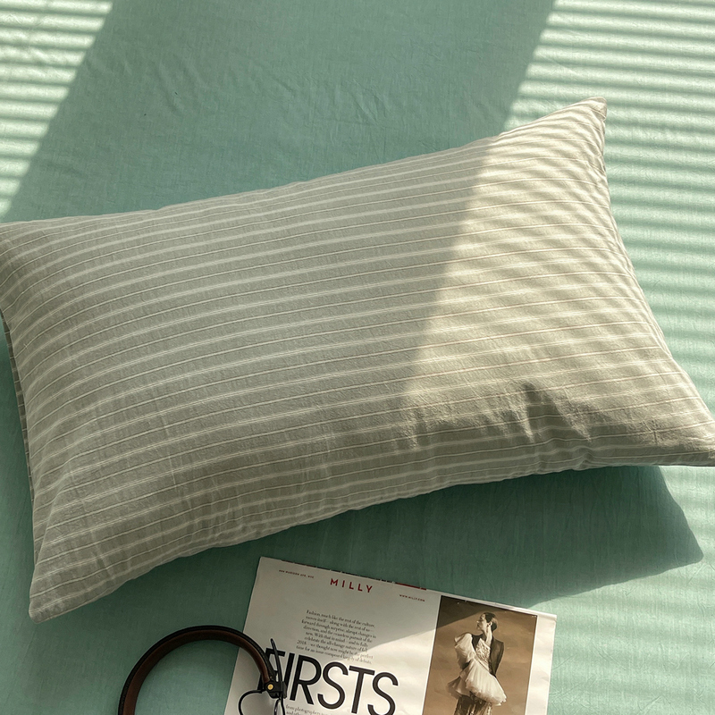 艾咪 2024新款全棉色织水洗棉单品-枕套 维多利浅灰