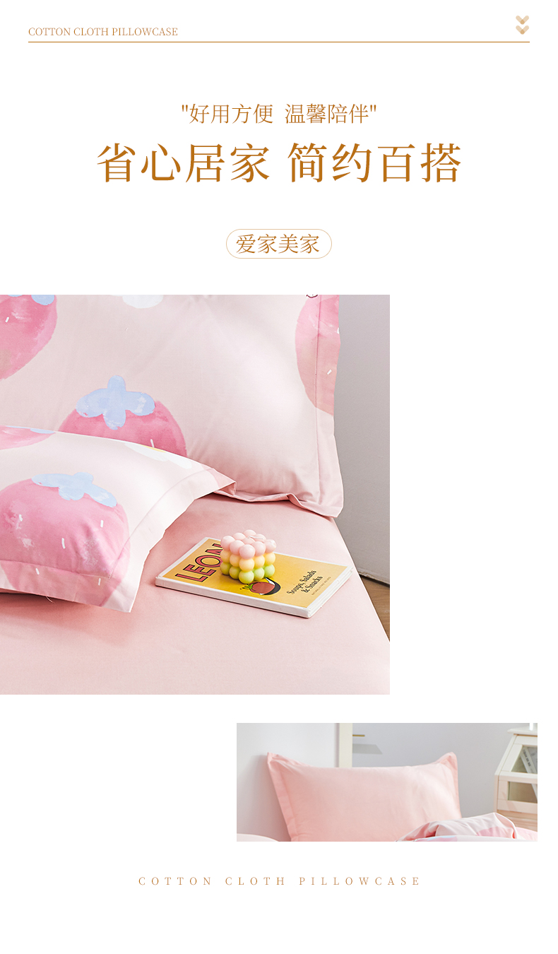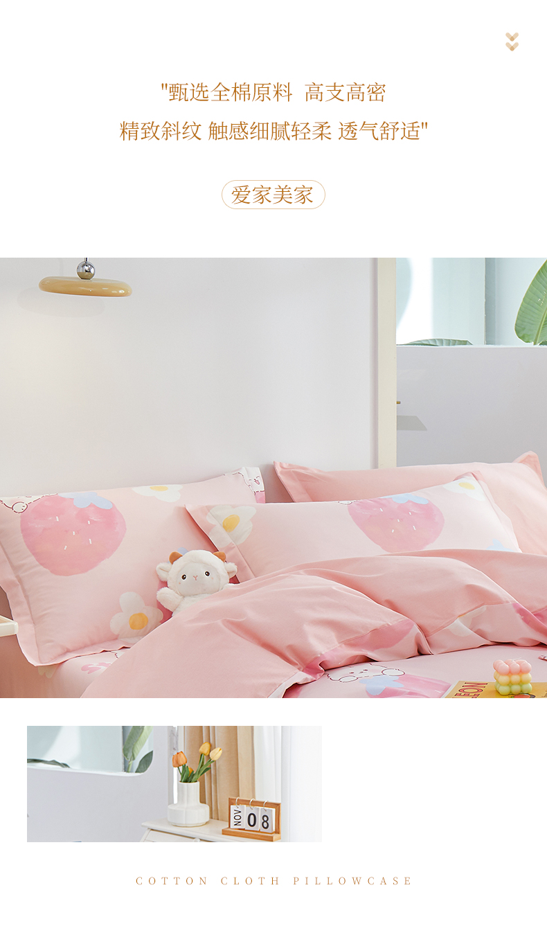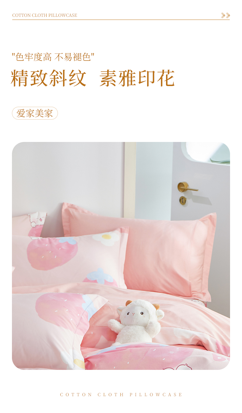 商品名称:元元被芯 2024新款小清新全棉套件单品-单枕套 哈尼-粉
