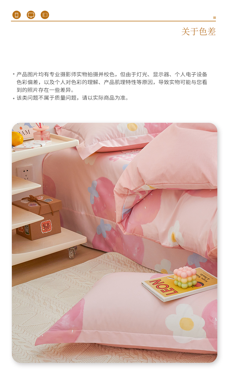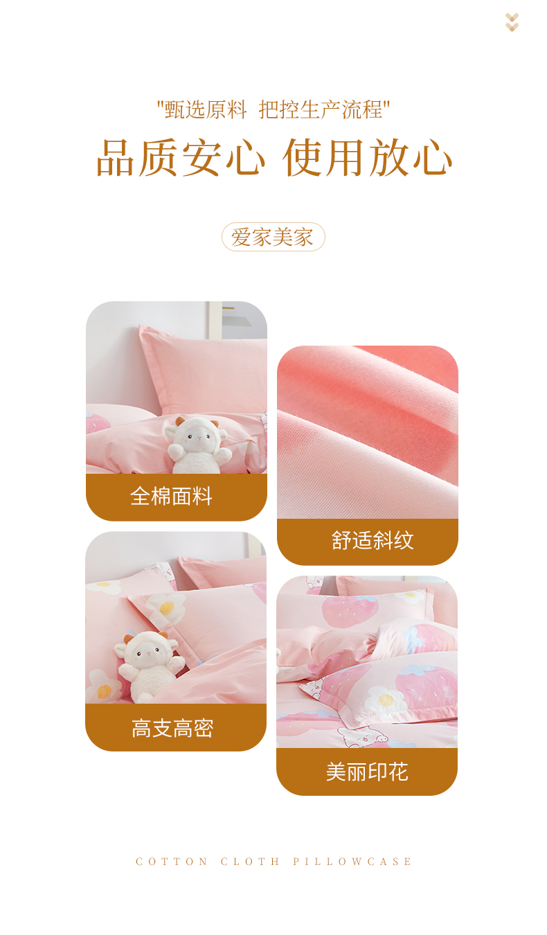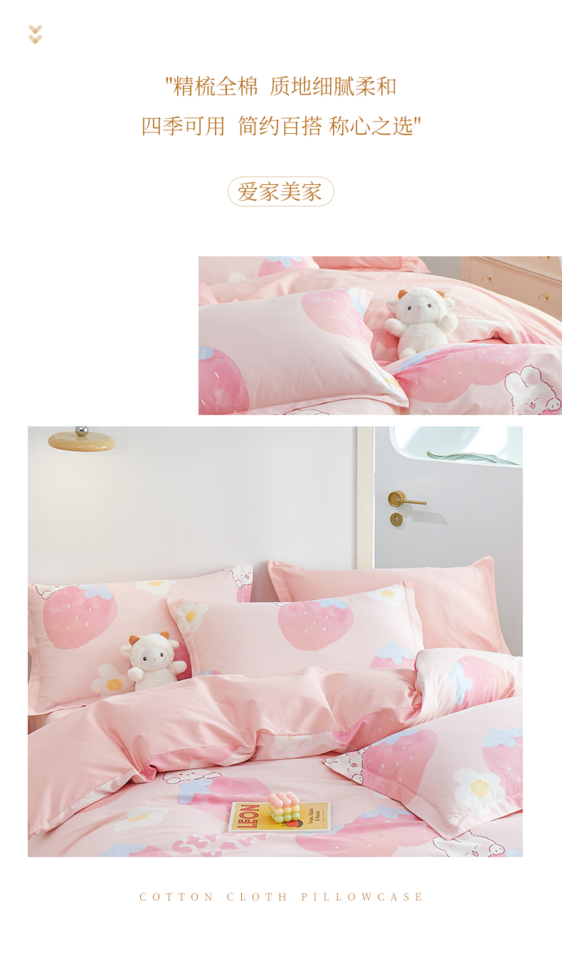 商品名称:元元被芯 2024新款小清新全棉套件单品-单枕套 哈尼-粉
