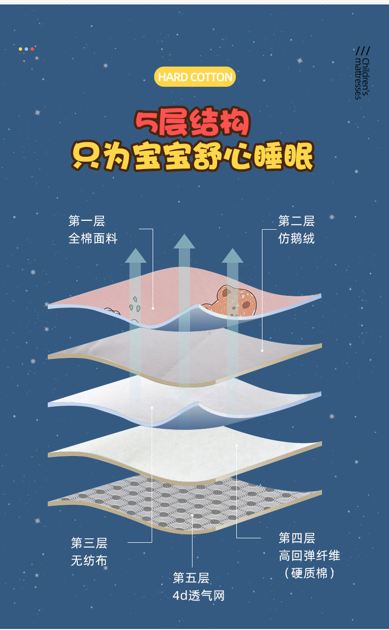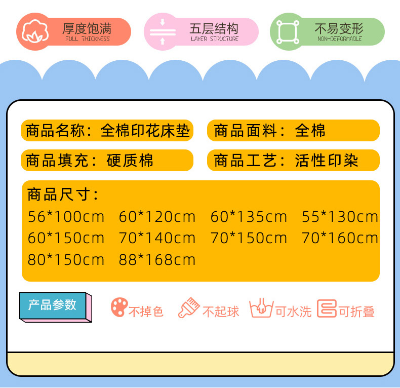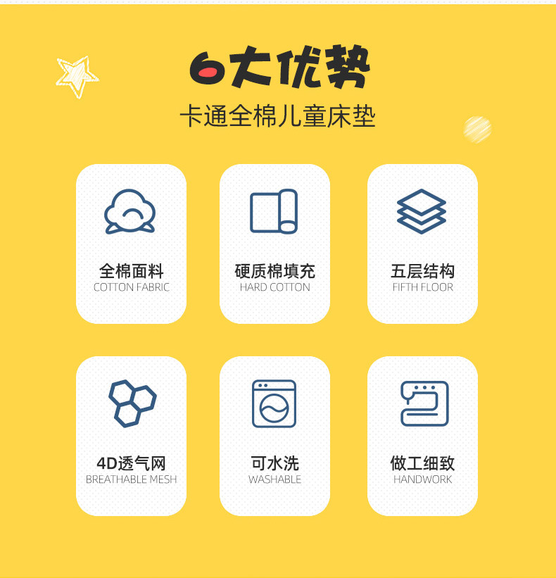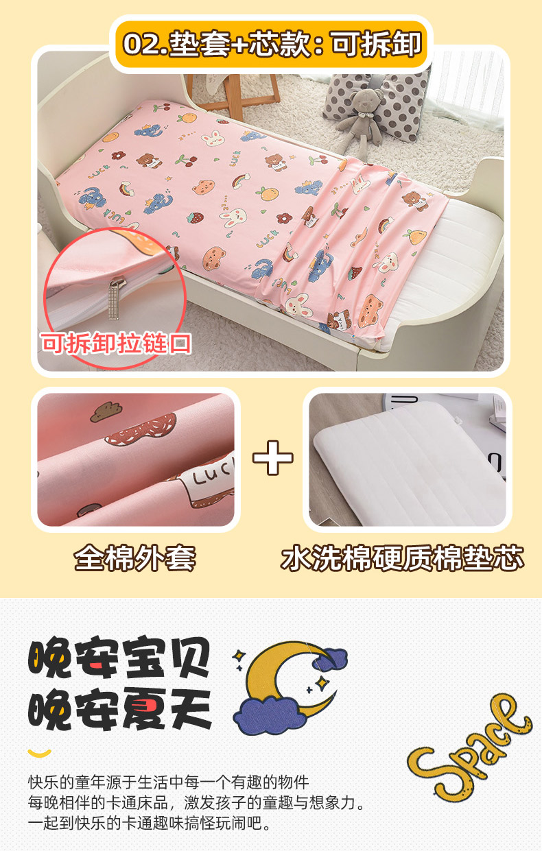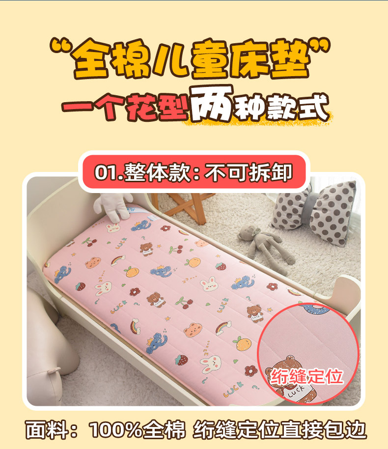 当前位置: 91家纺网 > 商品网购 > 床垫/床褥 > 普通床垫 > 宝贝优选 2024新款全棉儿童四季拆卸款床垫 彩色世界