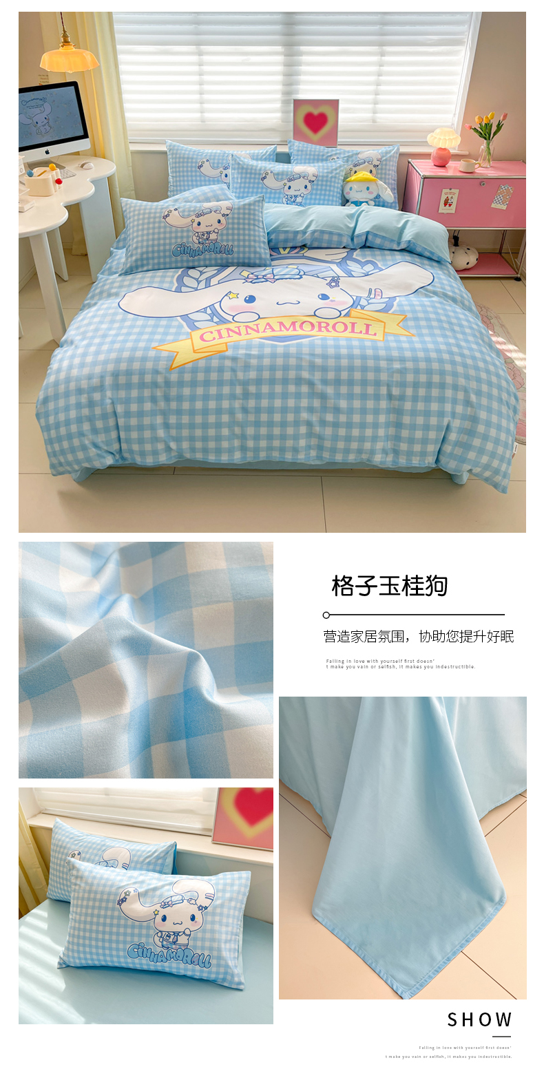 (总)金爱家 2025新款A类三丽鸥正版授权云柔水洗棉兔毛贴布绣刺绣软糯系列四件套,云柔水洗棉-贴布绣粉格KT,云柔水洗棉-贴布绣蓝格布丁狗,云柔水洗棉-贴布绣蓝格KT,云柔水洗棉-贴布绣美乐蒂,云柔水洗棉-贴布绣萌萌布丁狗,云柔水洗棉-贴布绣你好大耳狗,云柔水洗棉-贴布绣紫格库洛米