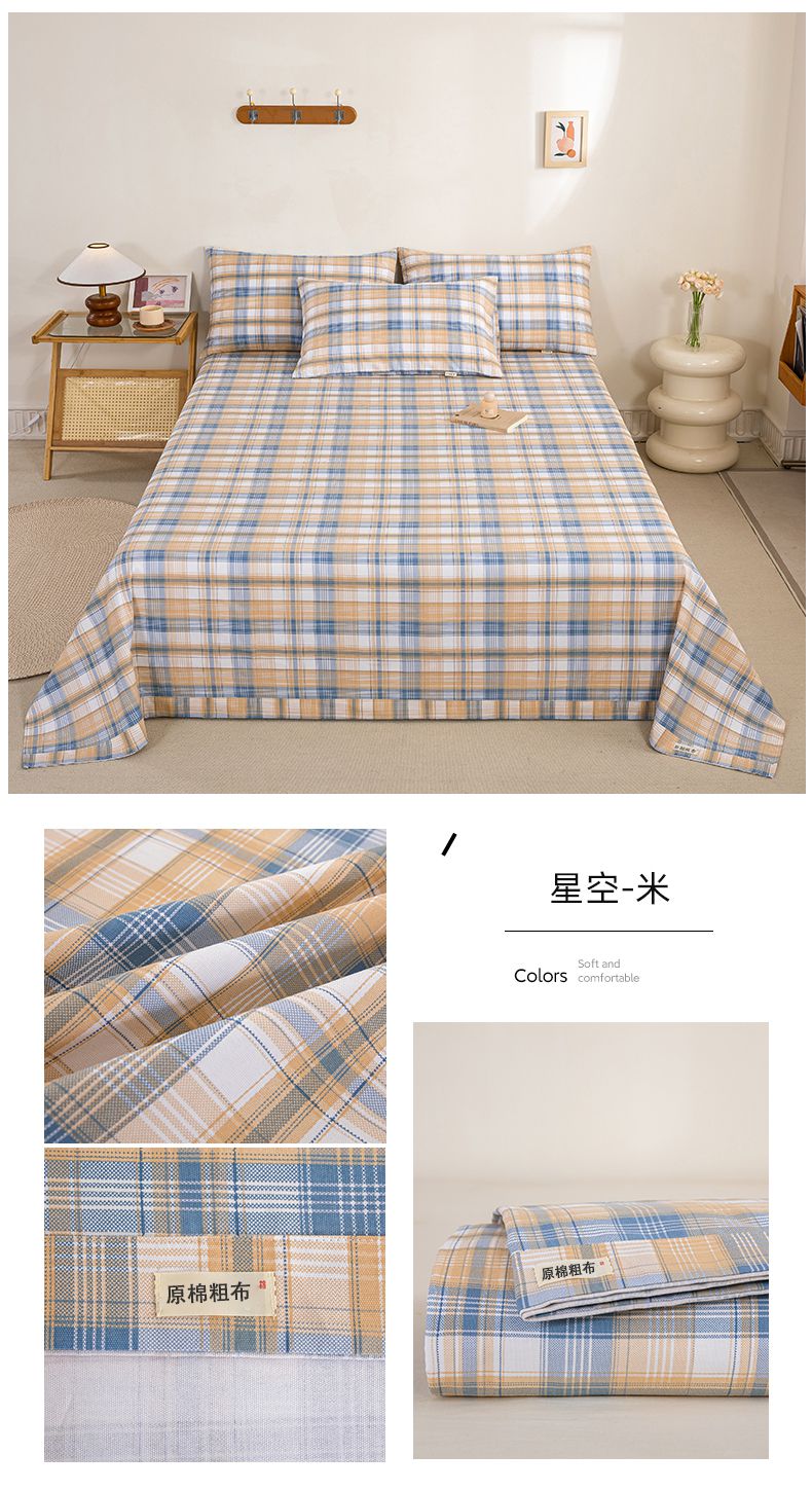 九沐良品 新款全棉无印老粗布单品床单+三件套 星空米