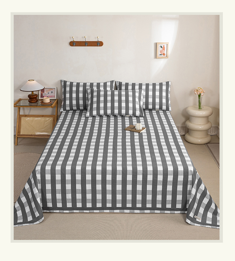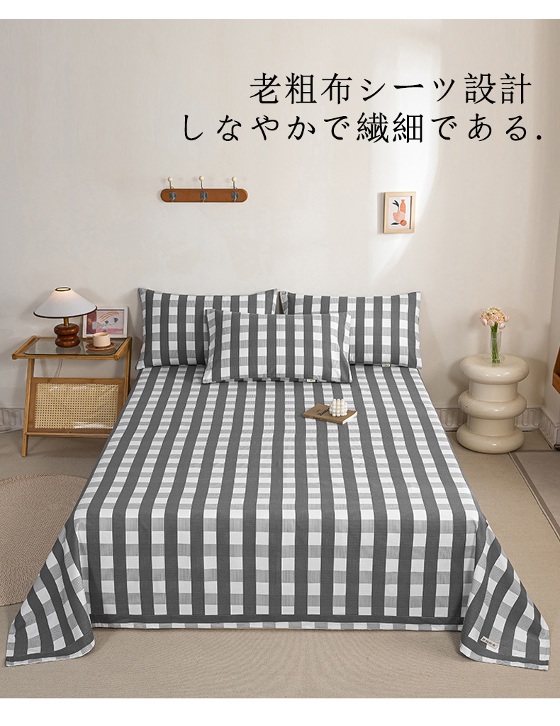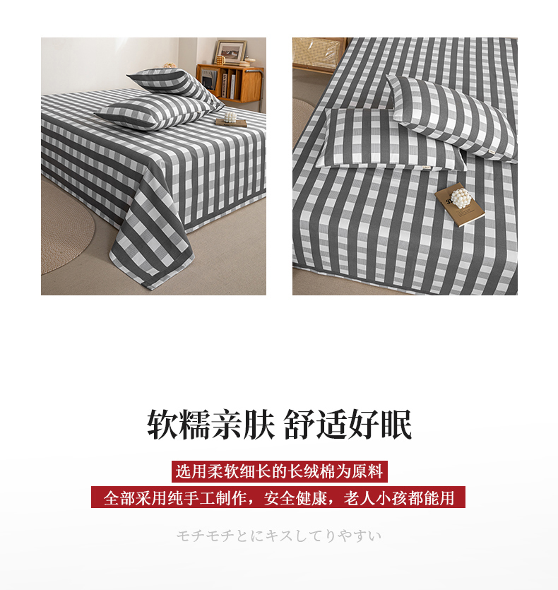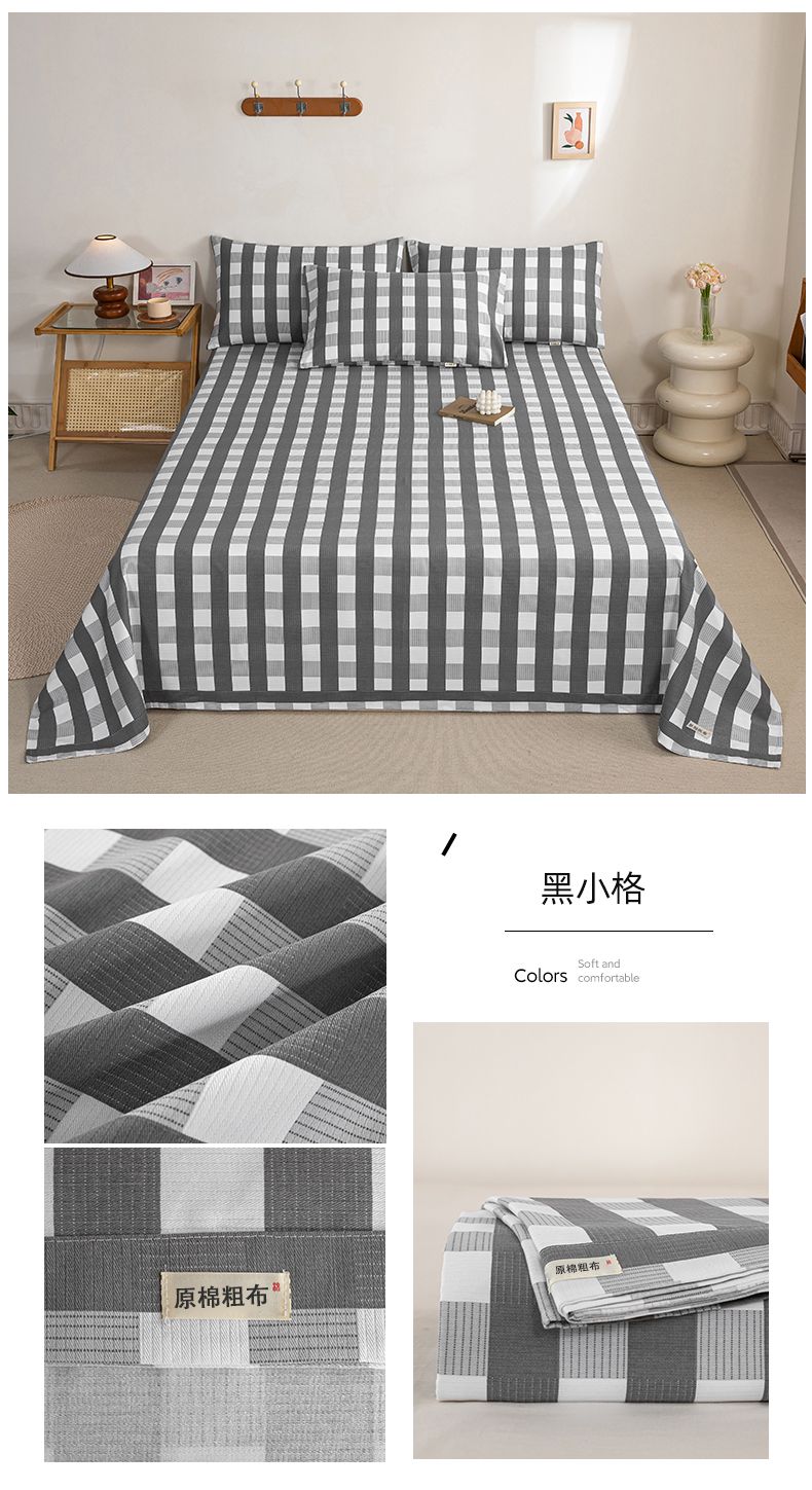 九沐良品 新款全棉无印老粗布单品床单+三件套 黑小格