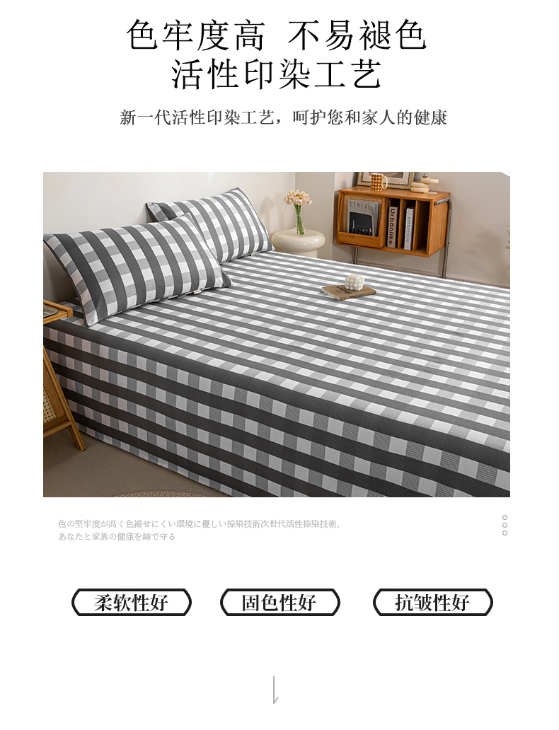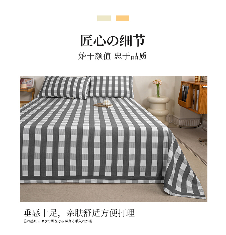 • 91家纺网 家纺一手货源 找家纺 九沐良品 新款全棉无印老粗布单品床单+三件套 黑小格