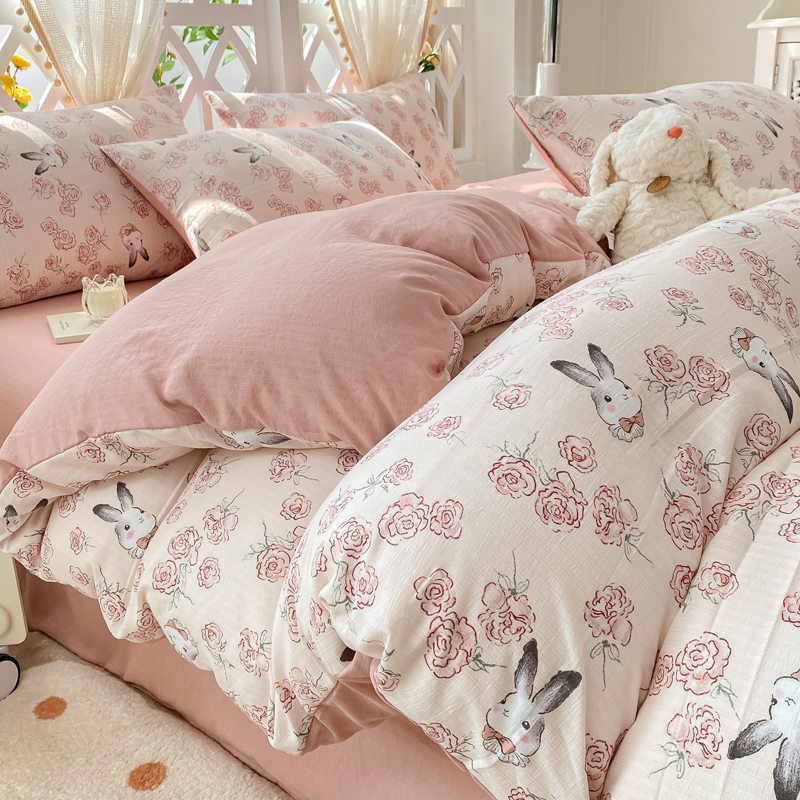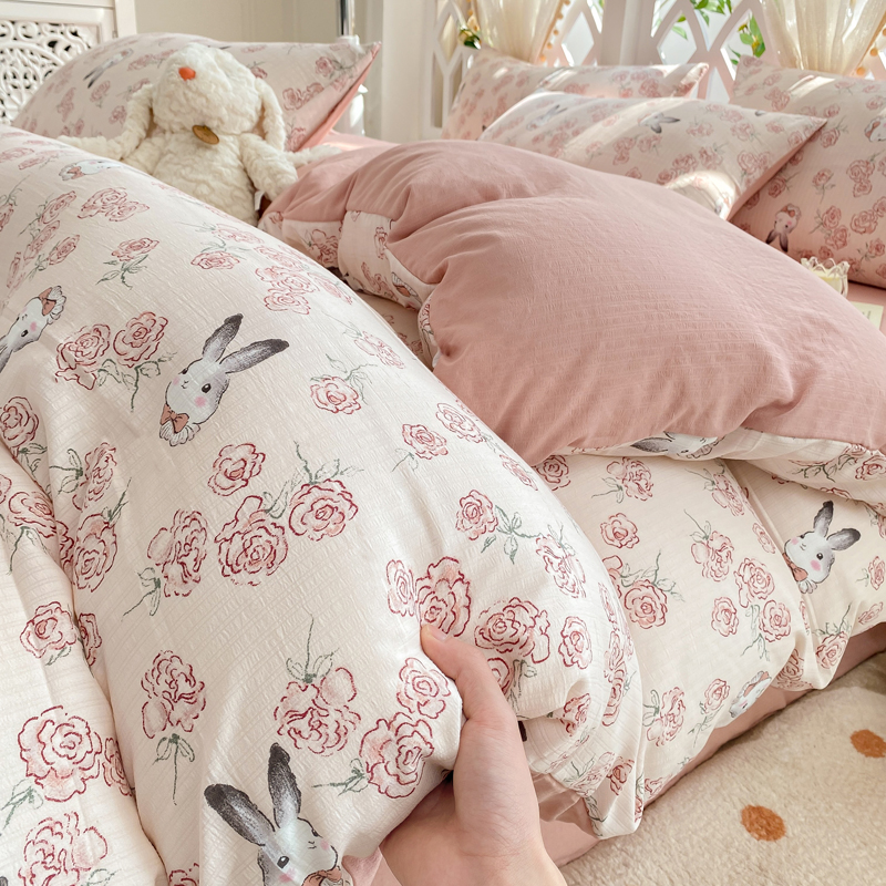 当前位置: 91家纺网 > 商品网购 > 床品套件 > 四件套 > 其它四件套 > 牛牛家纺 牛牛 2024新款泡泡棉小清新四件套(1) 甜心小兔