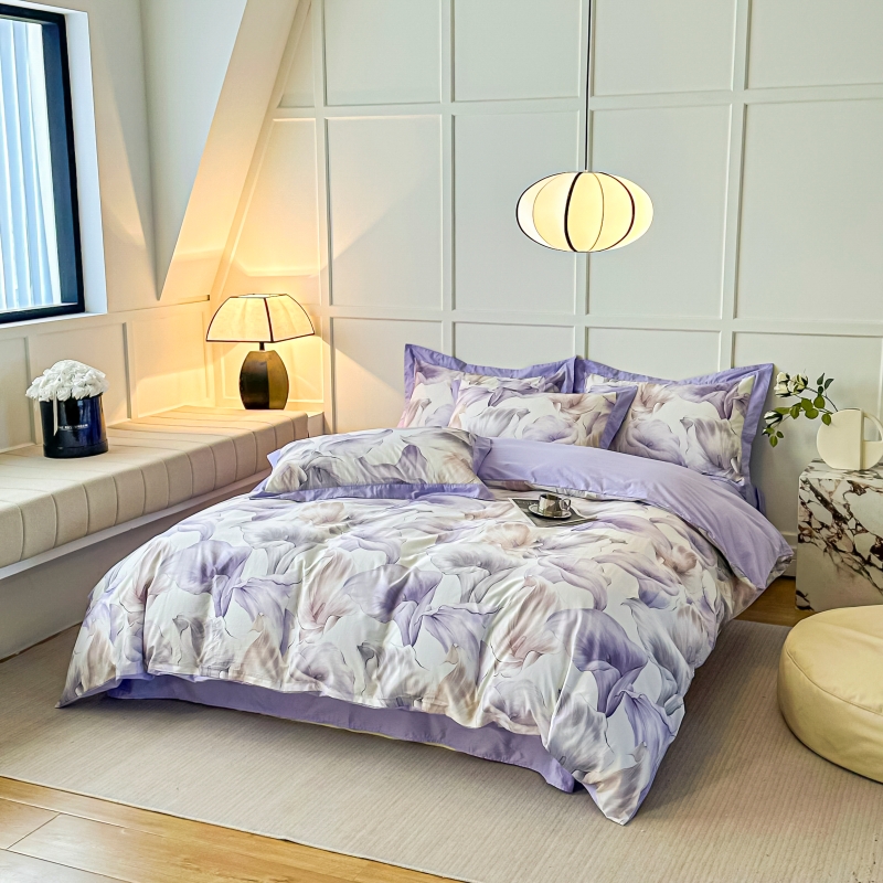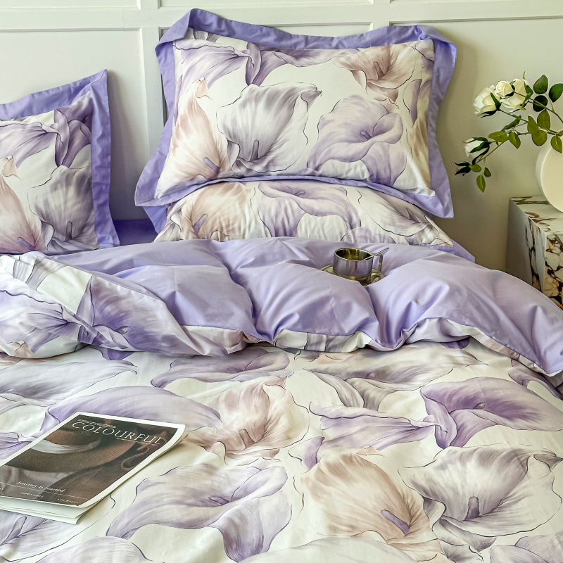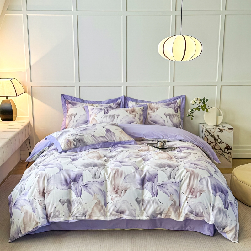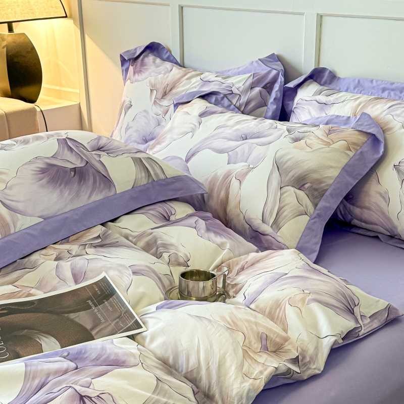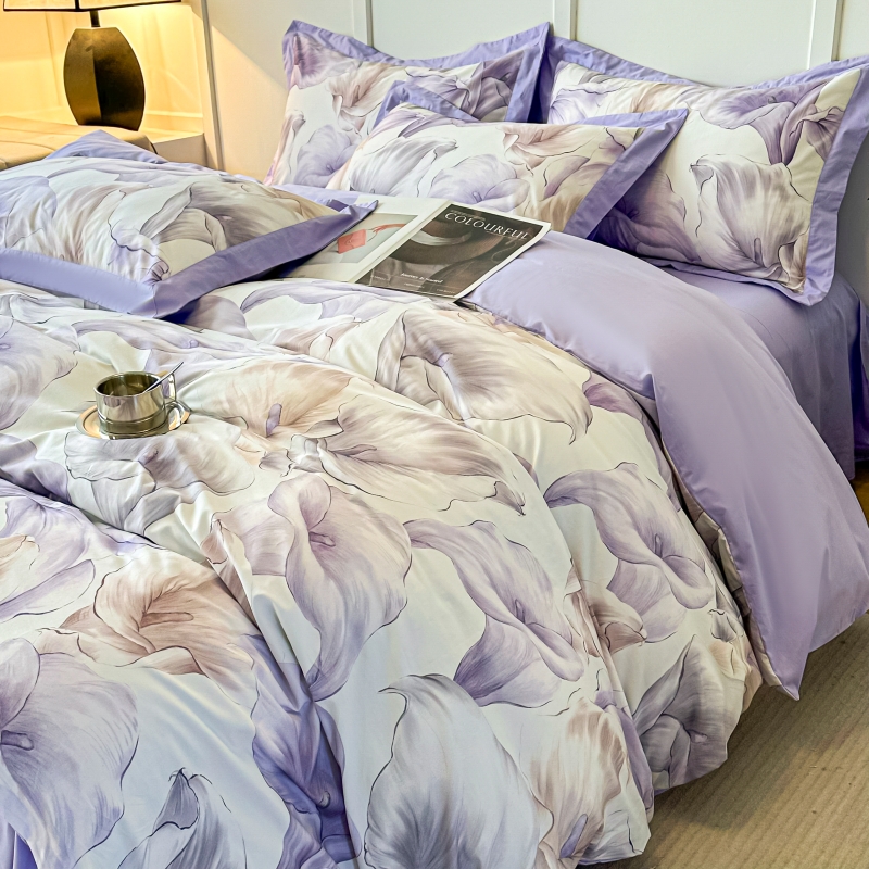 棉生活 2024新款铂金棉高支数码印花四件套 步步生莲