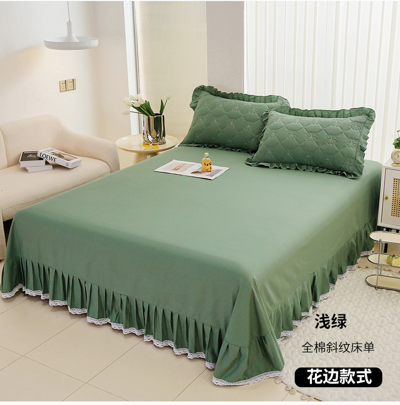 情煊家纺 2024新款全棉斜纹花边床单系列-纯色款 浅绿