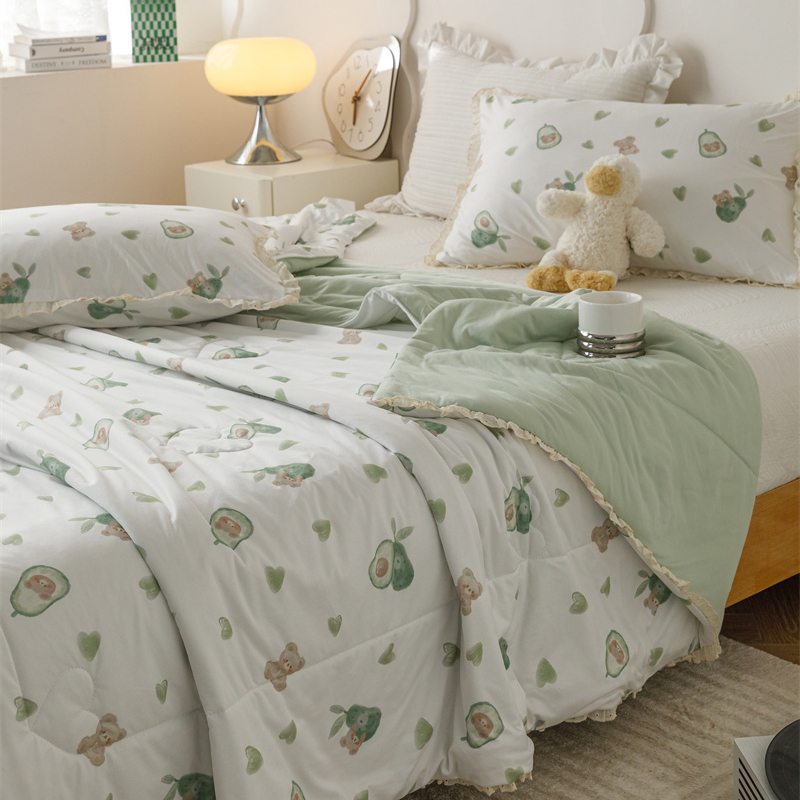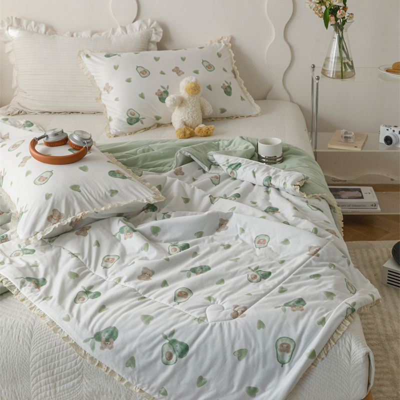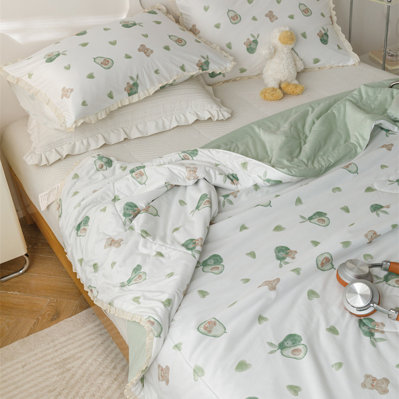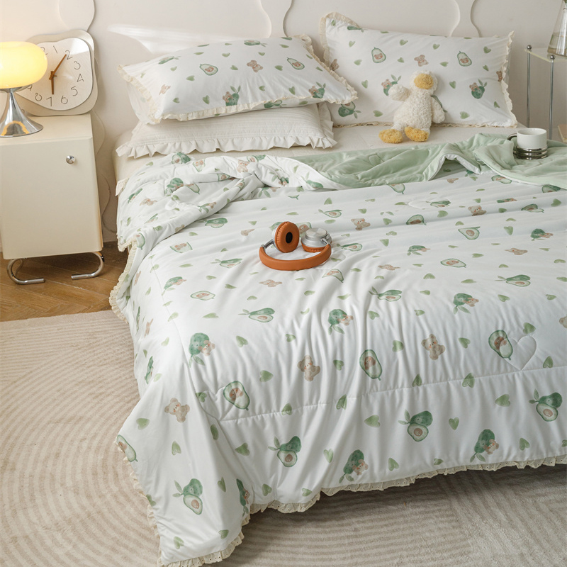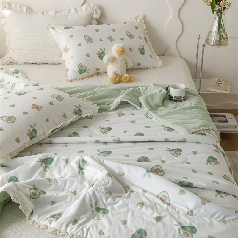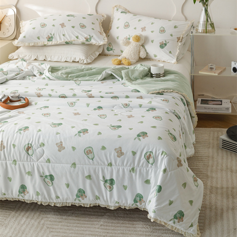 有货 2024新款春夏新款法式针织棉印花夏被春秋被 鳄梨熊
