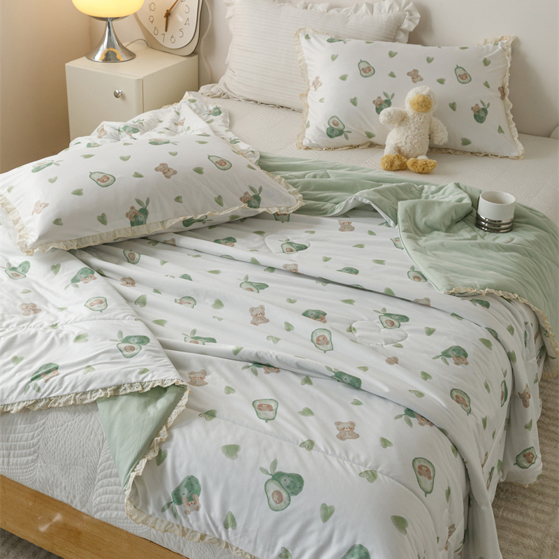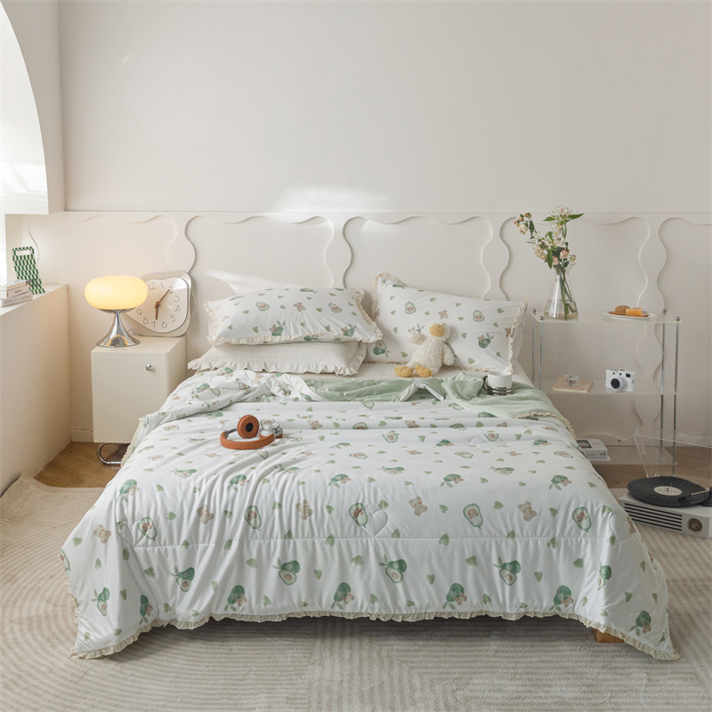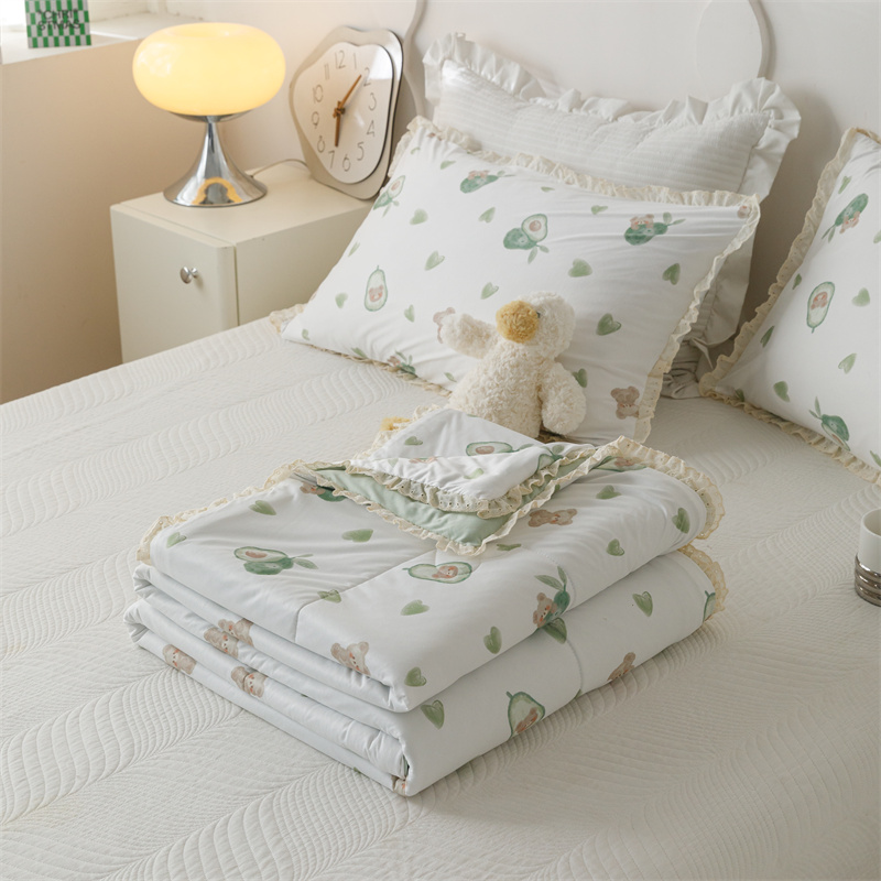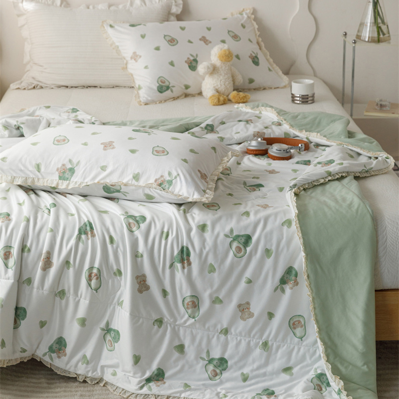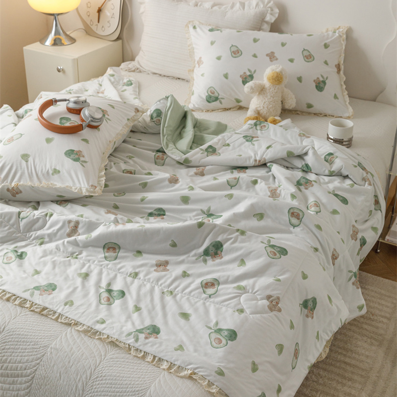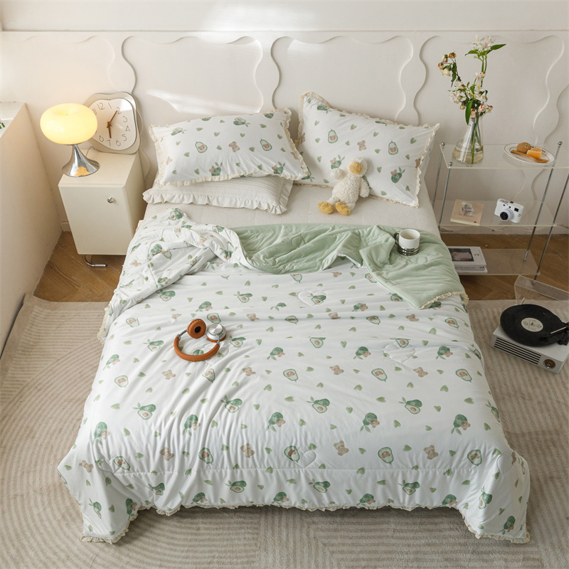 有货 2024新款春夏新款法式针织棉印花夏被春秋被 鳄梨熊