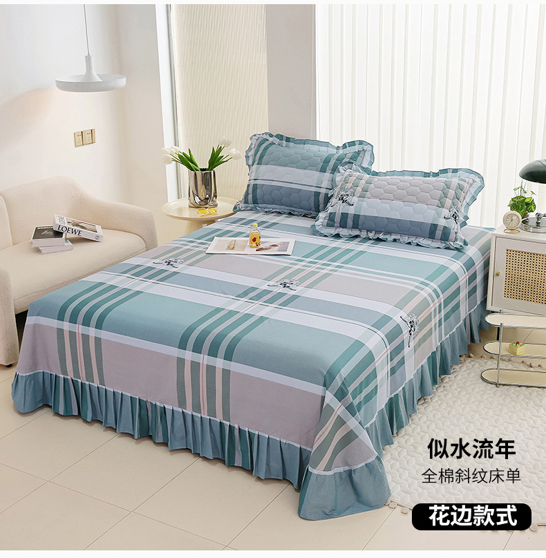 情煊家纺 2024新款全棉斜纹花边床单系列-印花款 似水流年