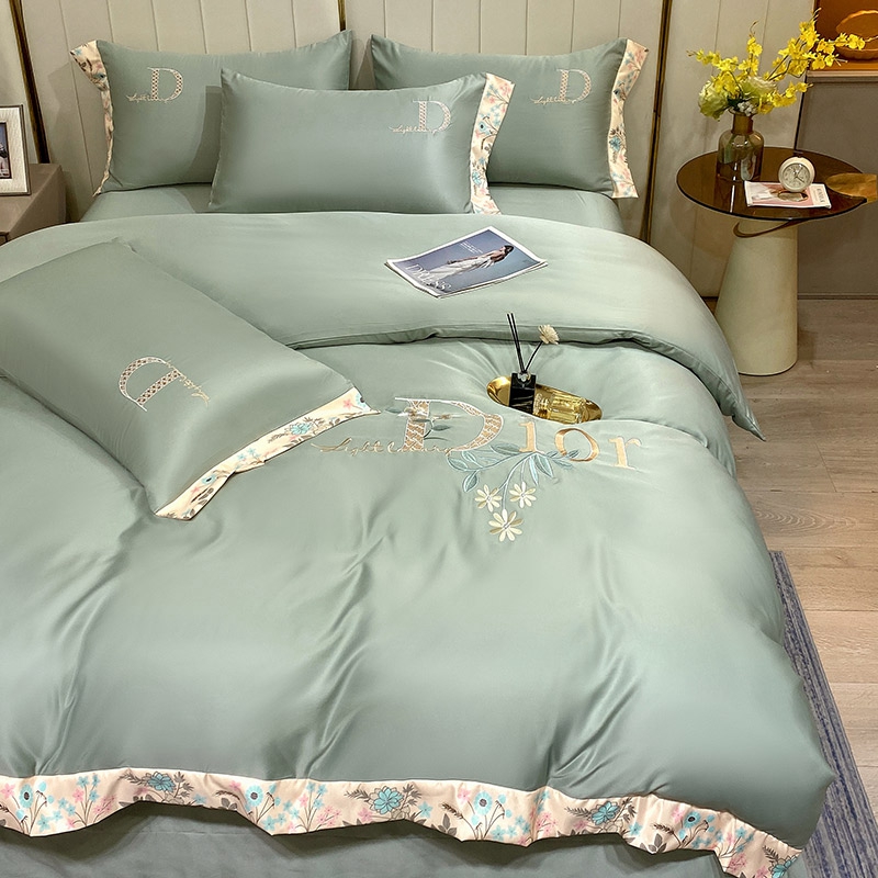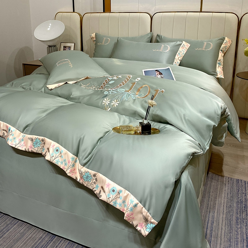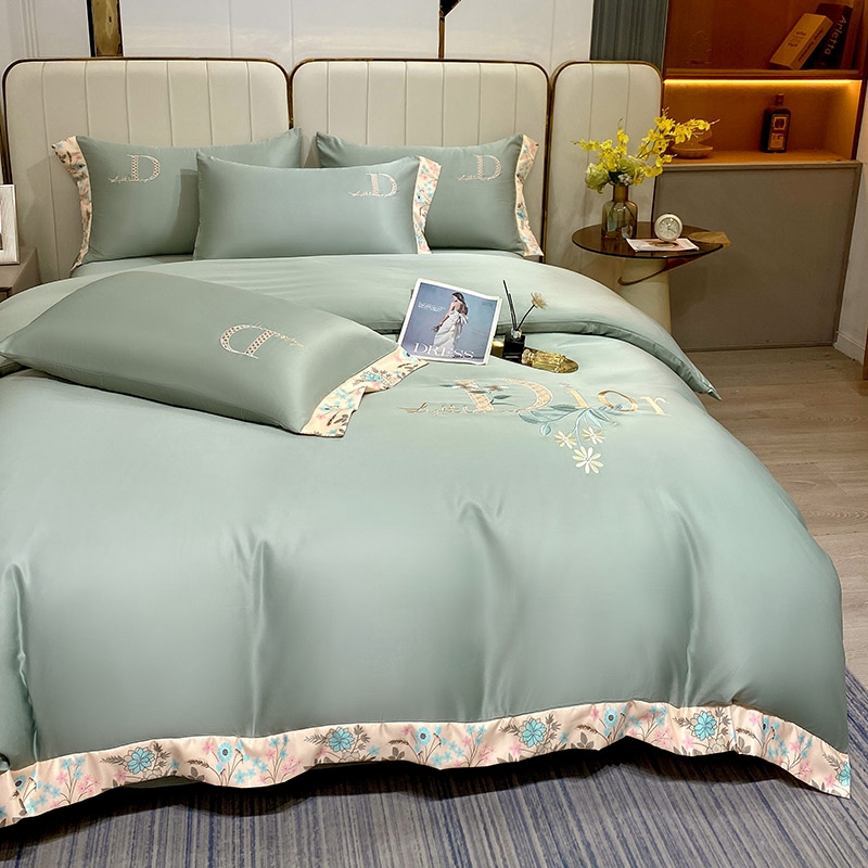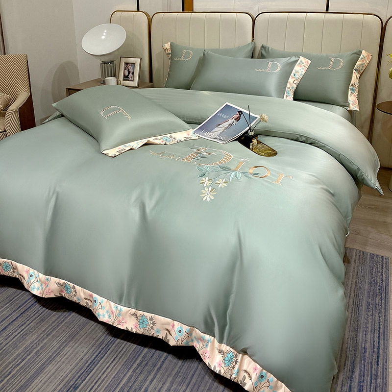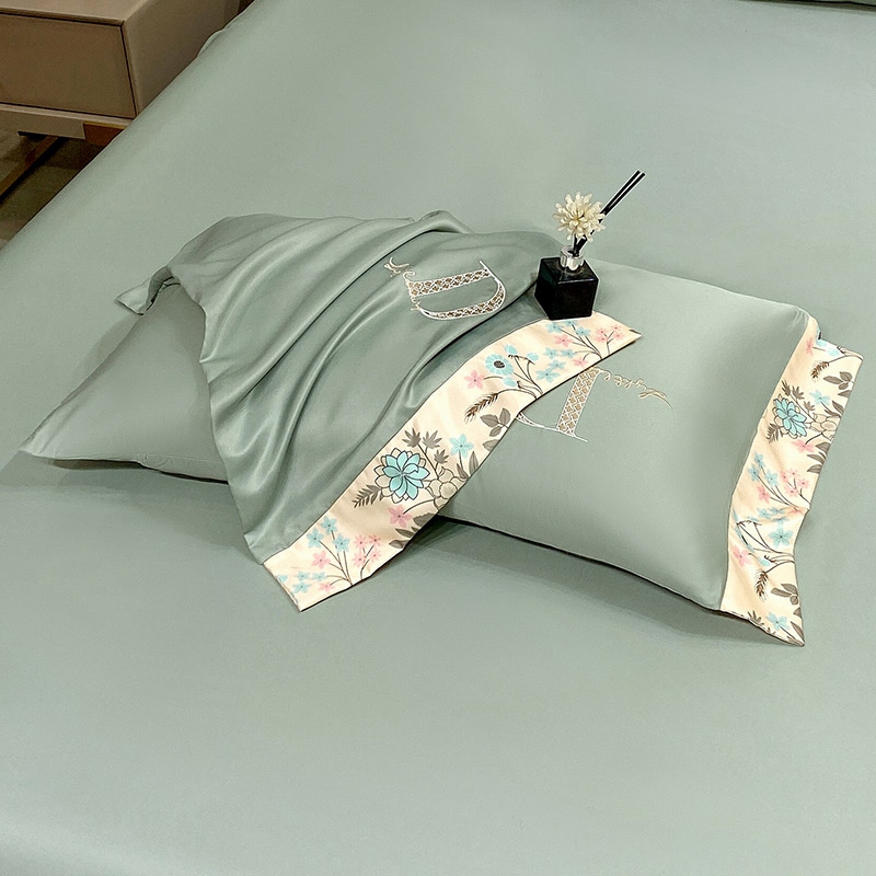 凡客家居 2024新款水洗真丝绣花四件套 香奈-绿