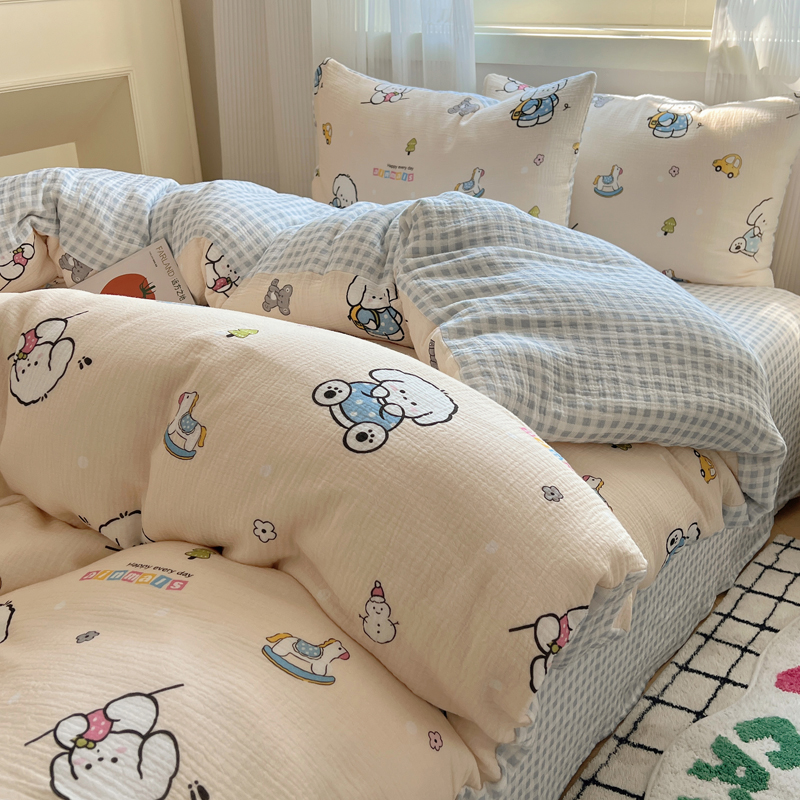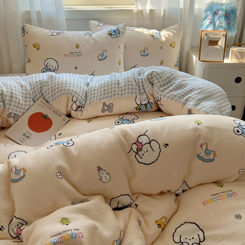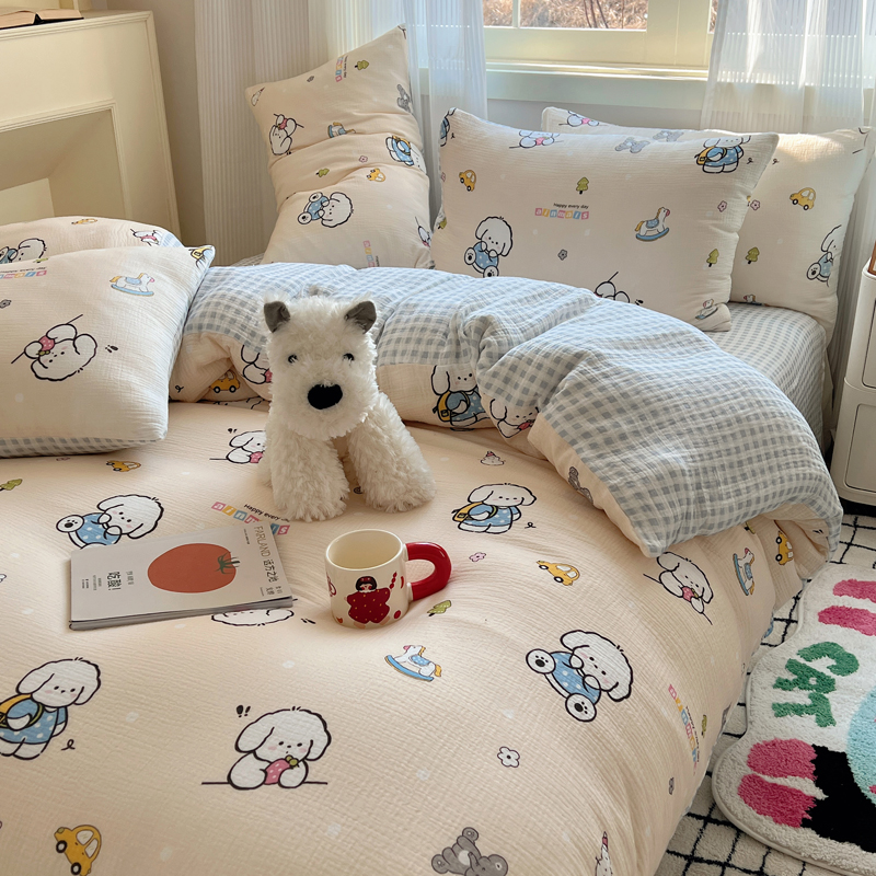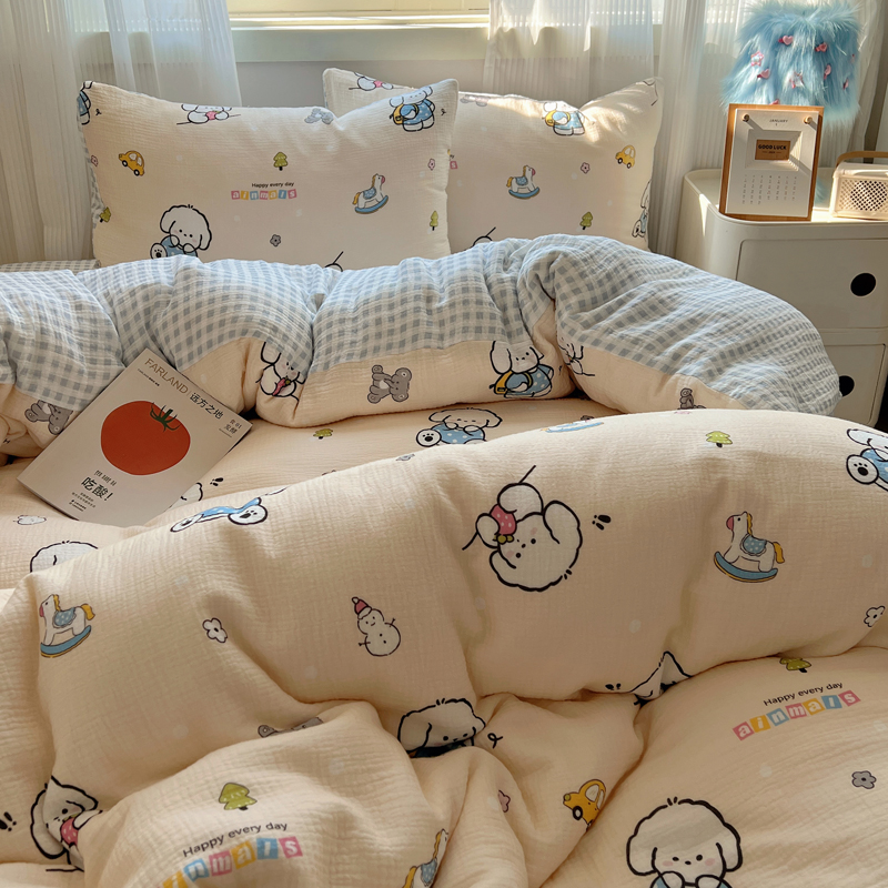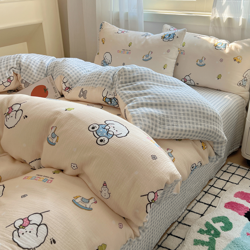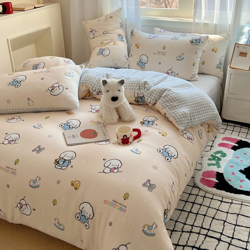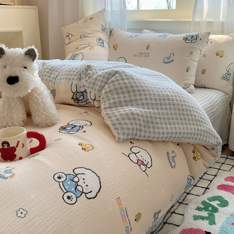当前位置: 91家纺网 > 商品网购 > 床品套件 > 四件套 > 水洗棉四件套 > 盼季 2024新款A类母婴级水洗棉床上用品四件套卡通儿童床单被套宿舍三件套 蓝格小奶狗