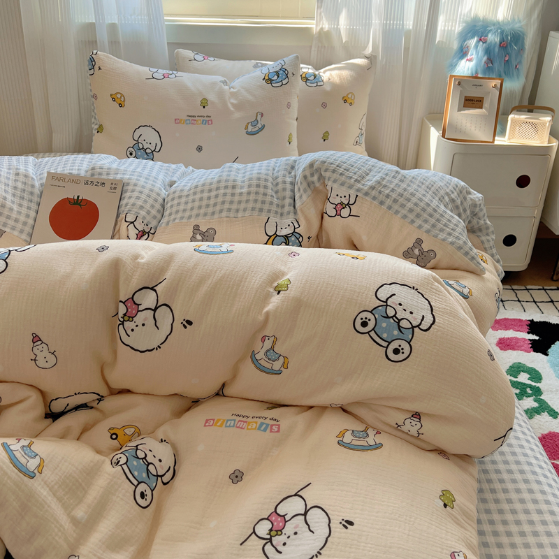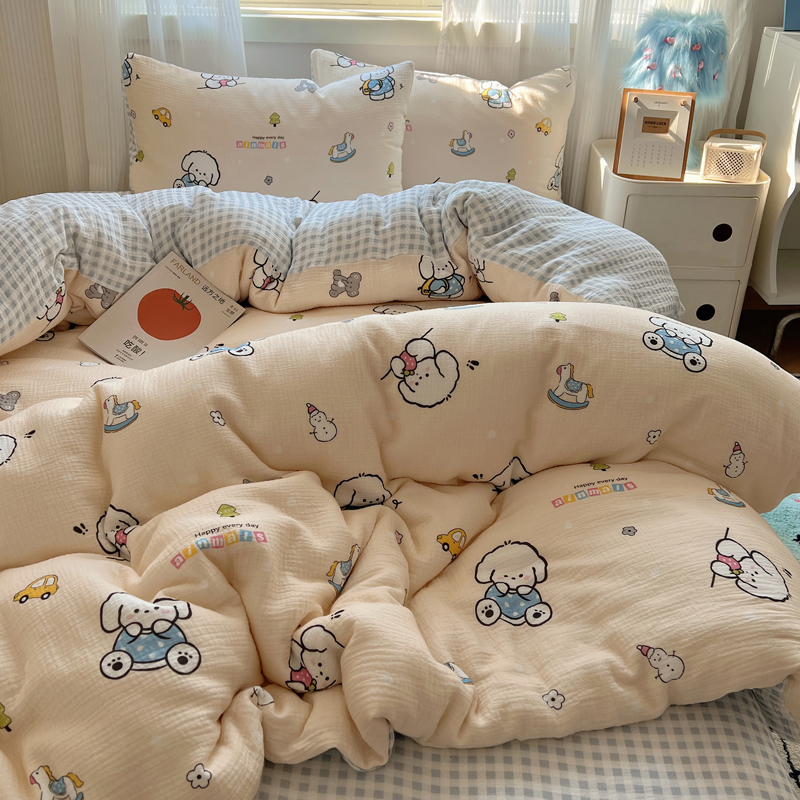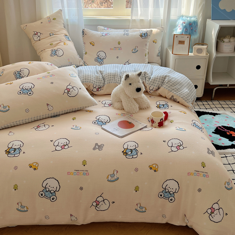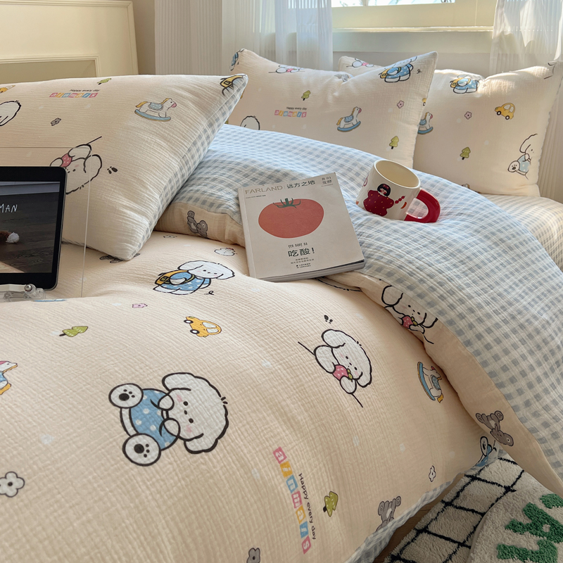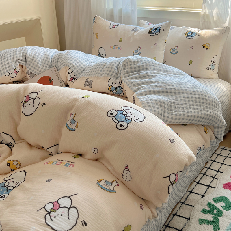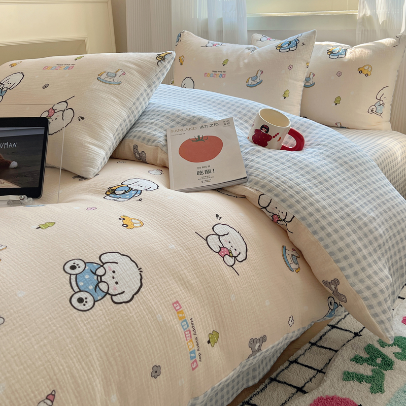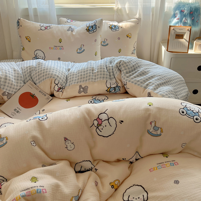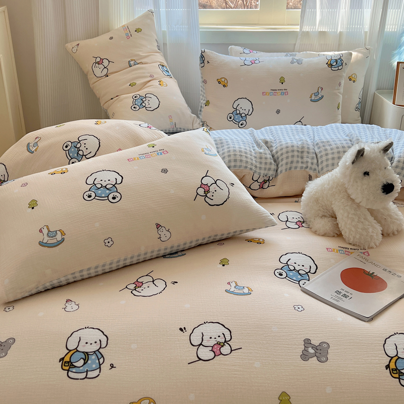 当前位置: 91家纺网 > 商品网购 > 床品套件 > 四件套 > 水洗棉四件套 > 盼季 2024新款A类母婴级水洗棉床上用品四件套卡通儿童床单被套宿舍三件套 蓝格小奶狗