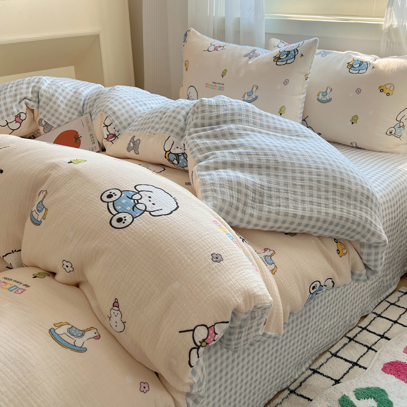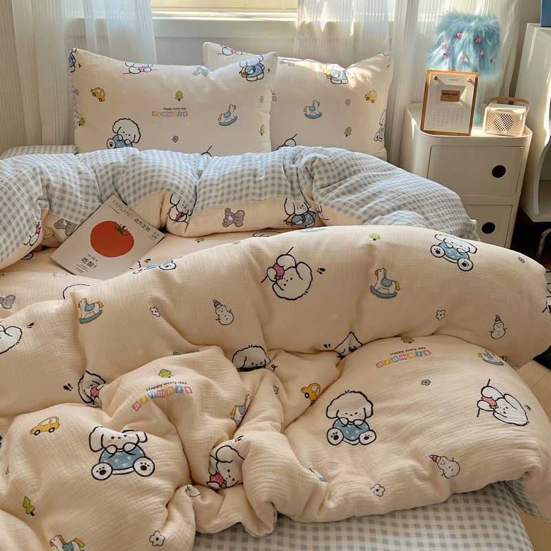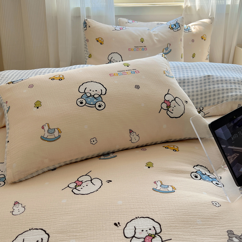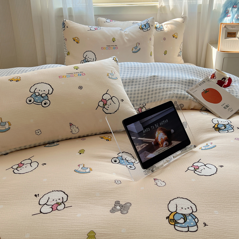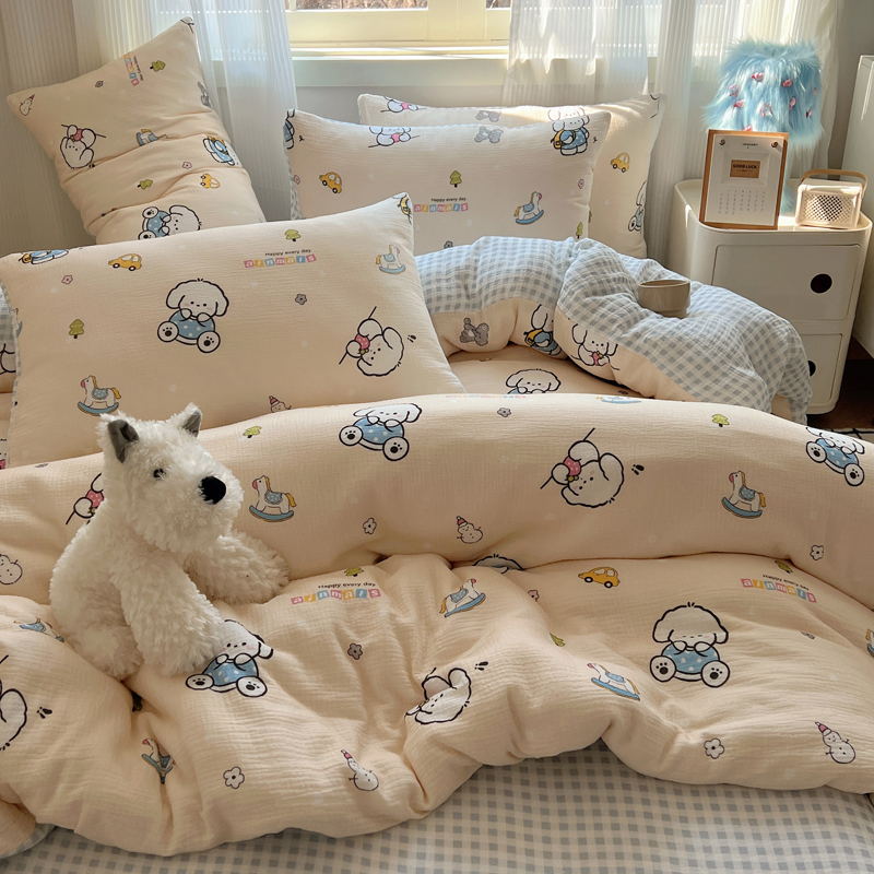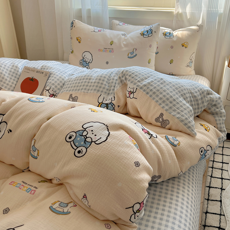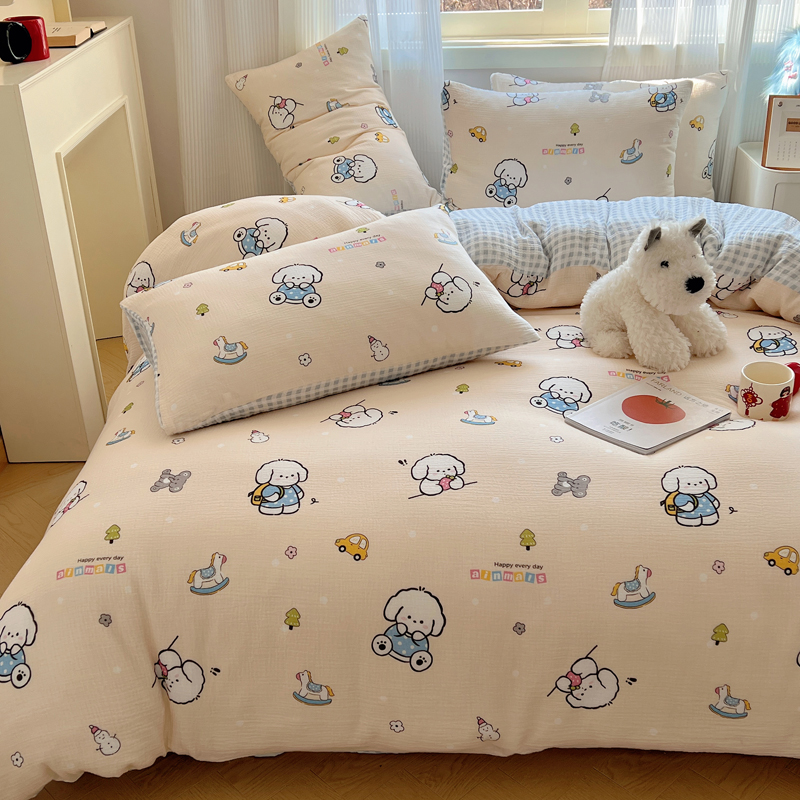 当前位置: 91家纺网 > 商品网购 > 床品套件 > 四件套 > 水洗棉四件套 > 盼季 2024新款A类母婴级水洗棉床上用品四件套卡通儿童床单被套宿舍三件套 蓝格小奶狗