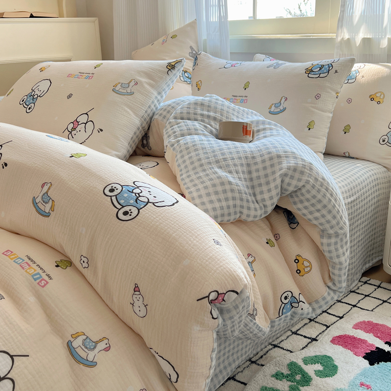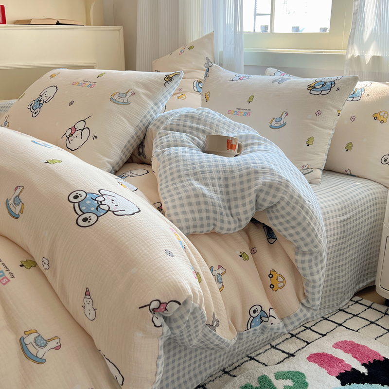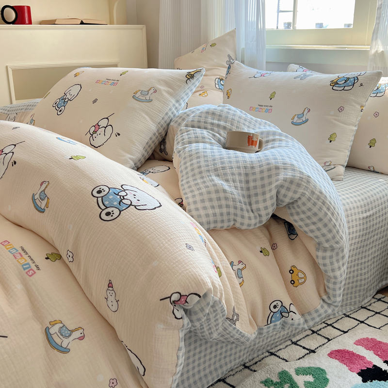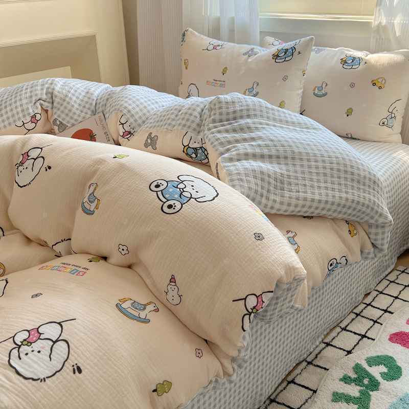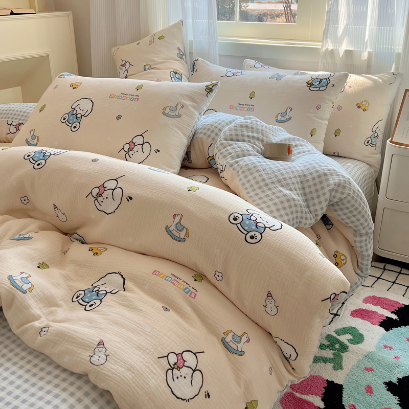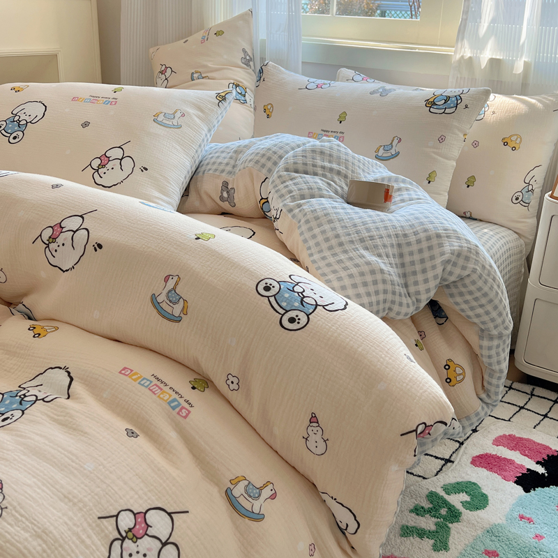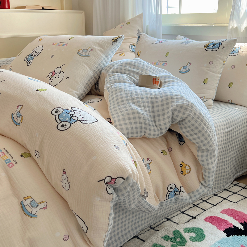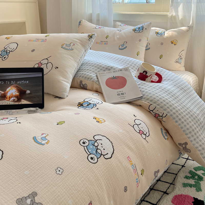 当前位置: 91家纺网 > 商品网购 > 床品套件 > 四件套 > 水洗棉四件套 > 盼季 2024新款A类母婴级水洗棉床上用品四件套卡通儿童床单被套宿舍三件套 蓝格小奶狗