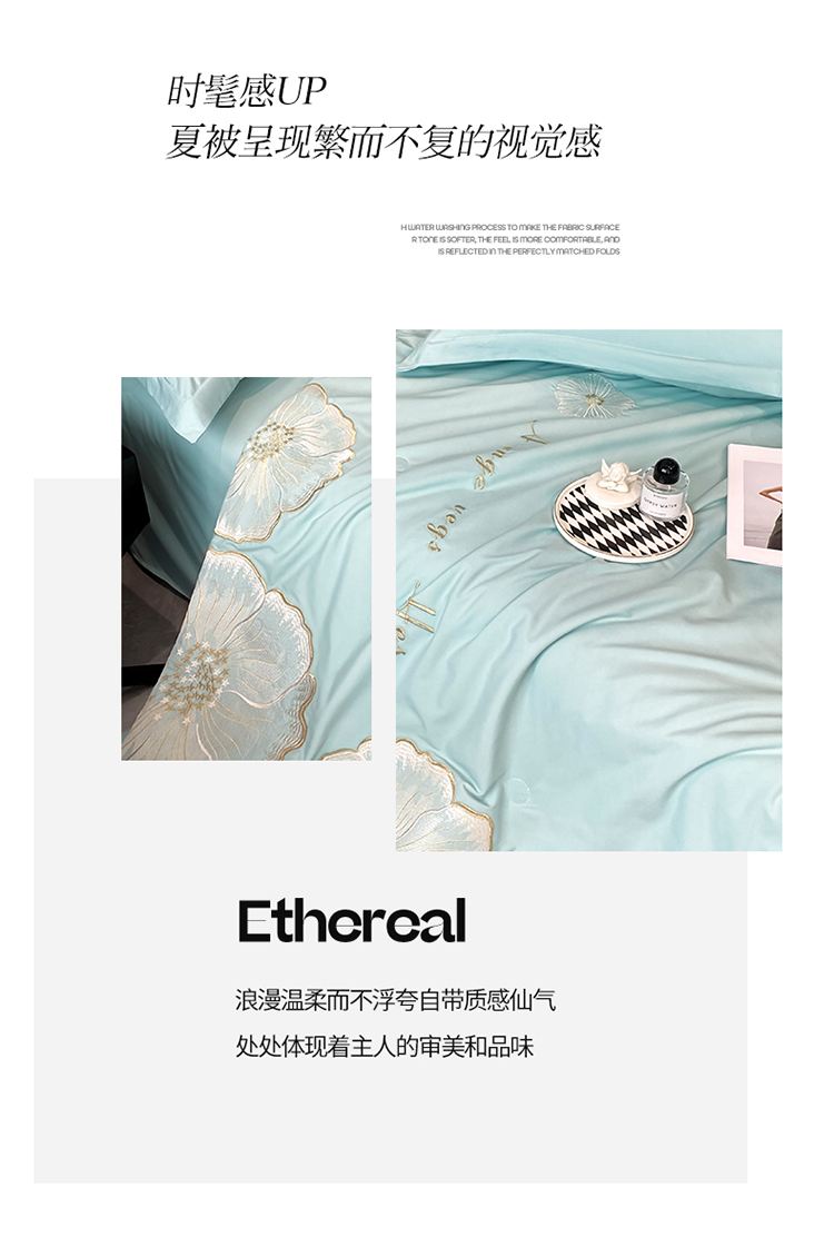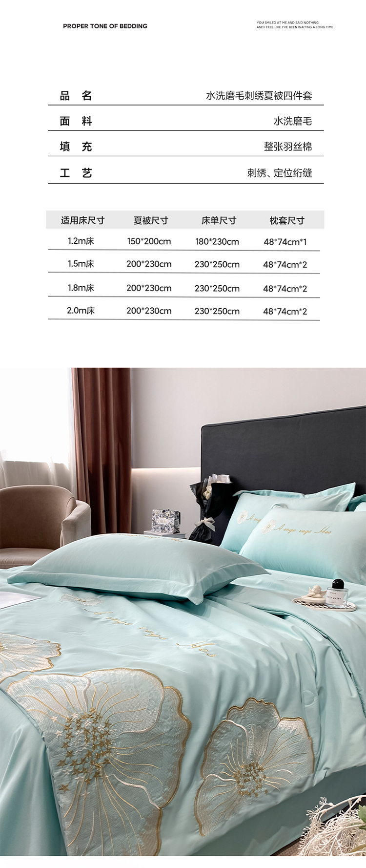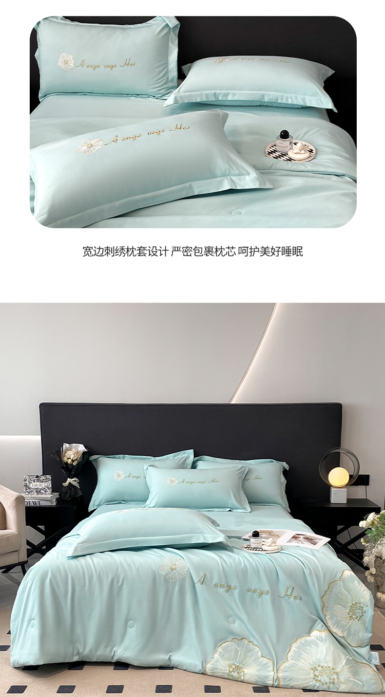 商品名称:2025新款花开盛夏夏被四件套 花开盛夏-绿