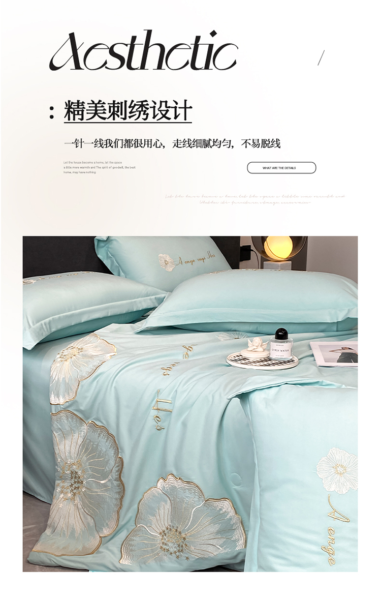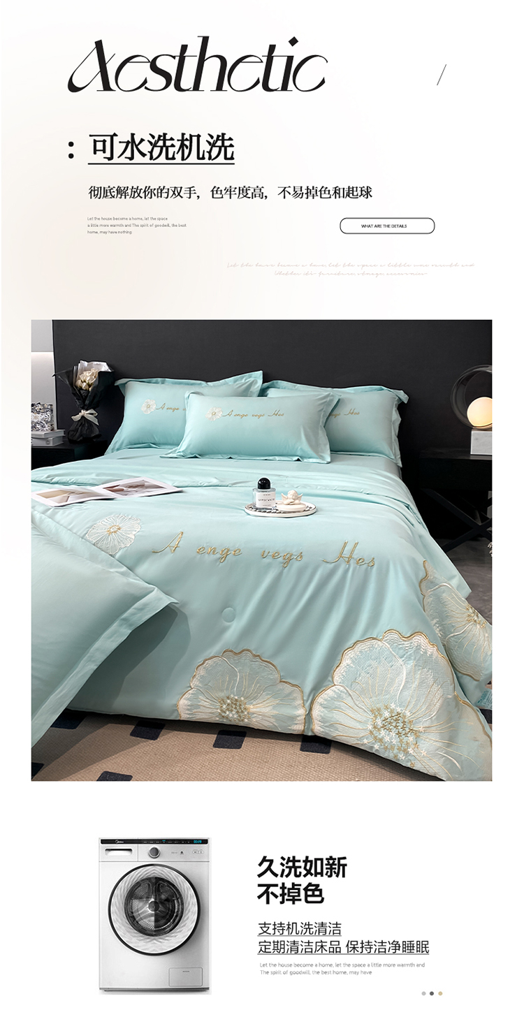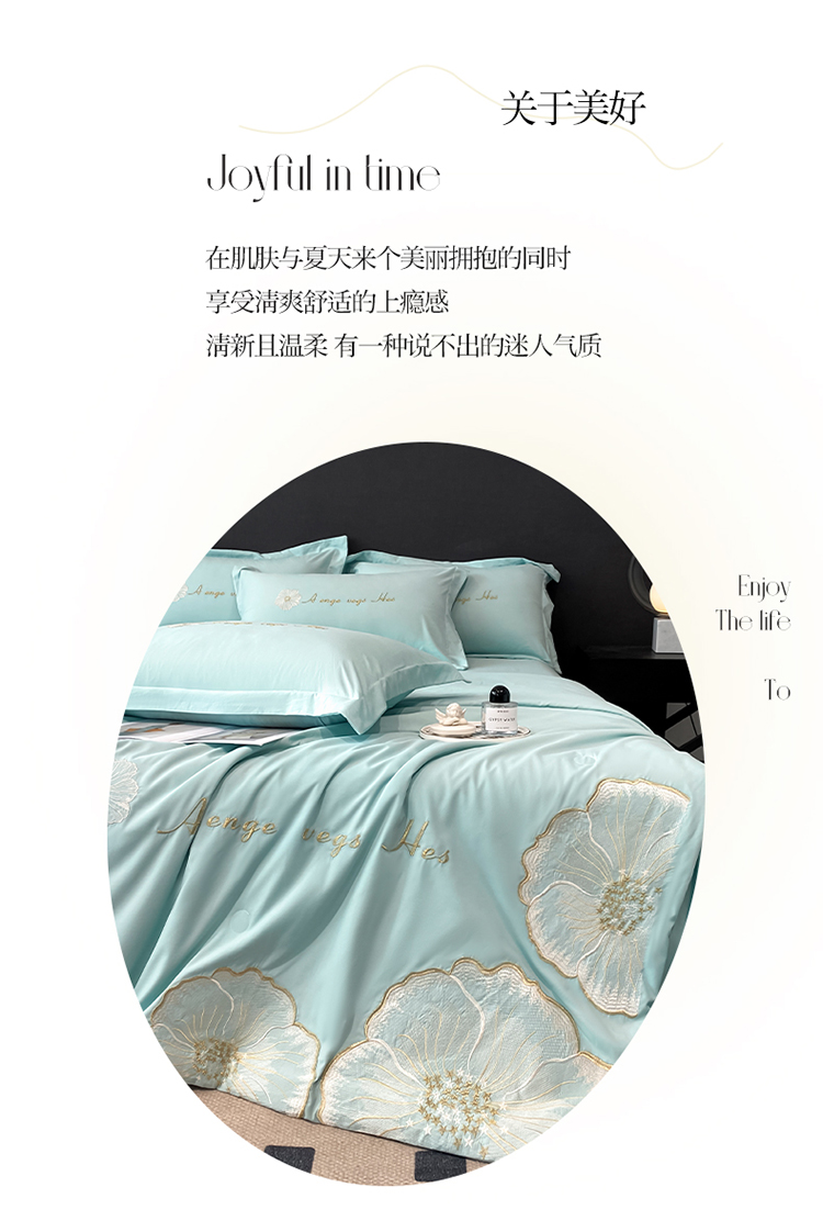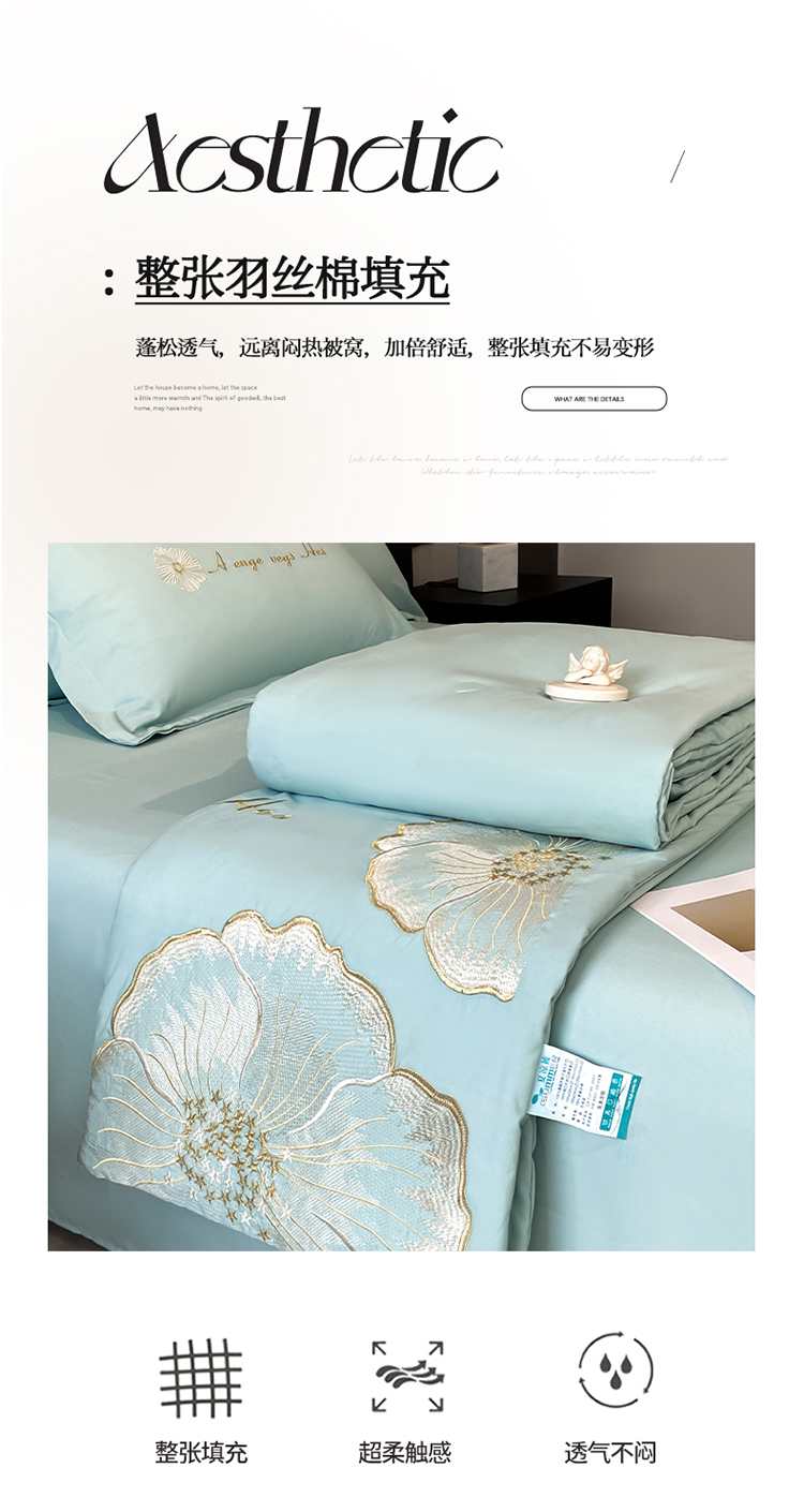 商品名称:2025新款花开盛夏夏被四件套 花开盛夏-绿