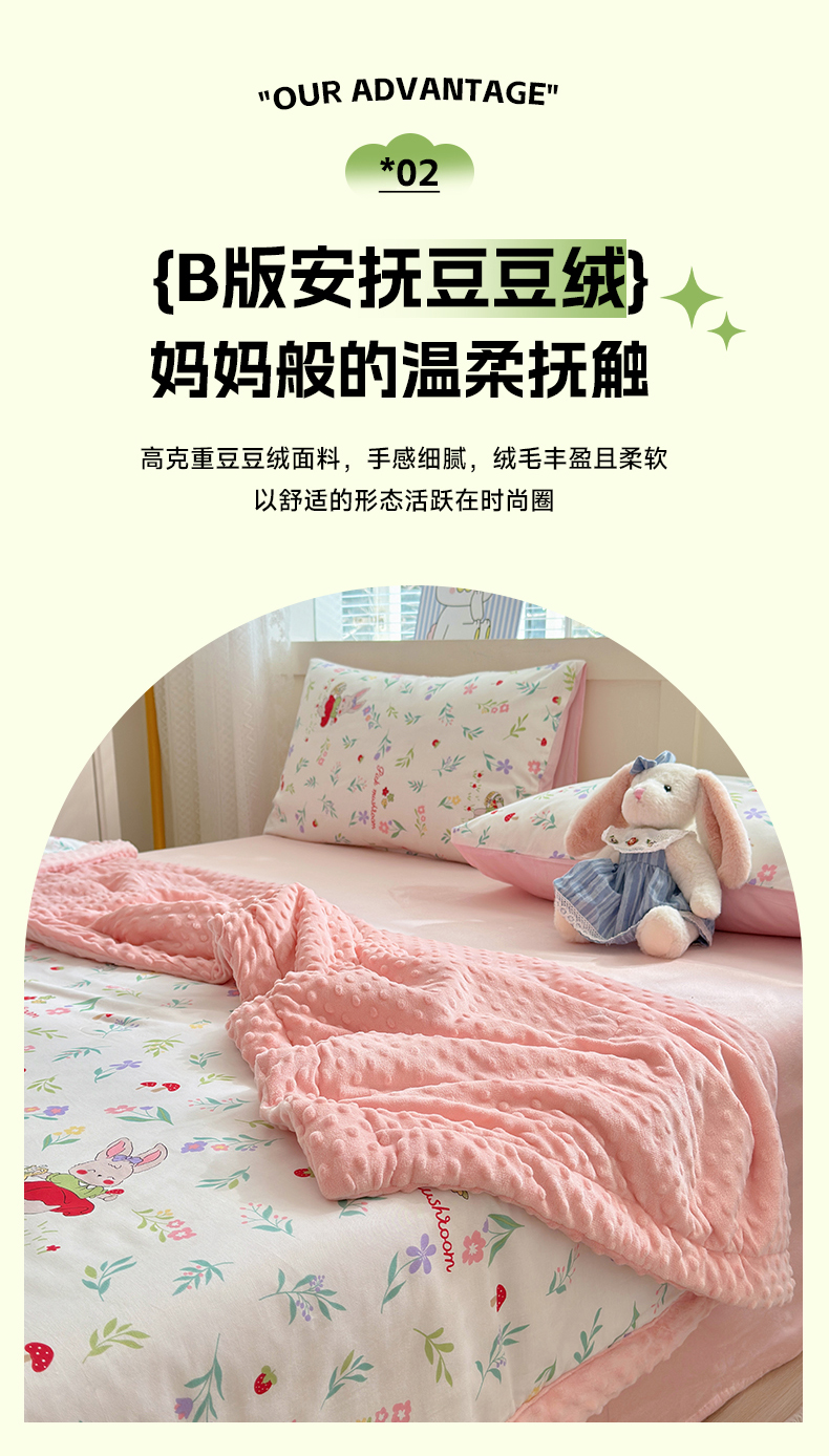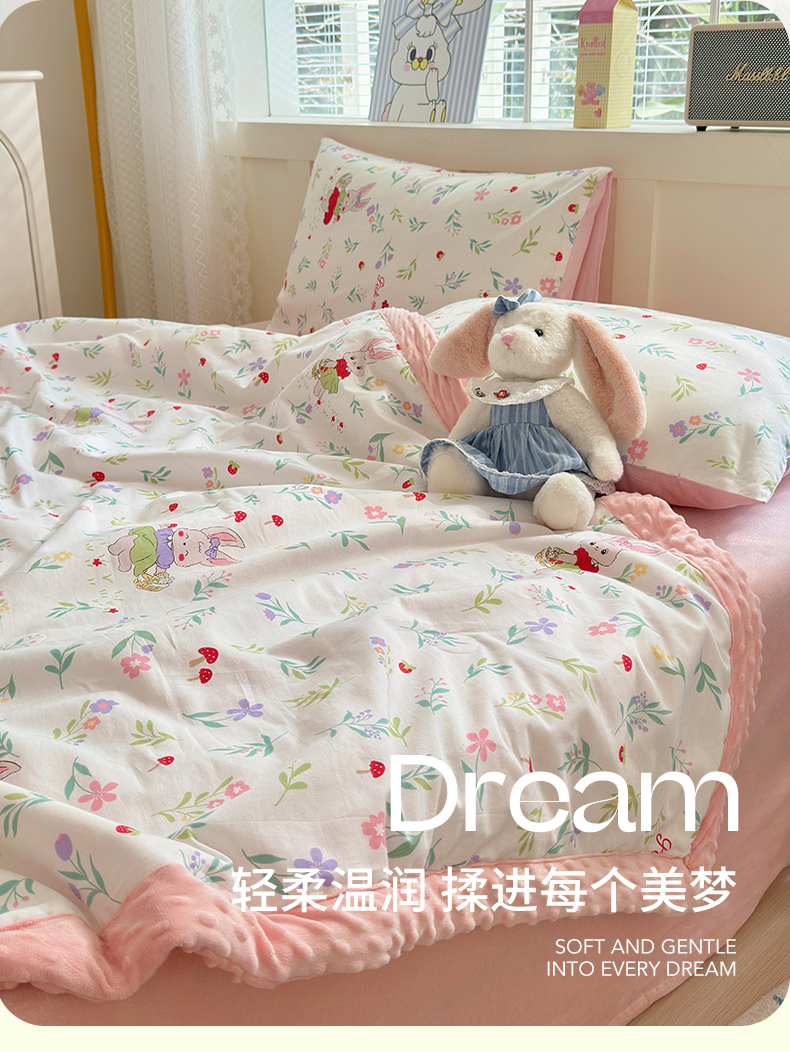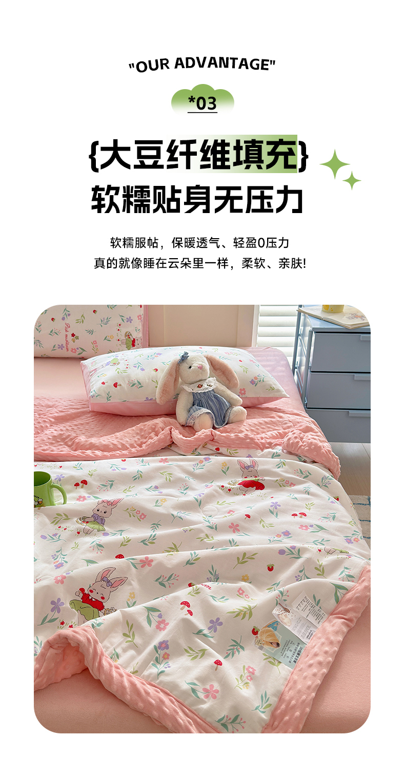 花伞家居 2024新款全棉豆豆绒大豆夏被春秋被 夏被-兔子花园