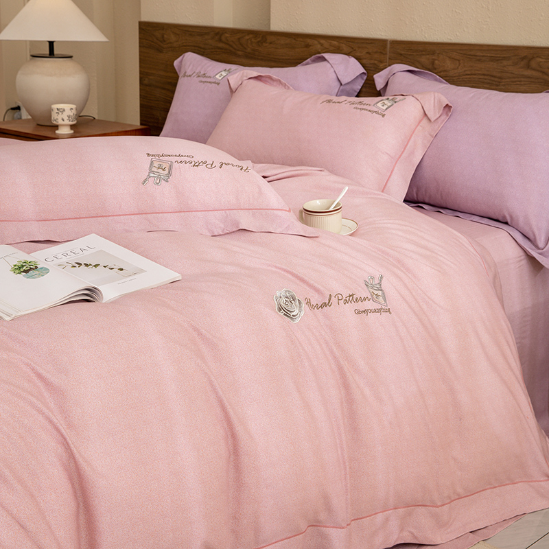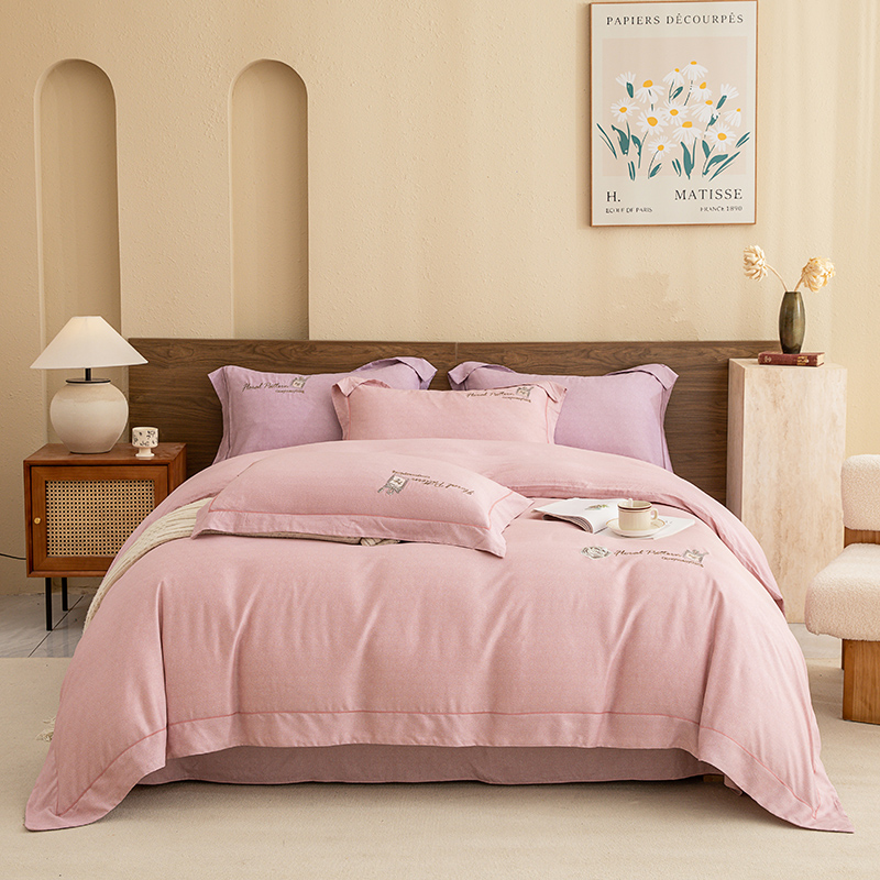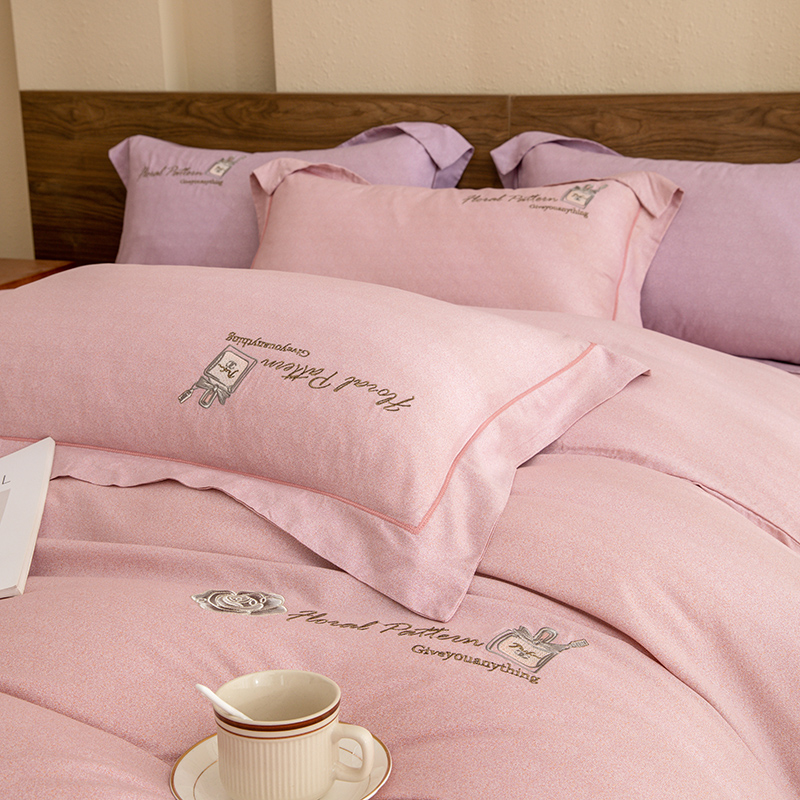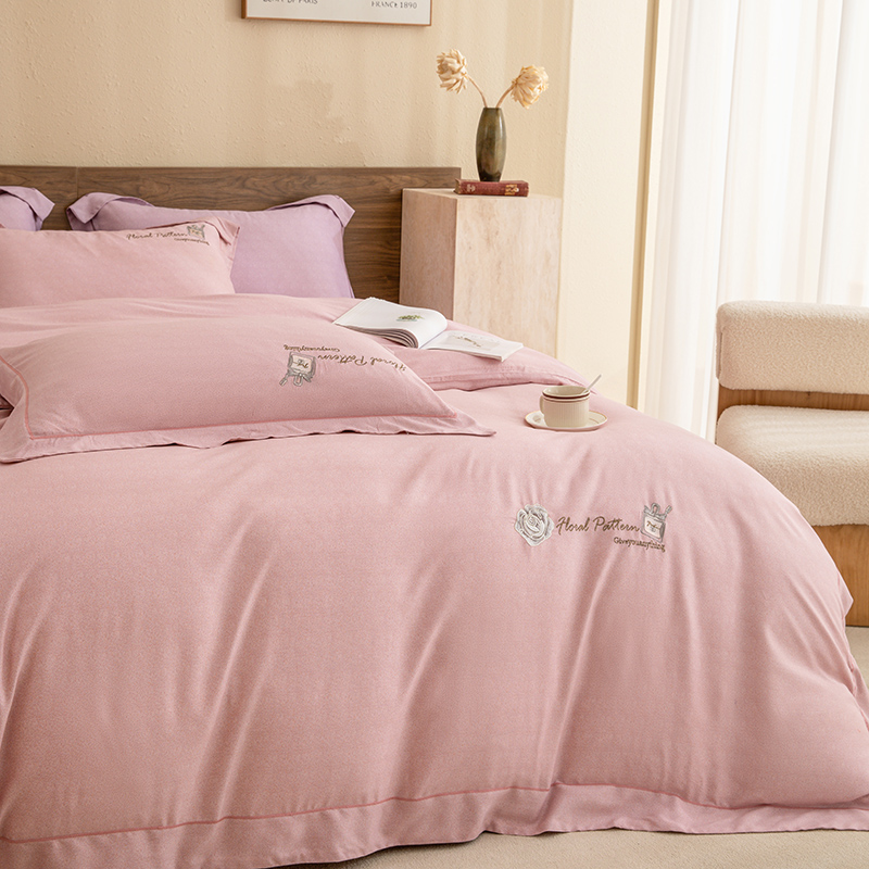 (总)绒博士 2025新款270克牛奶绒双拼角刺绣宽边款四件套--维也纳系列,维也纳-粉豆沙,维也纳-果绿,维也纳-浅咖,维也纳-浅蓝