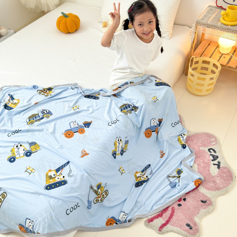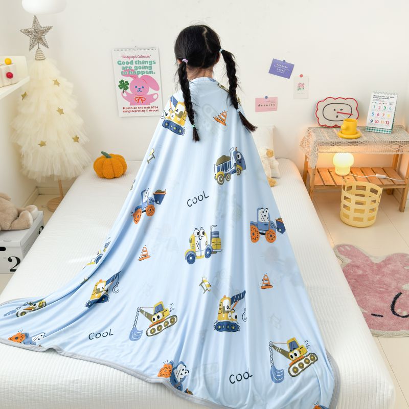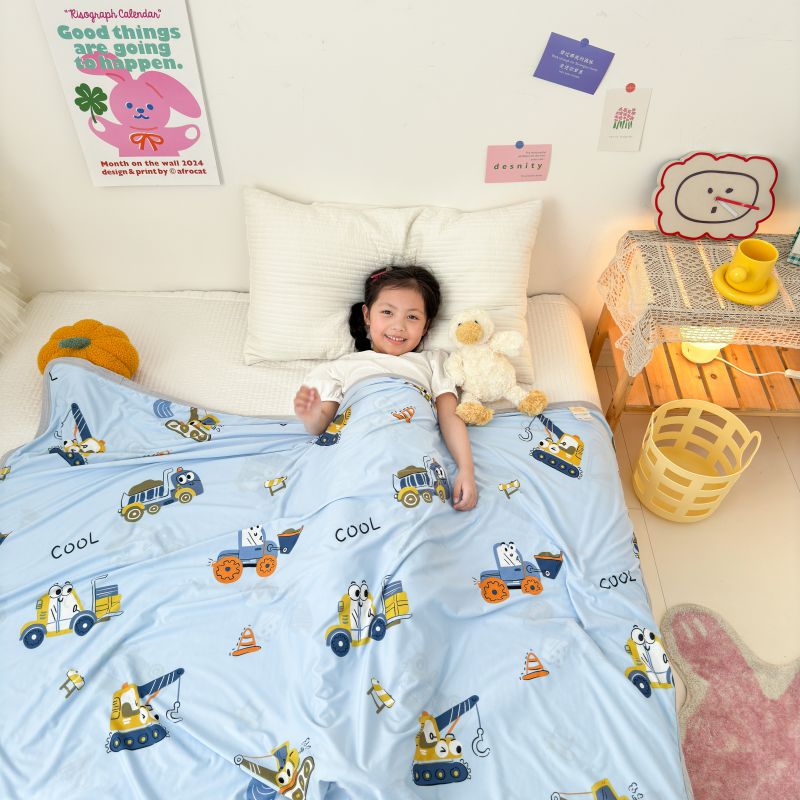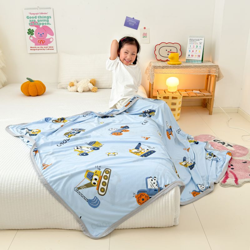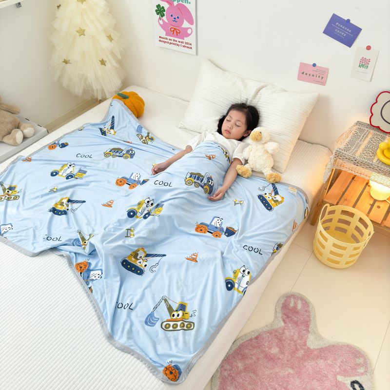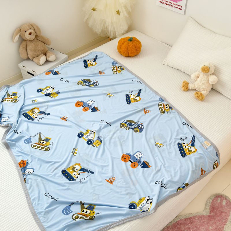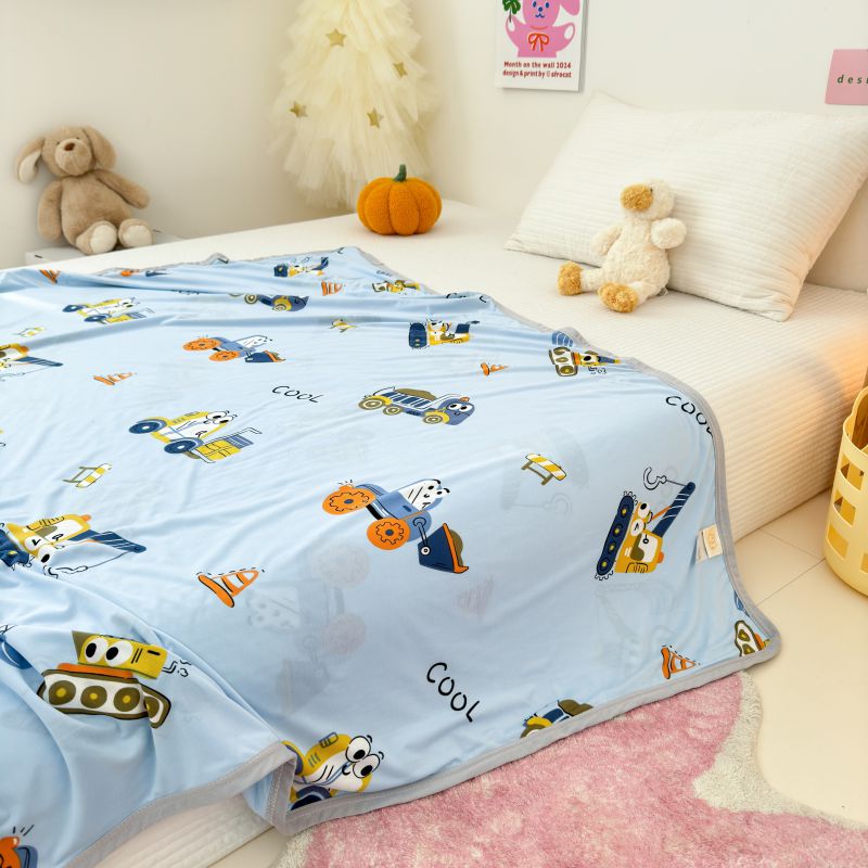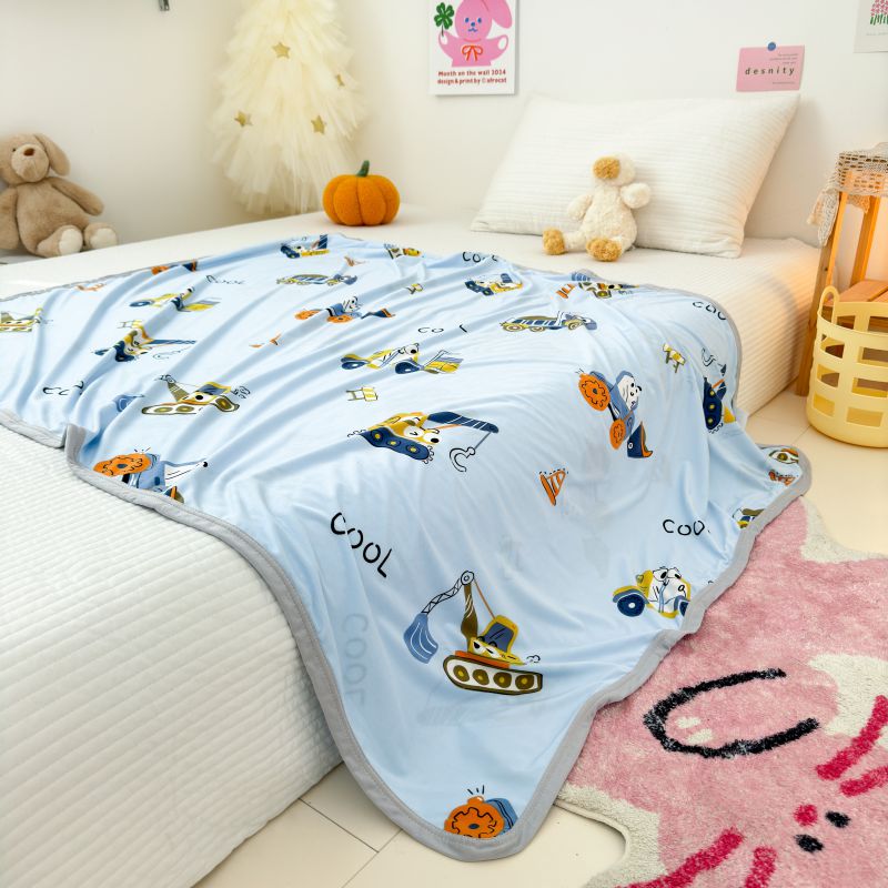 星期八 2024新款舒适亲肤婴儿裸睡级卡通印花凉感毯 挖掘机