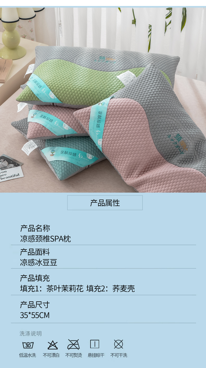 凉感单边护颈SPA枕-蓝色 茶香枕
