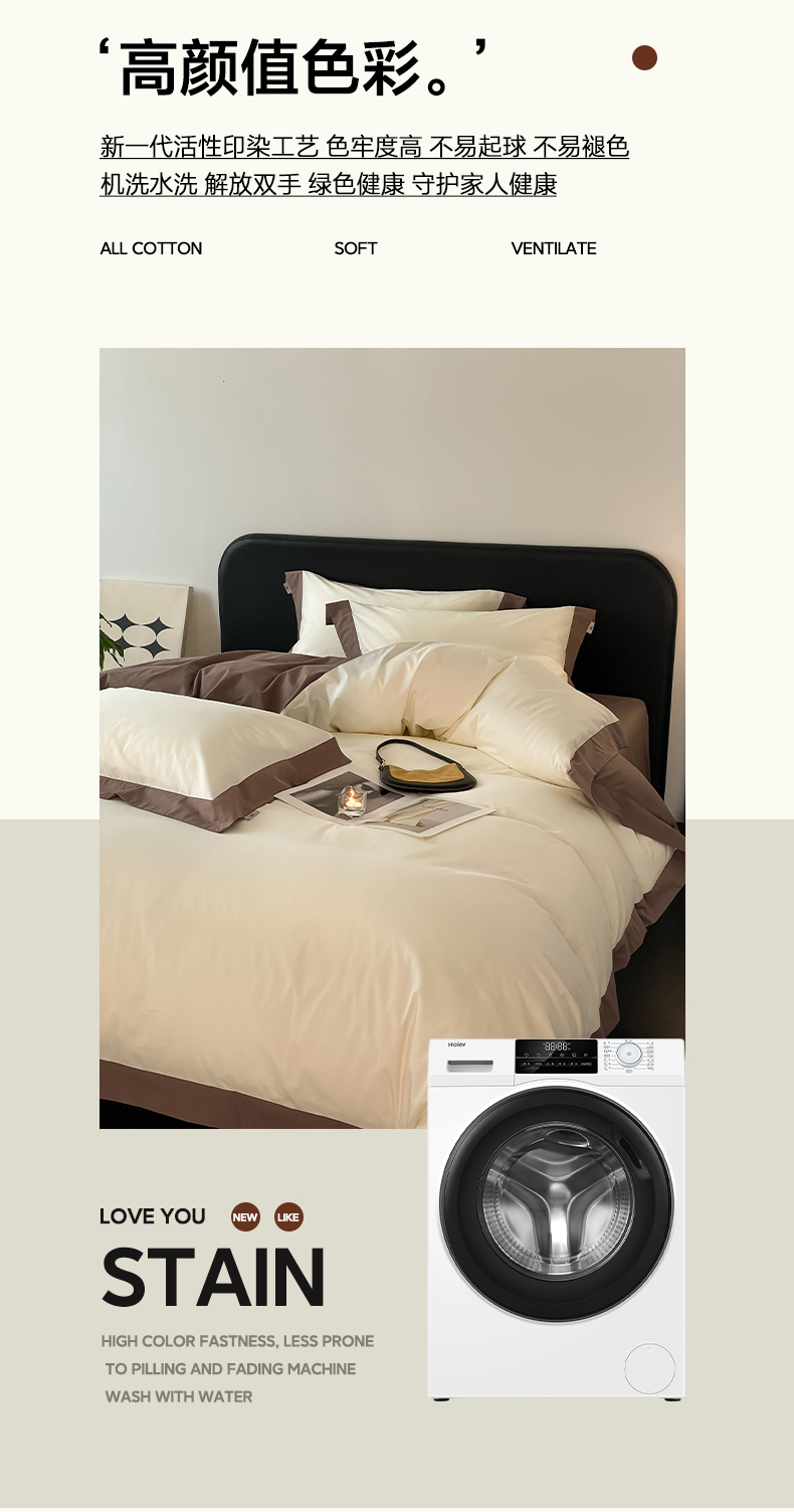 商品名称:(总)金麦家纺 2024新款A类全棉水洗棉礼盒装纯色双拼系列四件套