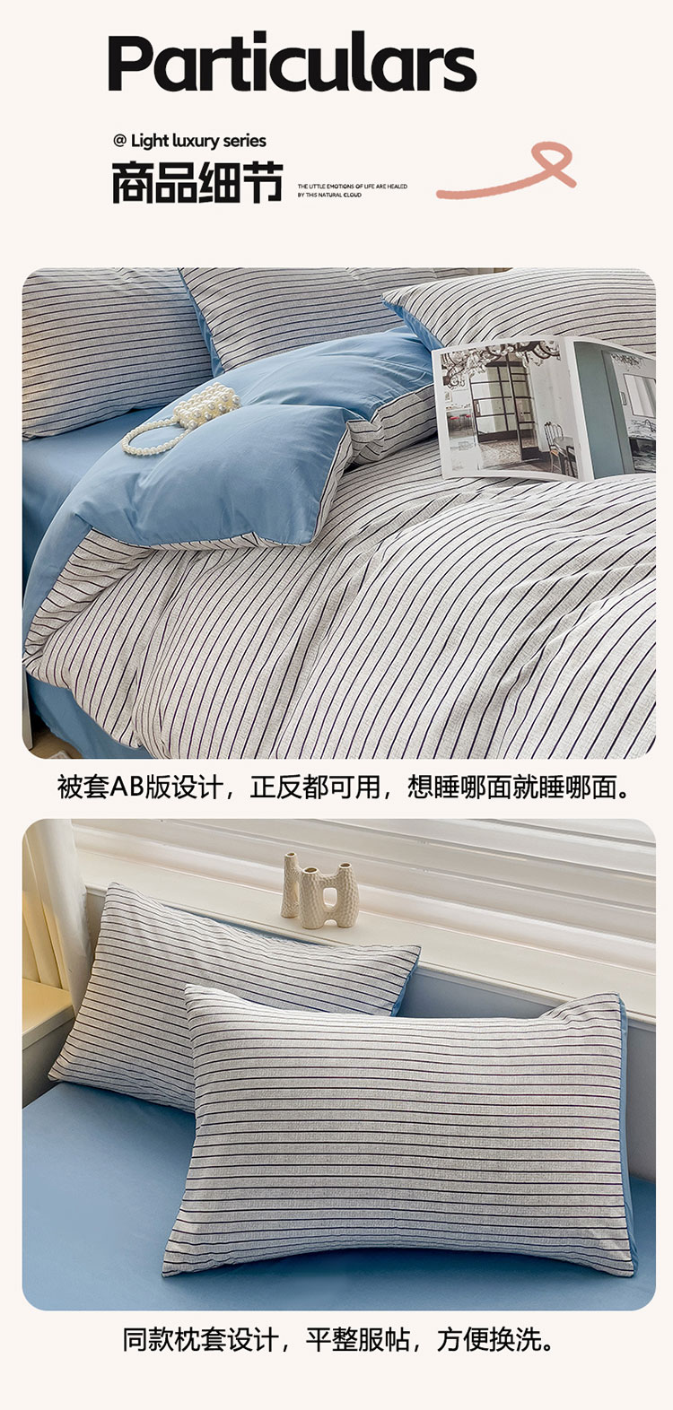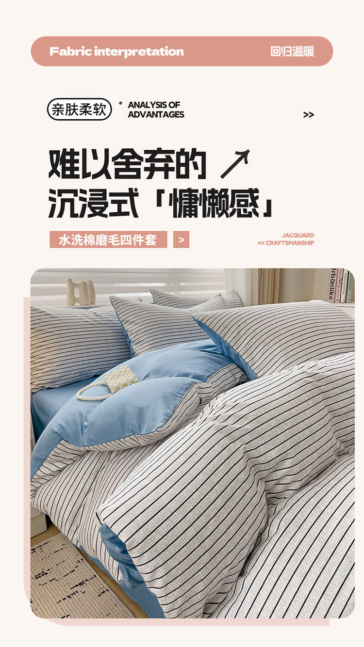 当前位置: 91家纺网 > 商品网购 > 床品套件 > 四件套 > 水洗棉四件套 > 楠沐家纺 2025新款亲肤柔软水洗棉磨毛四件套 白条蓝